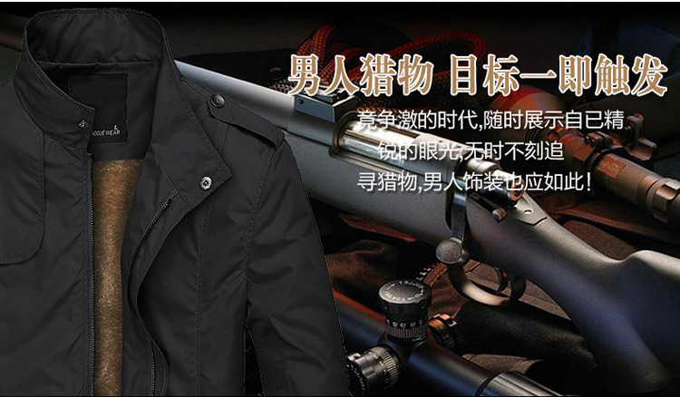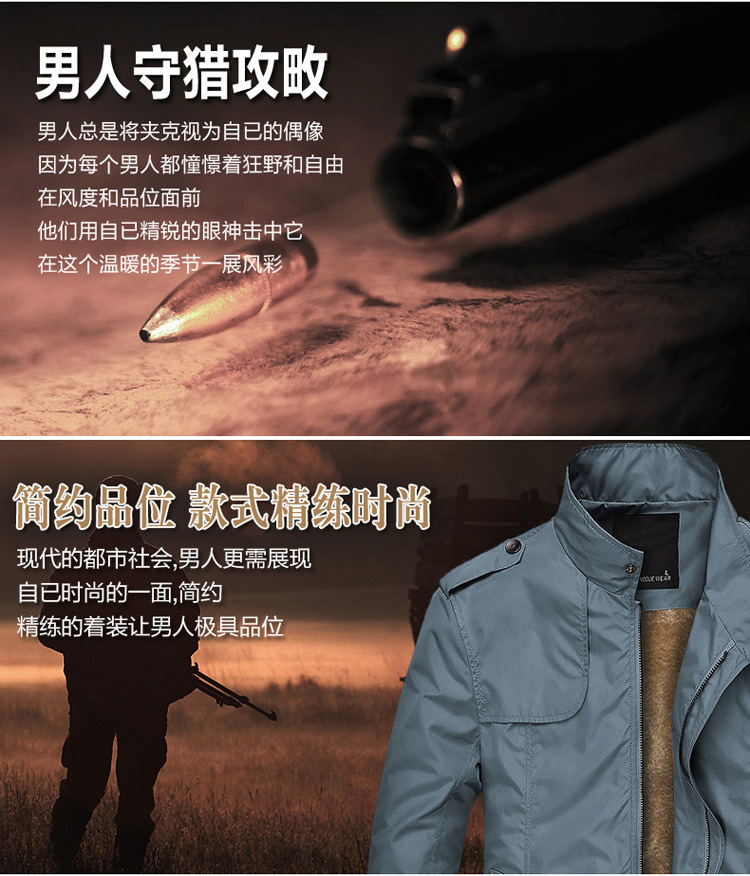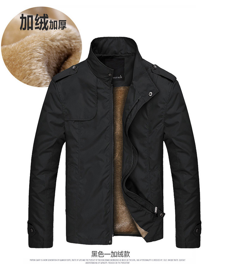 亚马逊外贸加厚男士外套秋季纯色保暖加绒夹克男潮流防风外衣爆款