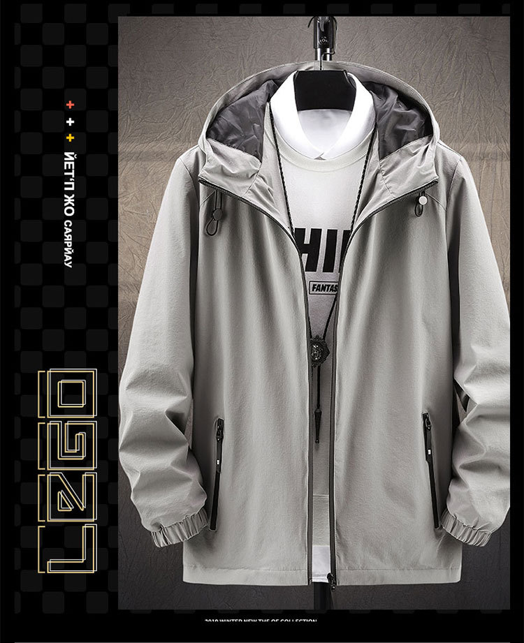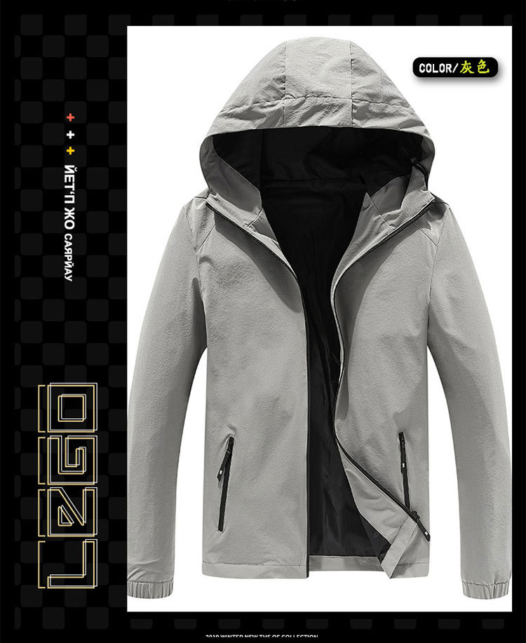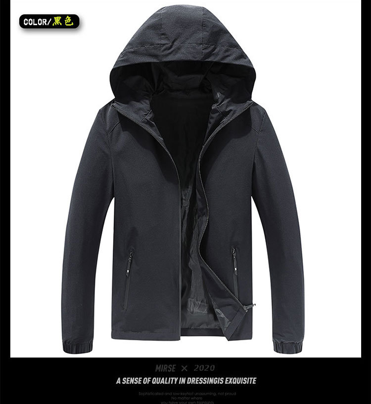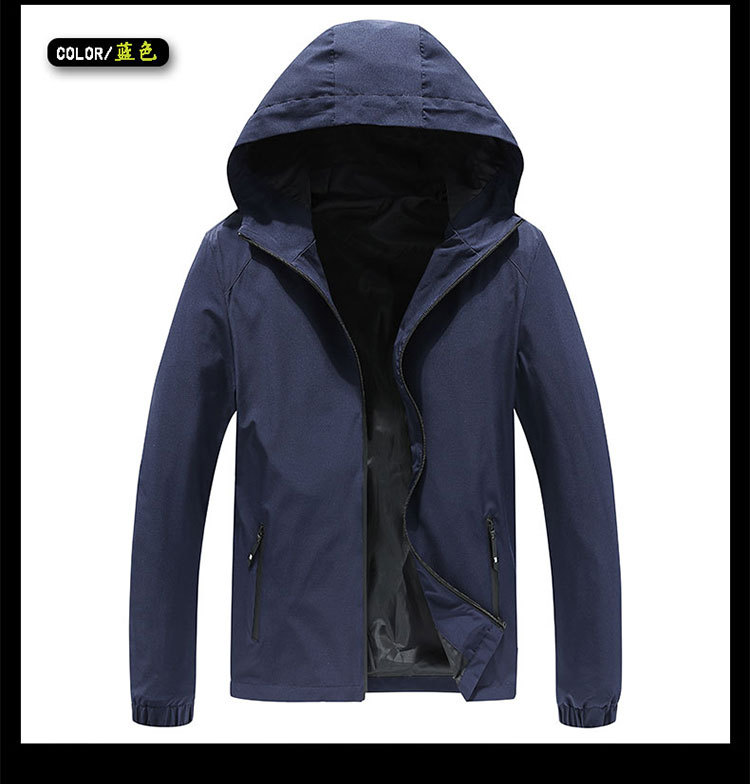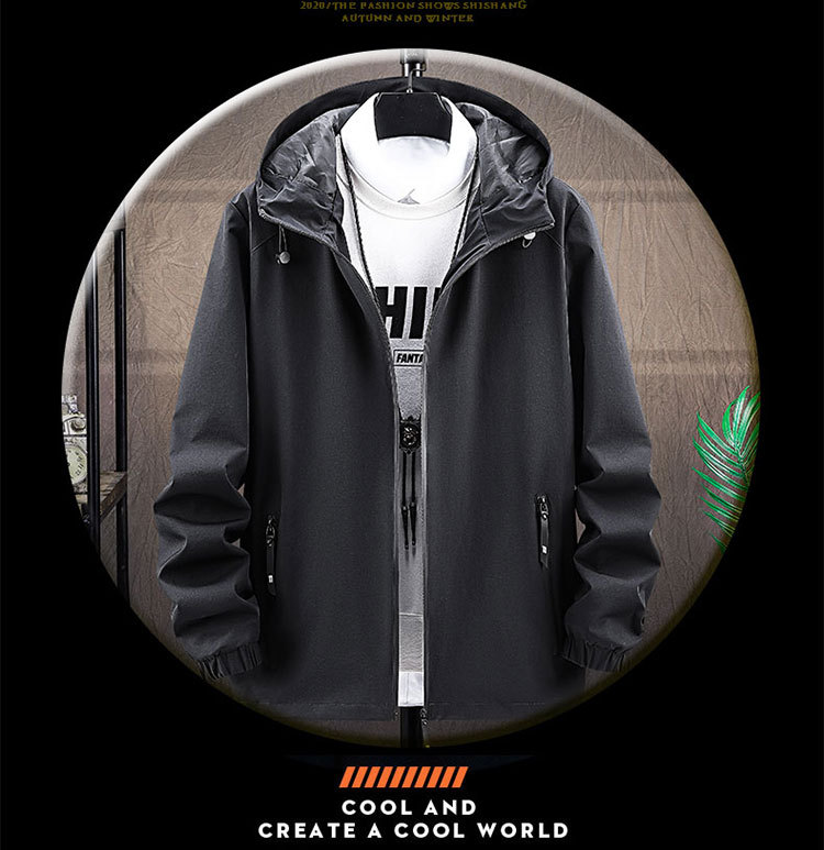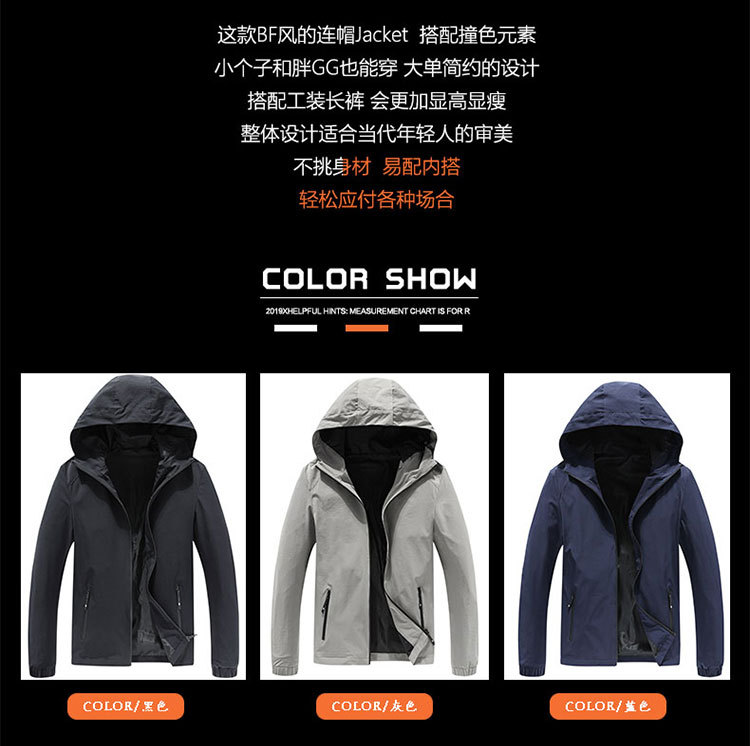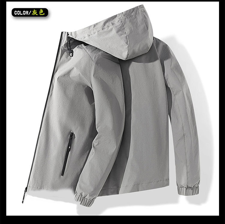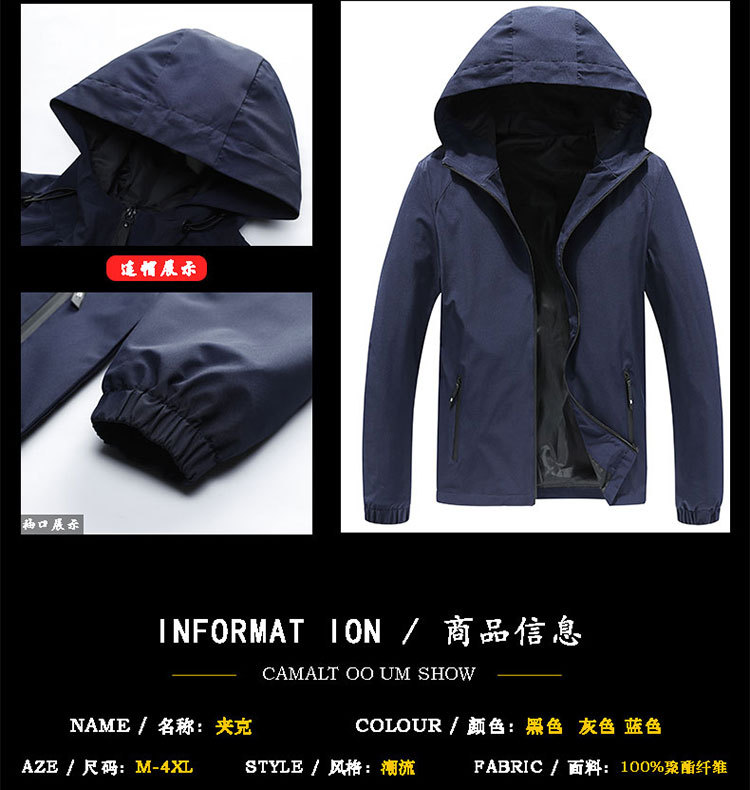 春秋休闲男士夹克中青年上装上衣服连帽外套男百搭运动外穿纯色新