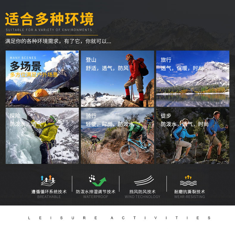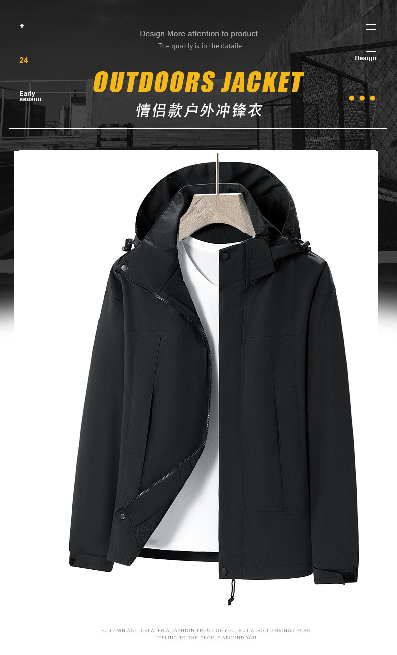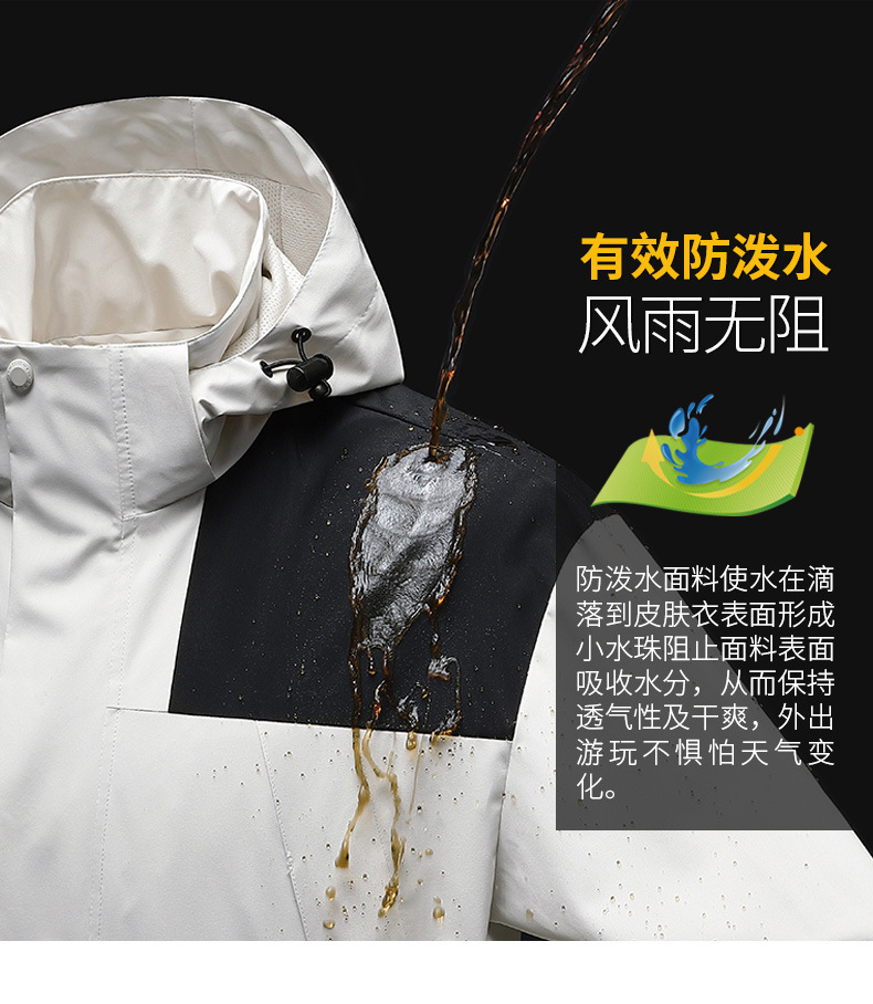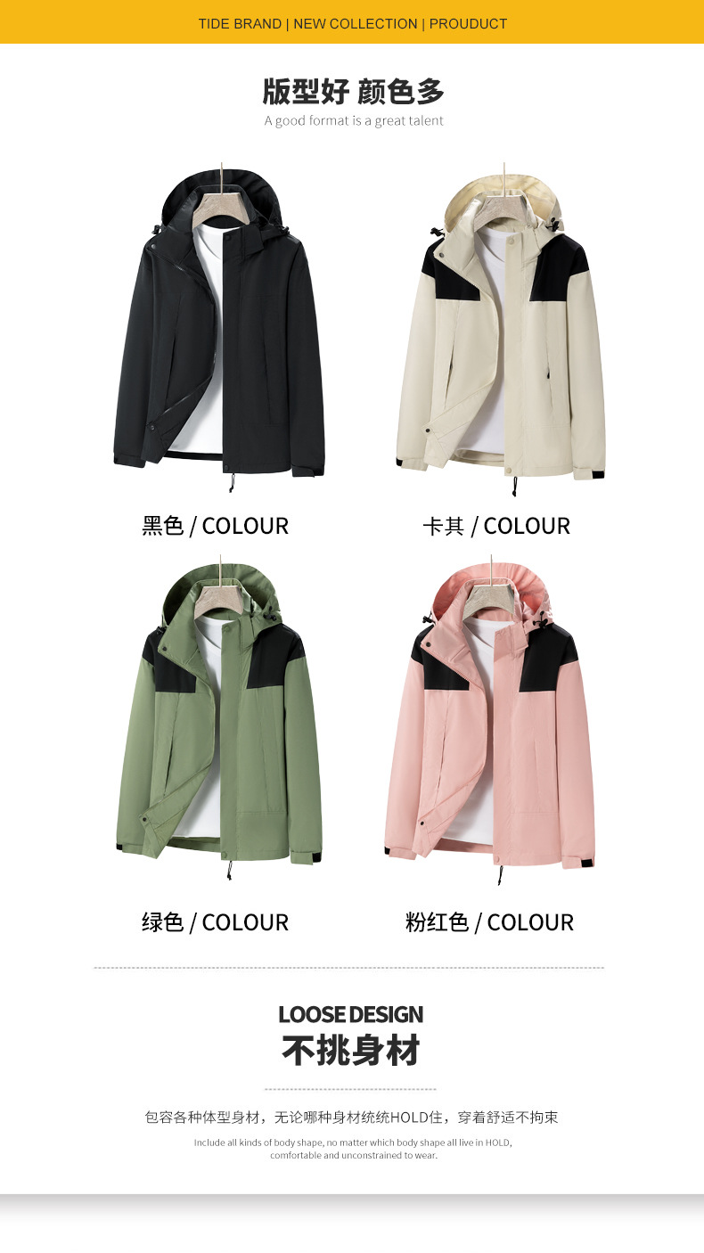 跨境春秋季户外冲锋衣男女情侣款外套可脱卸帽防水拼接青年登山服