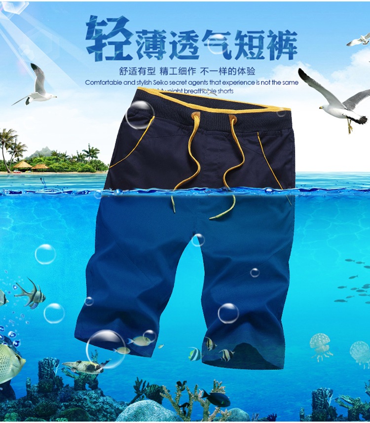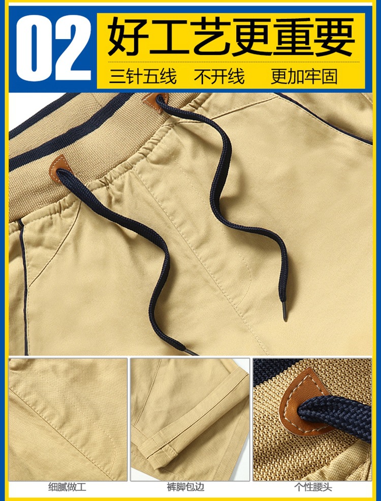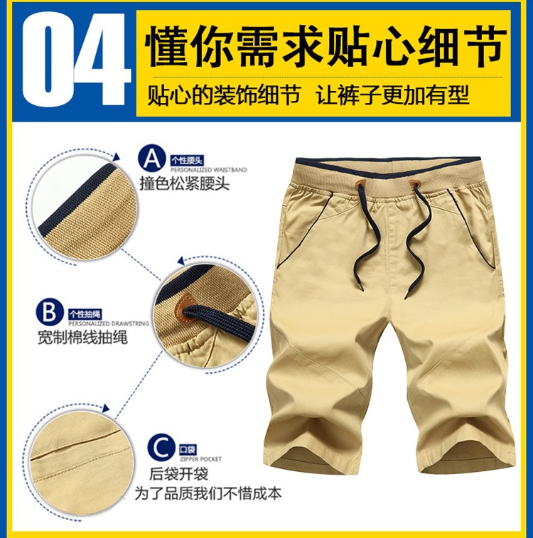 棉质沙滩裤男夏季大码棉工装裤短裤男休闲五分裤纯色潮流时尚跨境