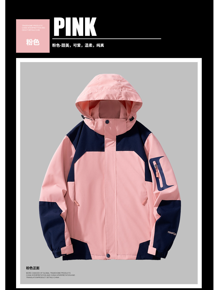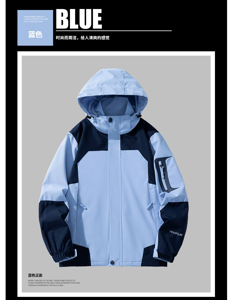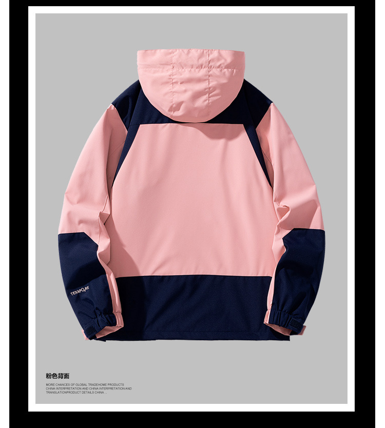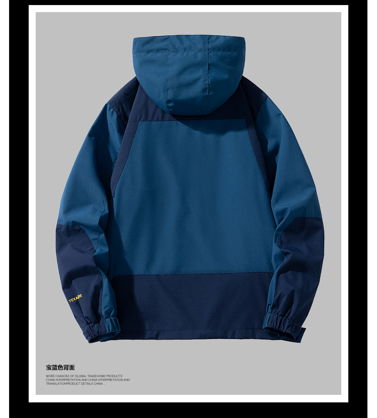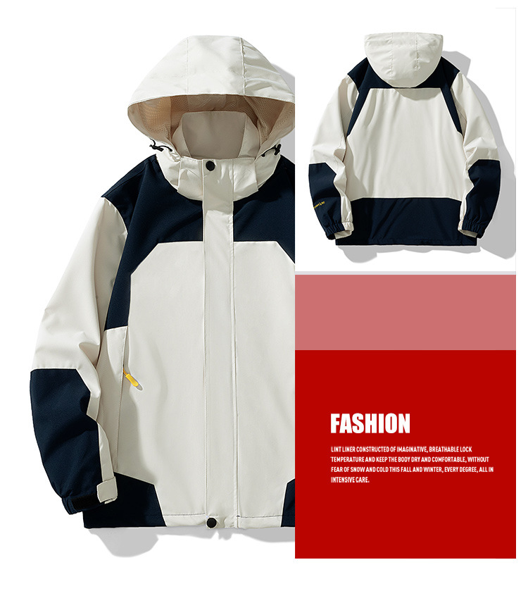 秋冬季冲锋衣新款情侣外套装拼色防风防水户外连帽风衣男式钓鱼服
