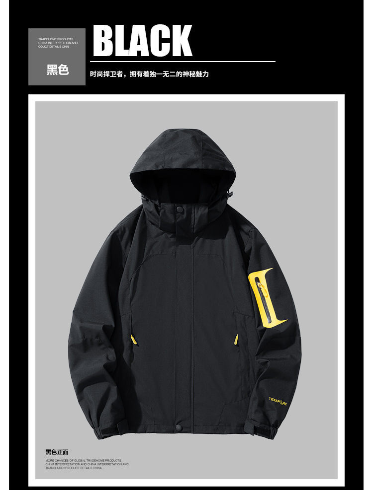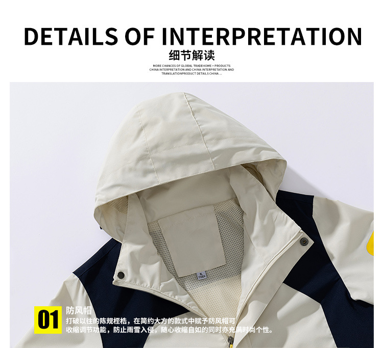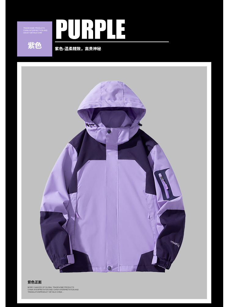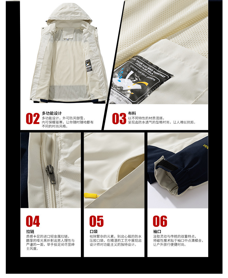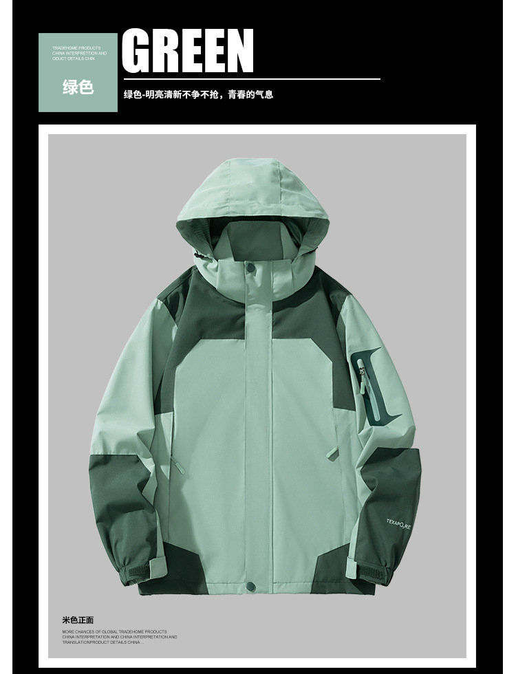 秋冬季冲锋衣新款情侣外套装拼色防风防水户外连帽风衣男式钓鱼服