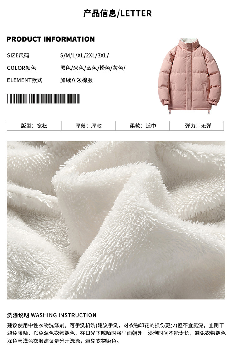 跨境男士加厚棉服青年情侣款宽松外套棉袄时尚潮流男生加绒棉衣男