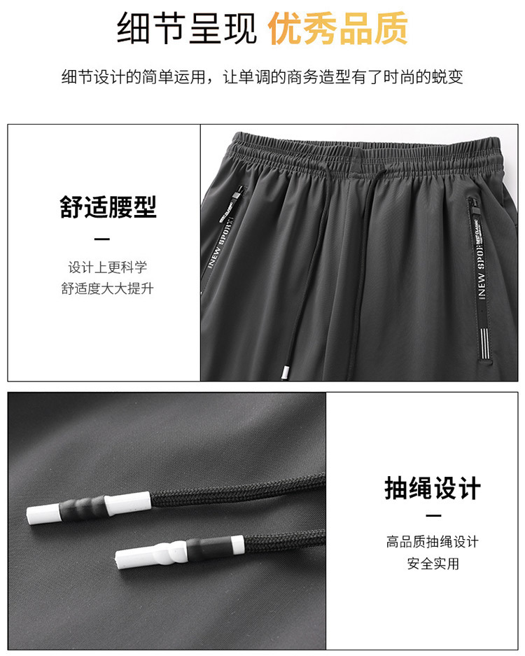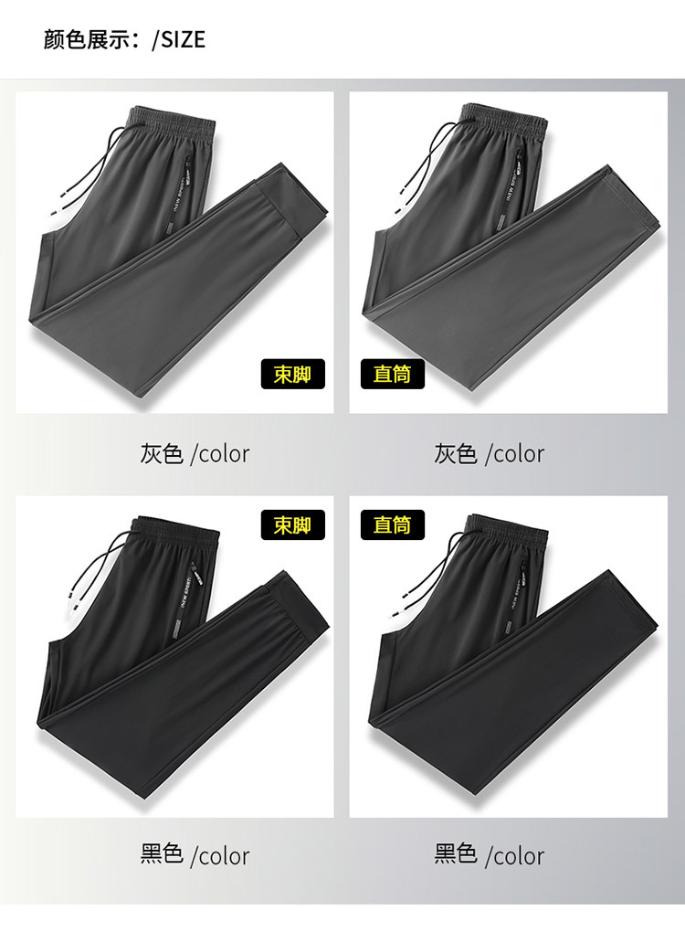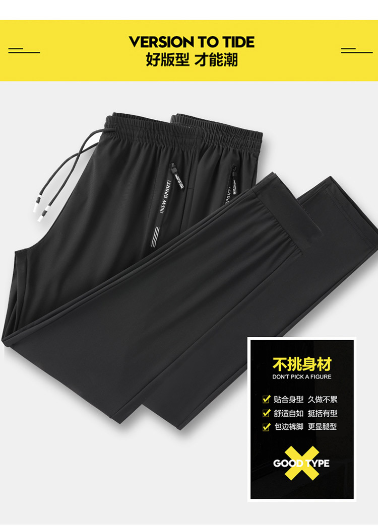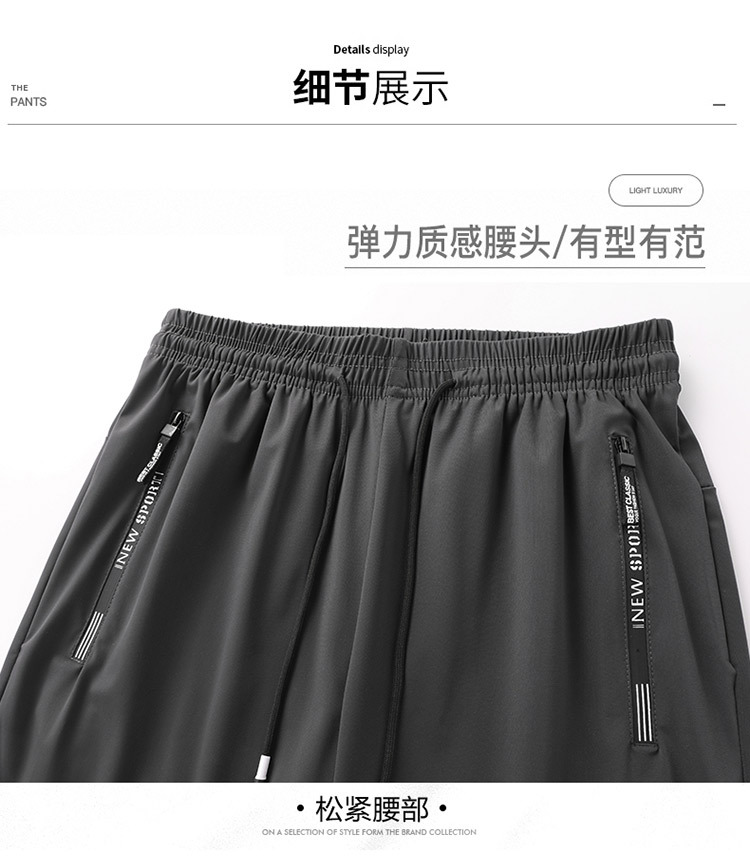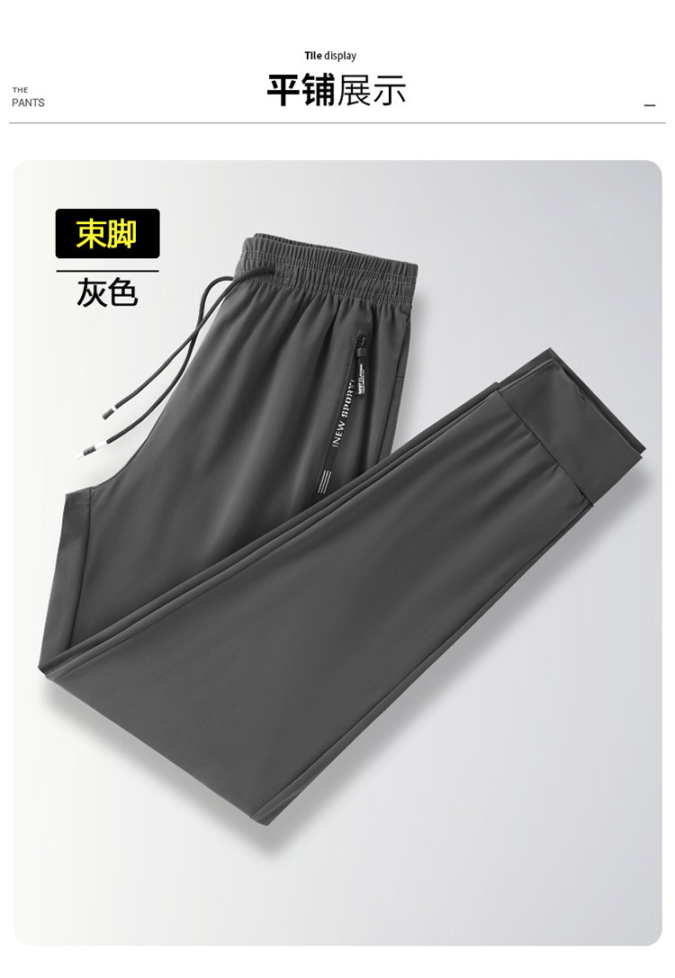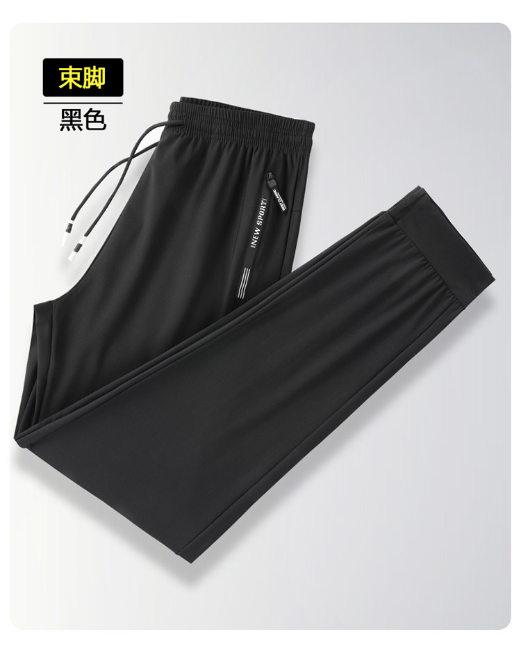 新款运动休闲裤男士夏季冰丝裤子薄款修身速干九分空调裤大码跨境
