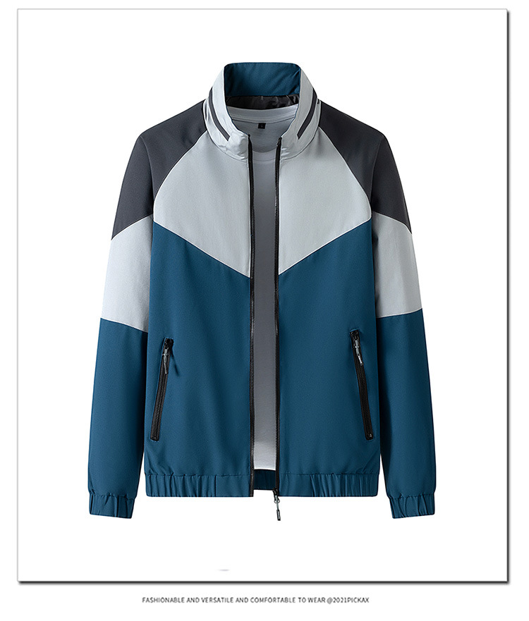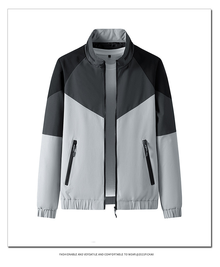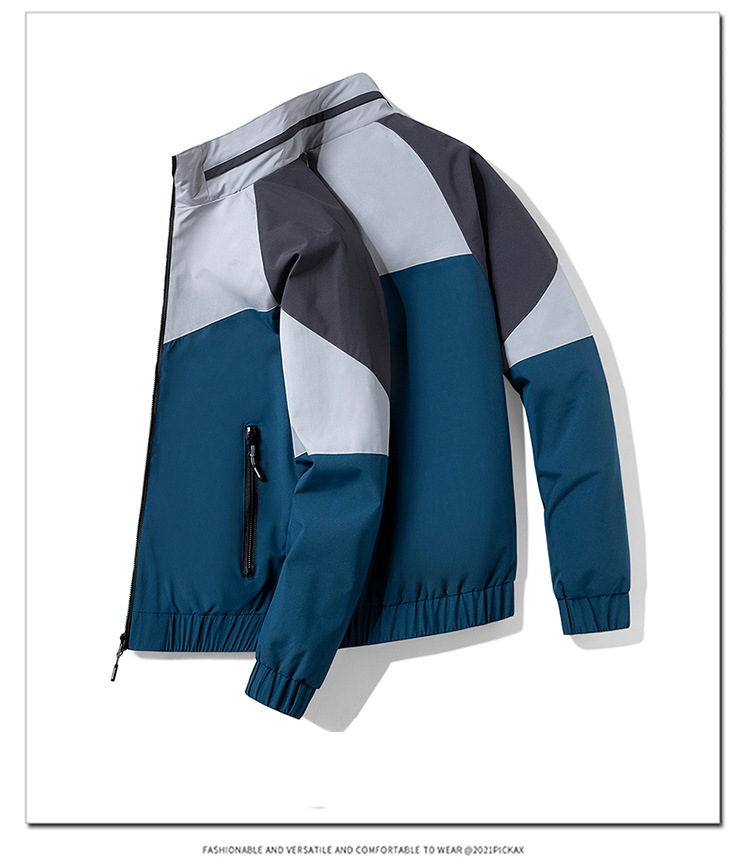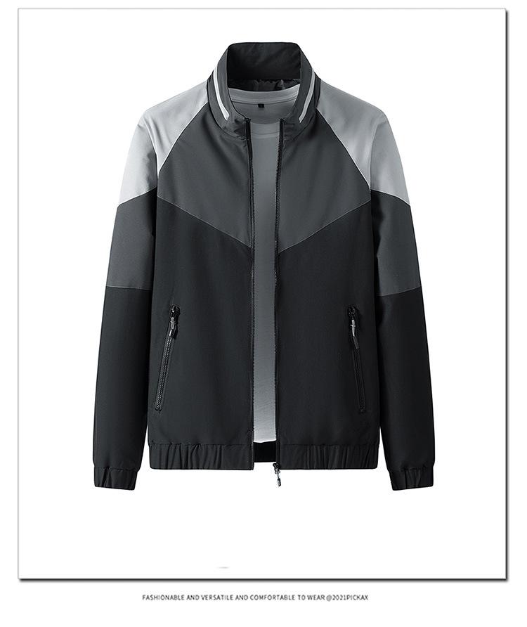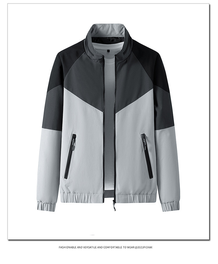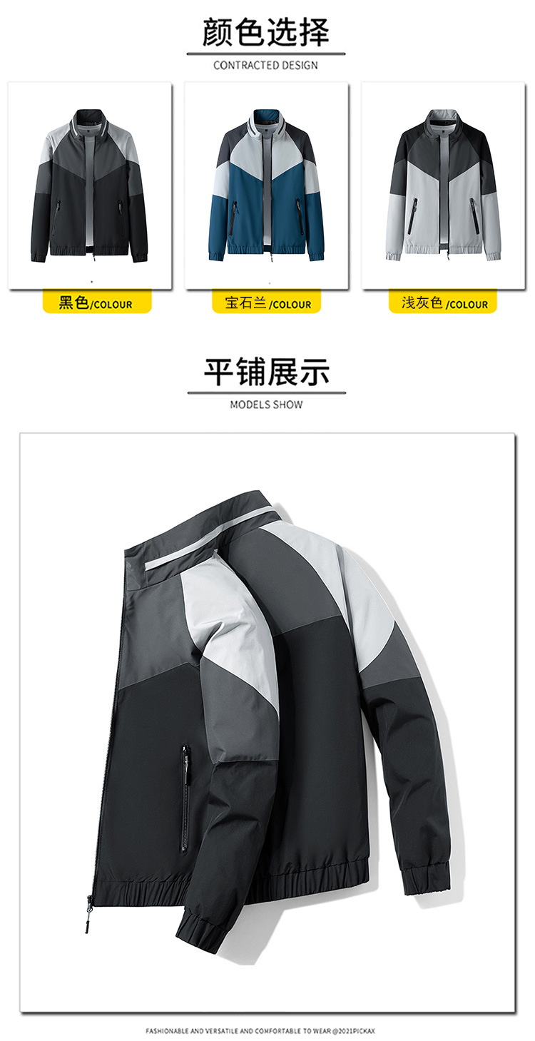 2023新款男士外套春秋韩版潮流上衣服男装薄款拼色夹克男休闲运动