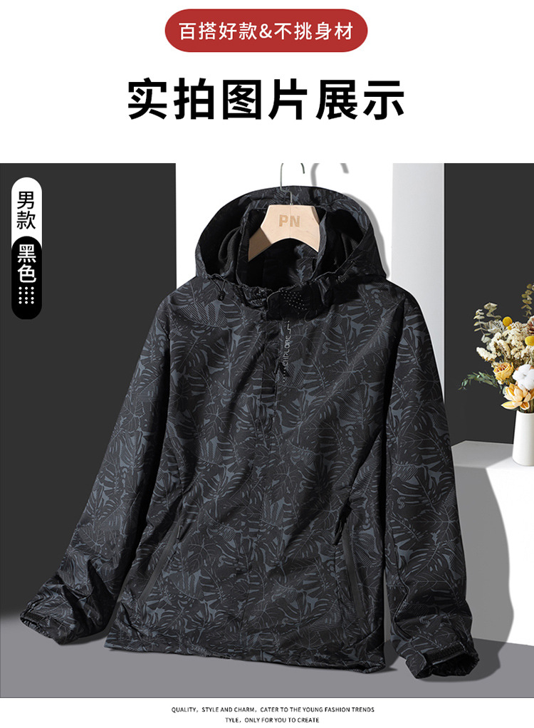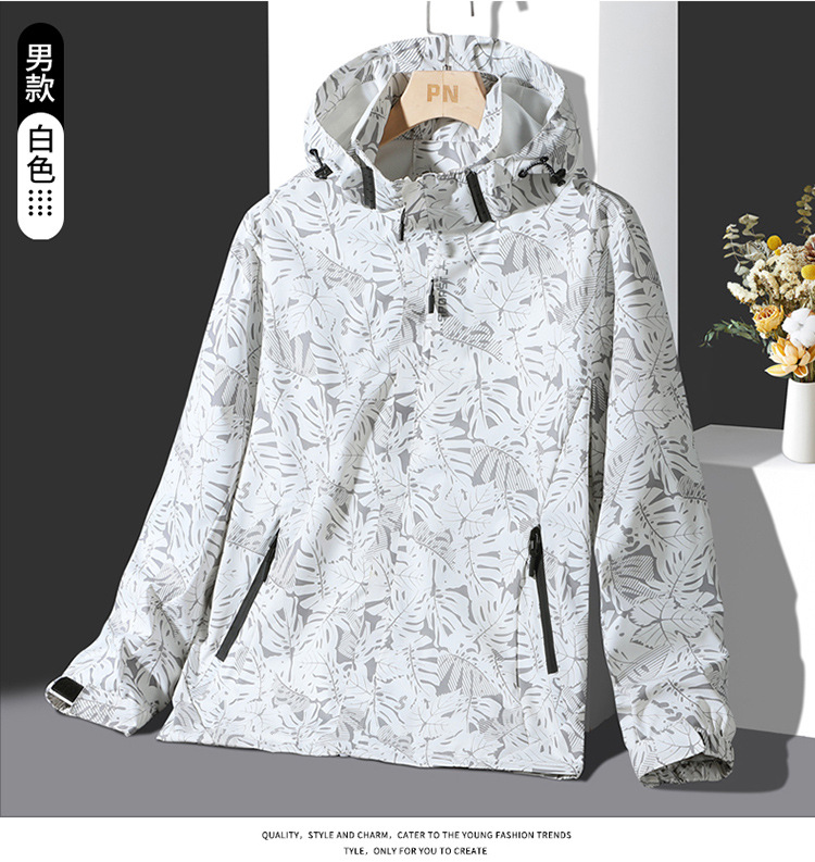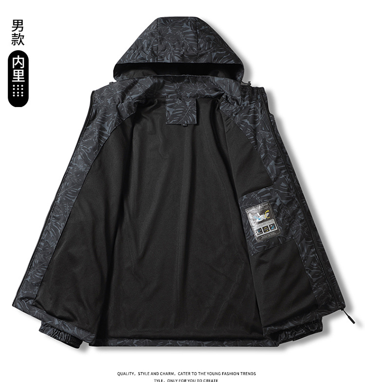外贸春秋季新款男士风衣男运动户外男女情侣款防风防水冲锋衣迷彩