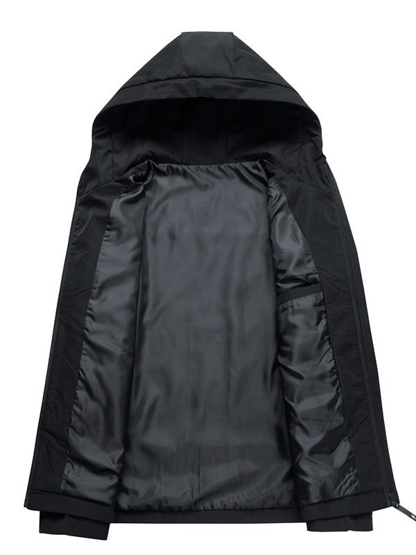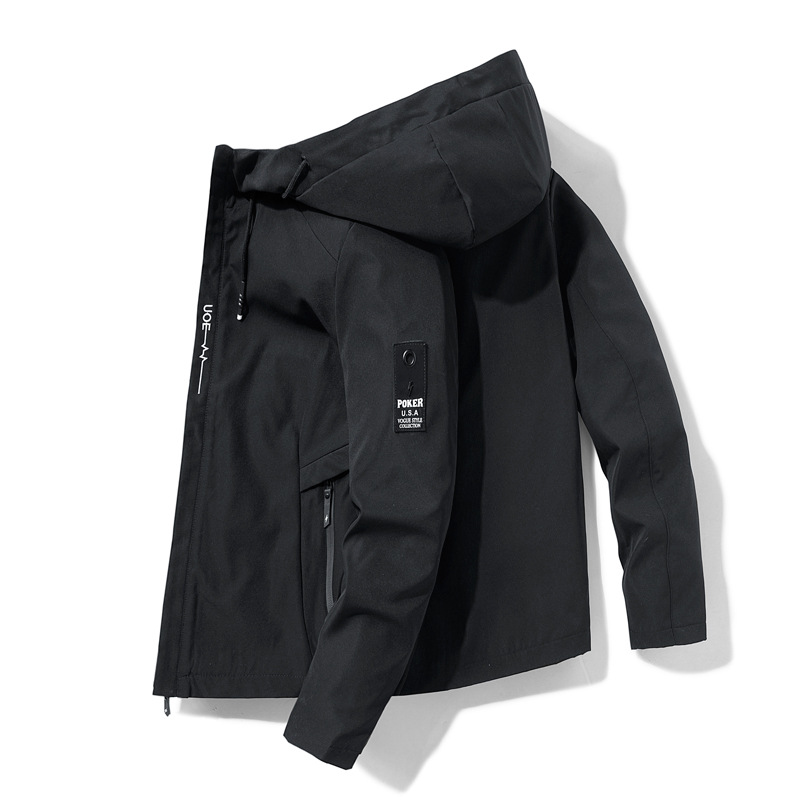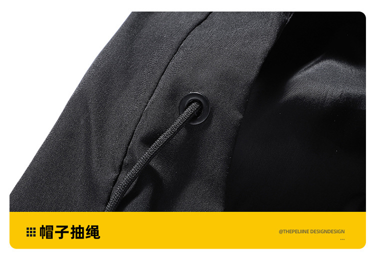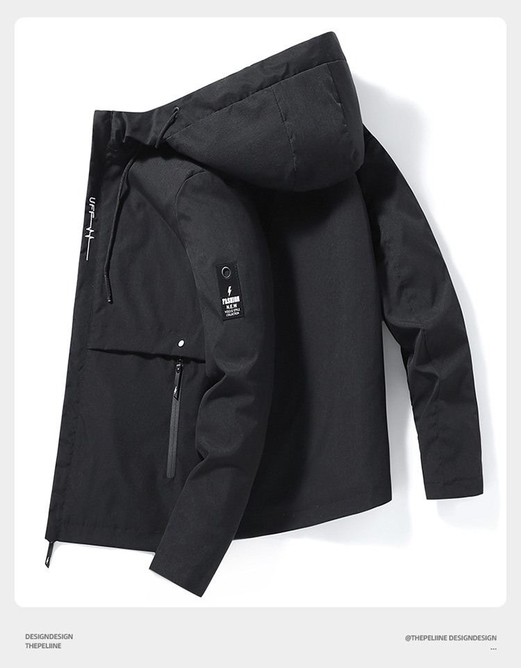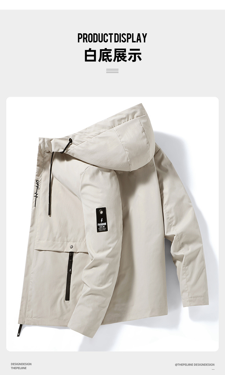 跨境日系春秋薄款纯色夹克男外套青年修身拉链连帽外套男装帅休闲