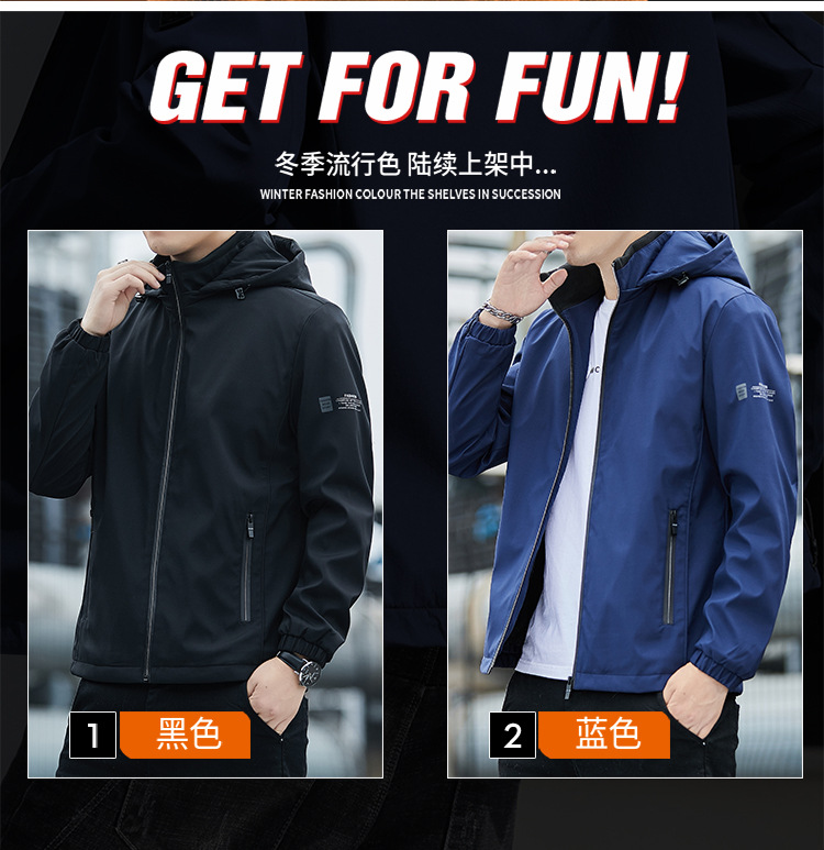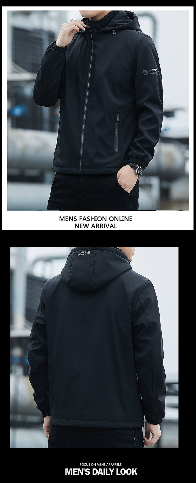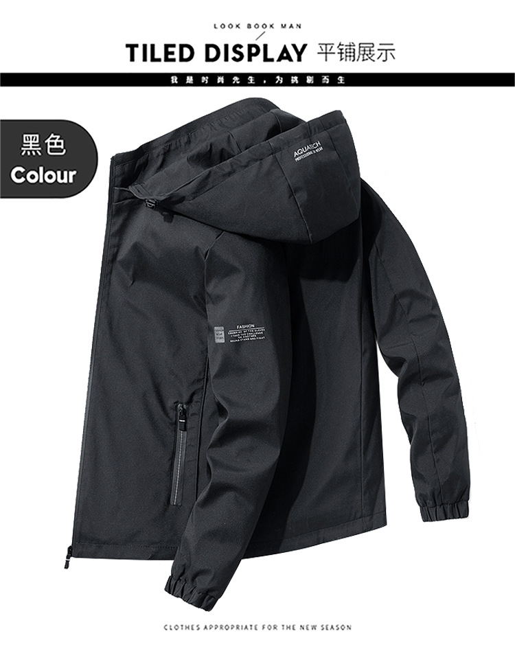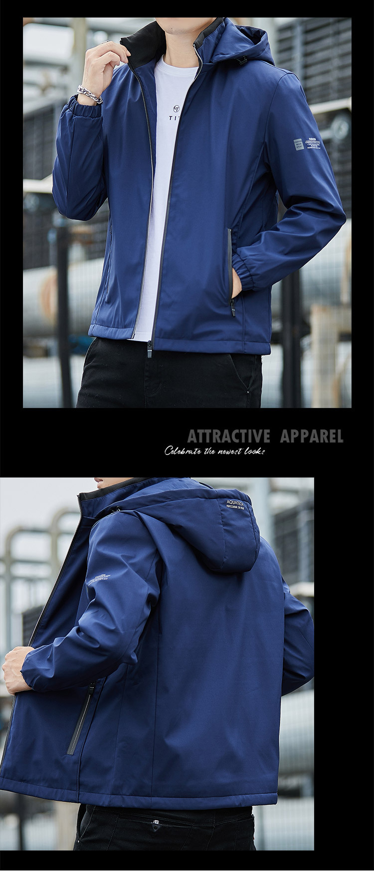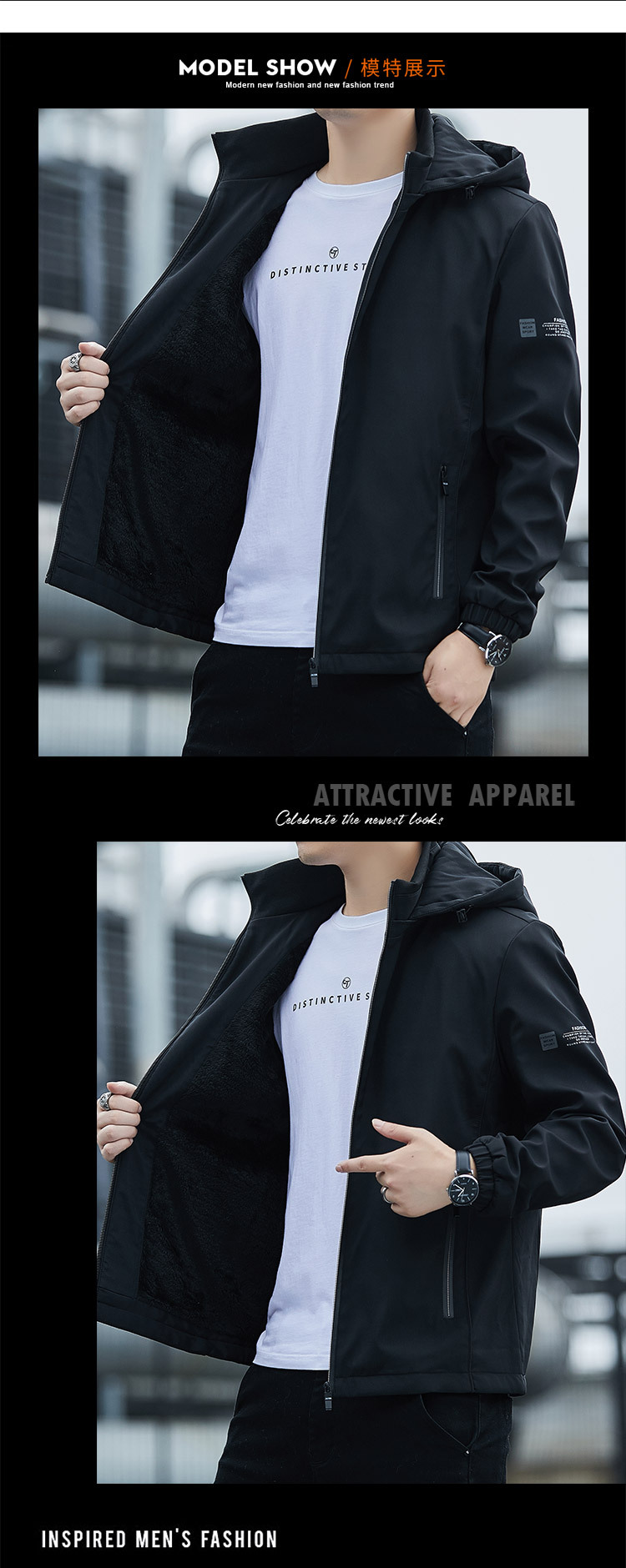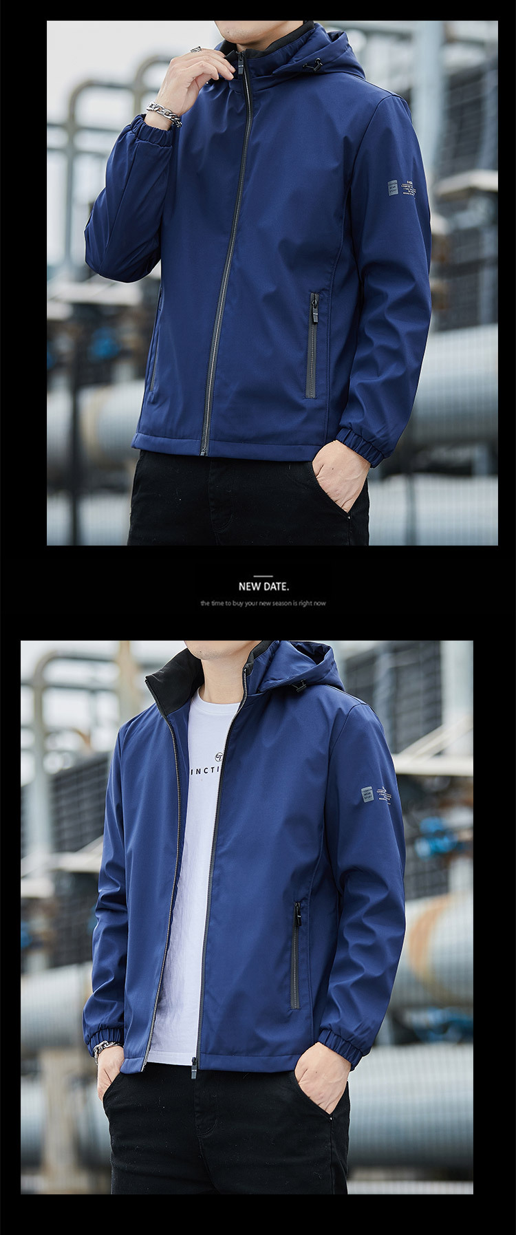 跨境连帽夹克男春季新款时尚潮流修身中青年上衣外套男装商务百搭