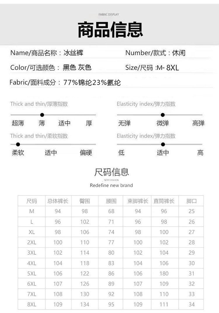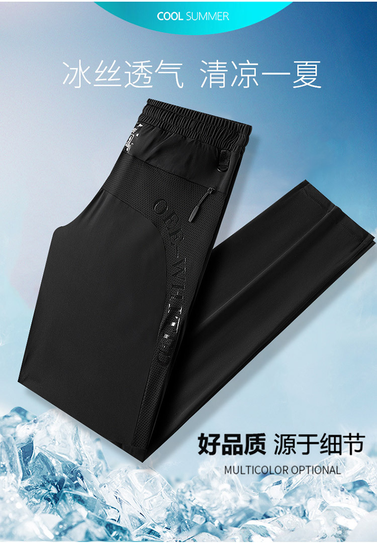 跨境冰丝裤春夏季薄款男士休闲裤男款夏天直筒工装男裤速干长裤男