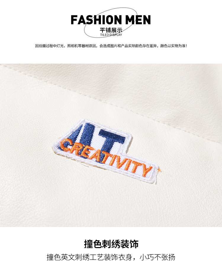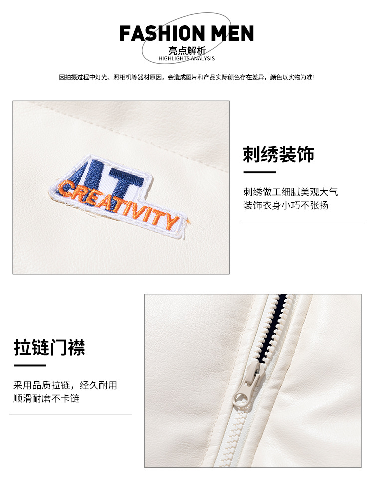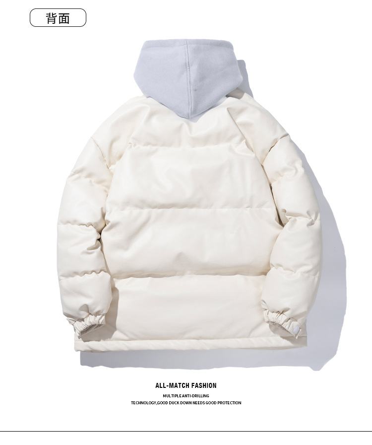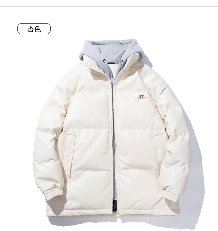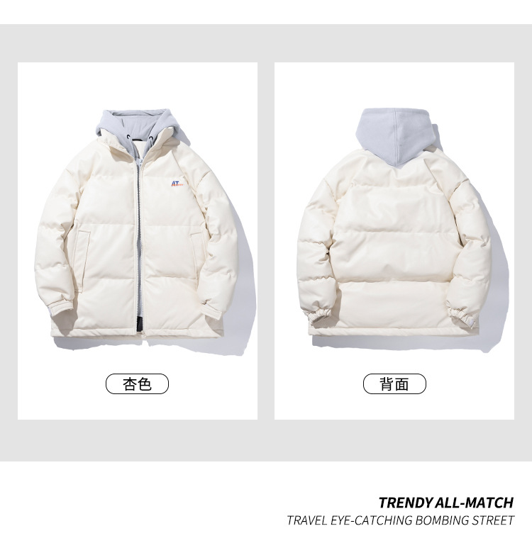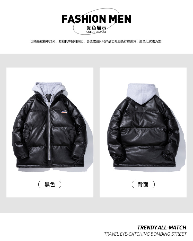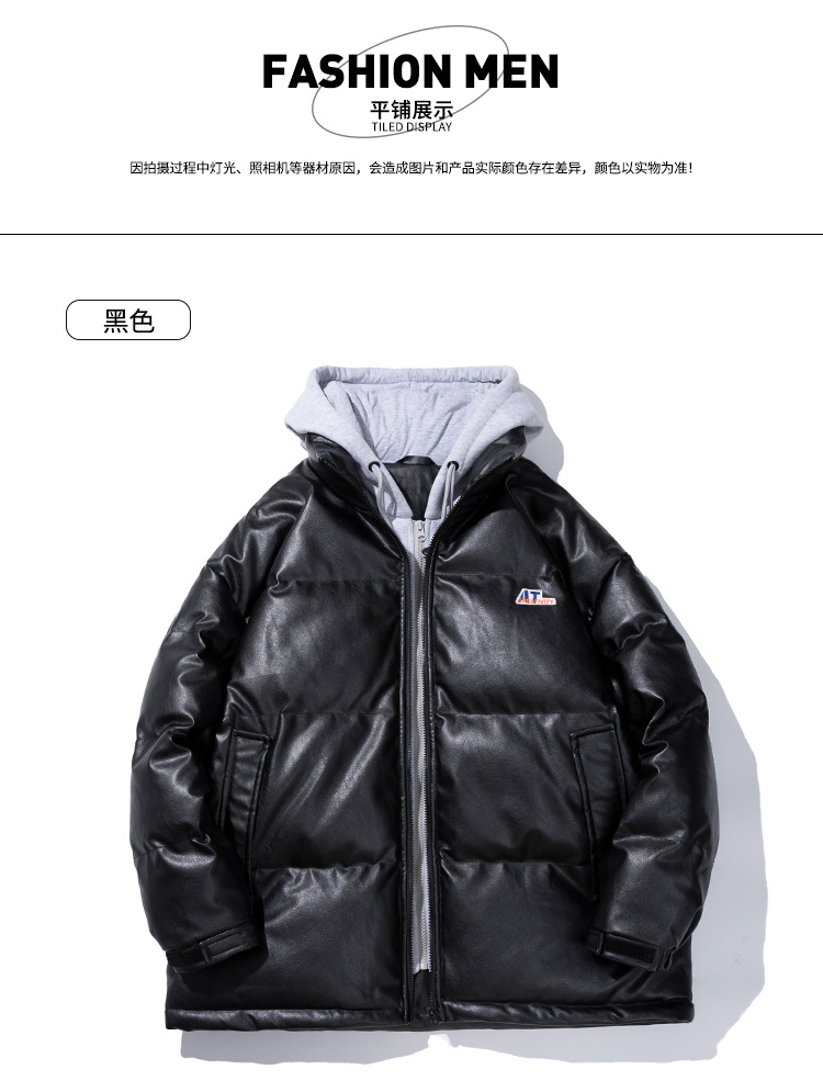 pu皮棉衣男假两件新款冬宽松加厚潮流时尚保暖休闲拼接棉服外套男