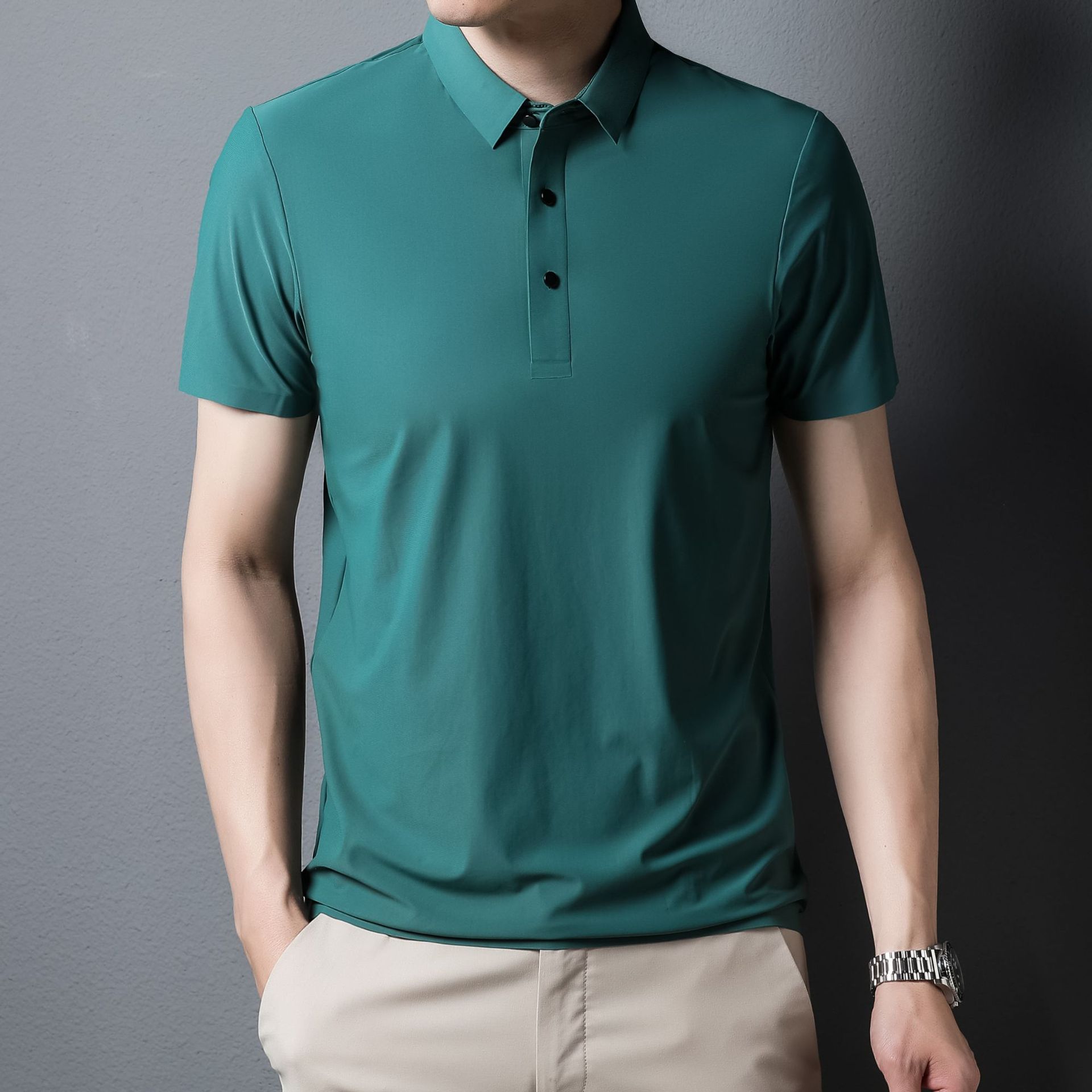 夏季冰丝短袖t恤男士带领轻商务纯色半袖体桖 丝滑透气POLO衫男装