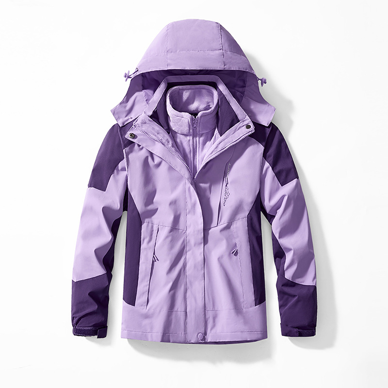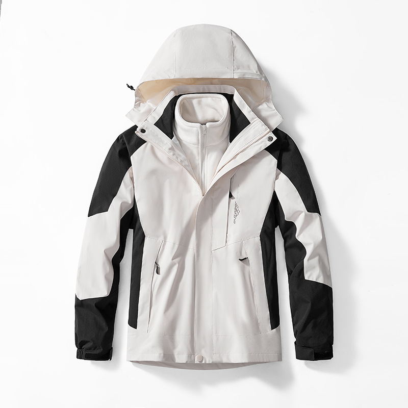 冬季冲锋衣女款抓绒内胆三合一水貂绒外套男连帽可拆卸加印花批发