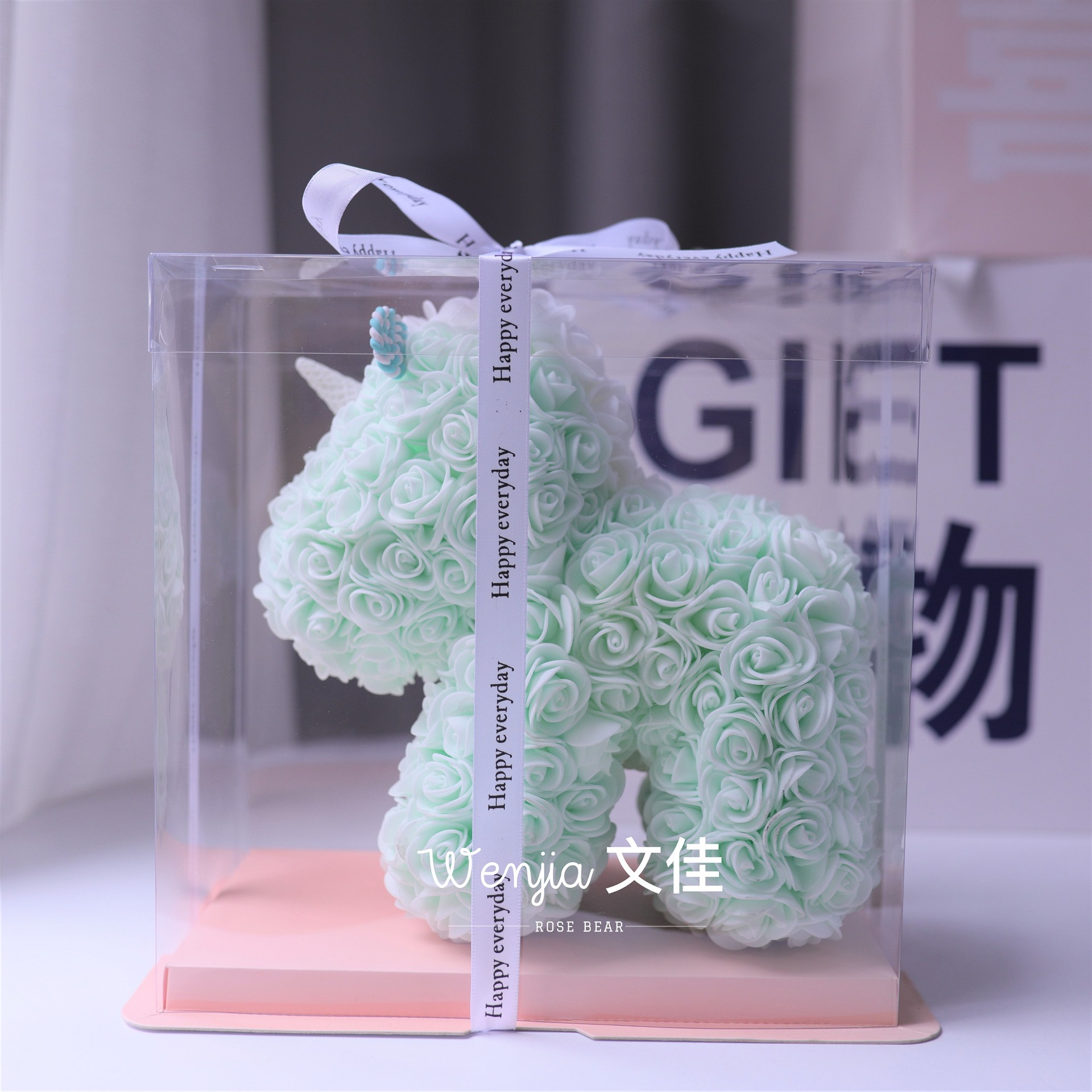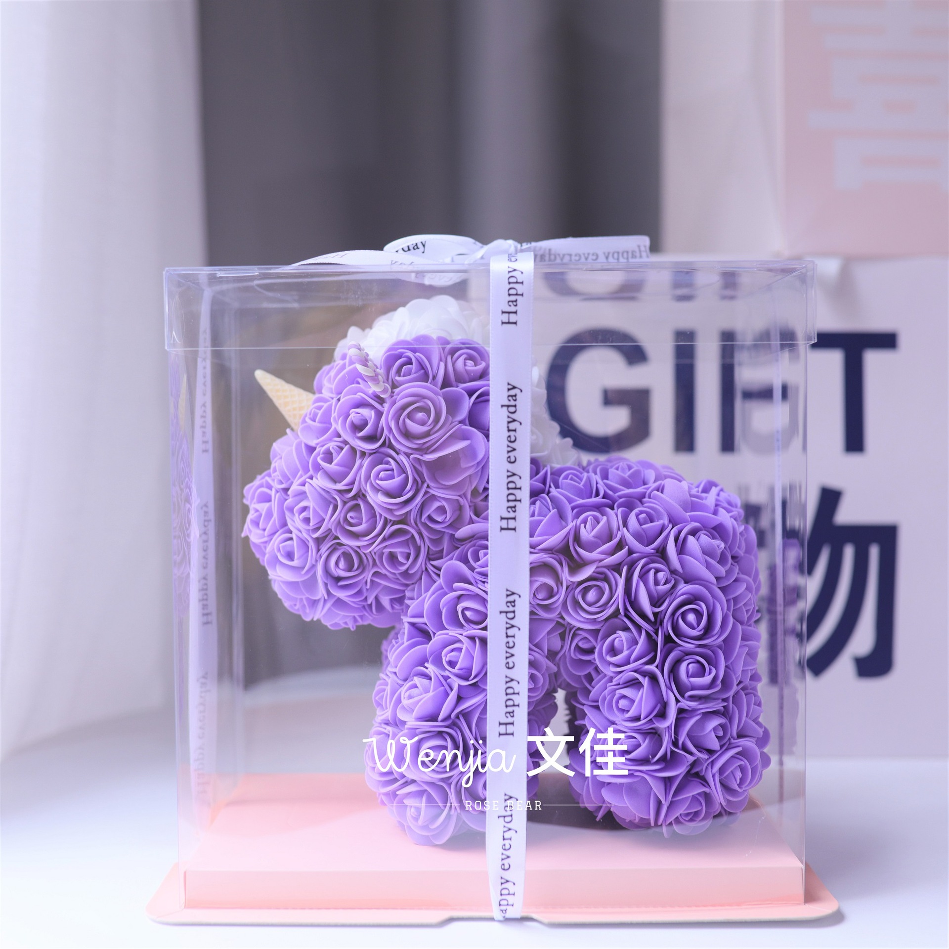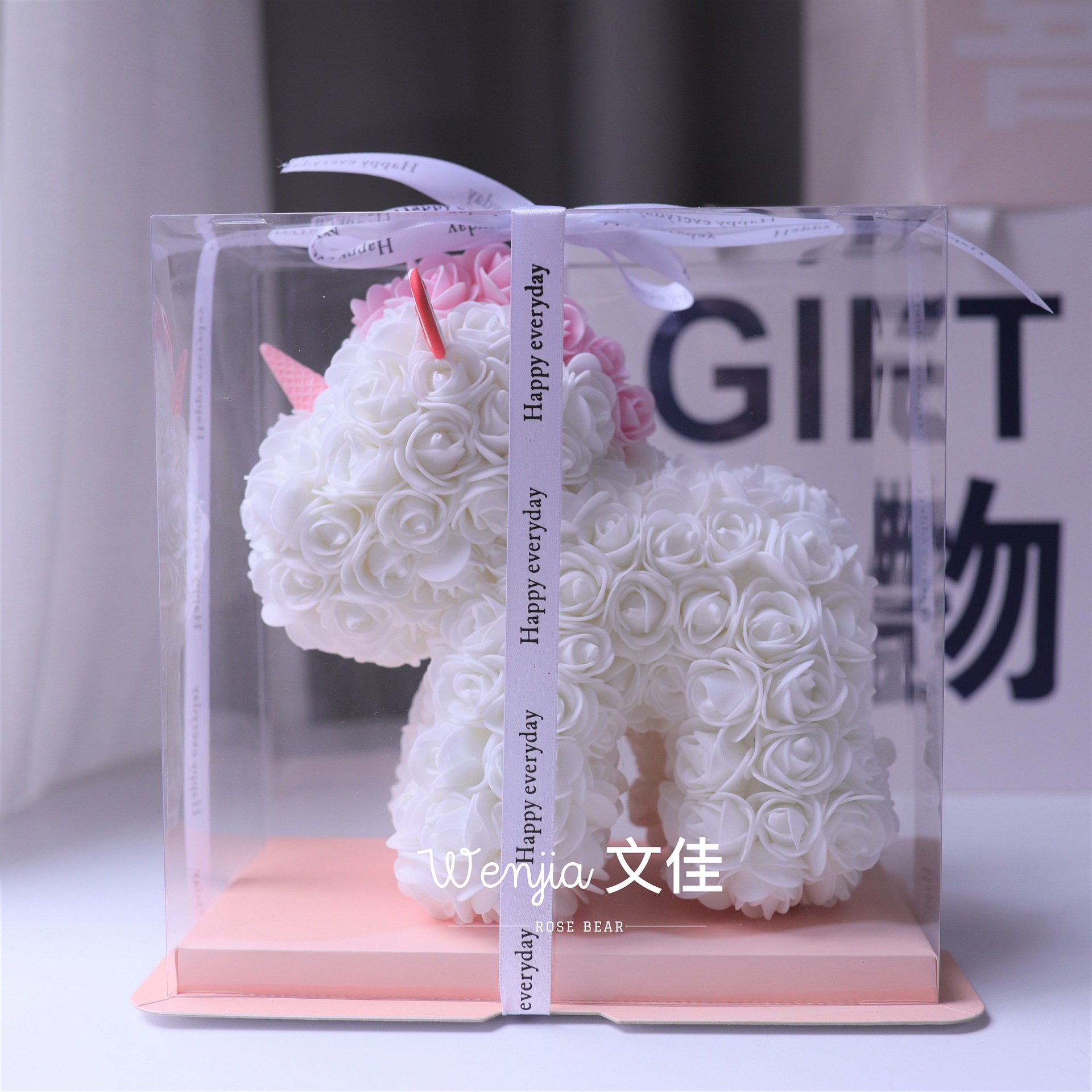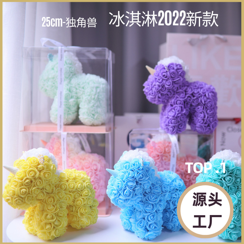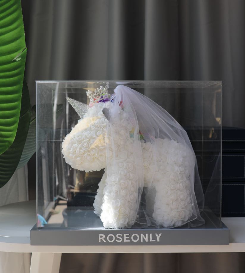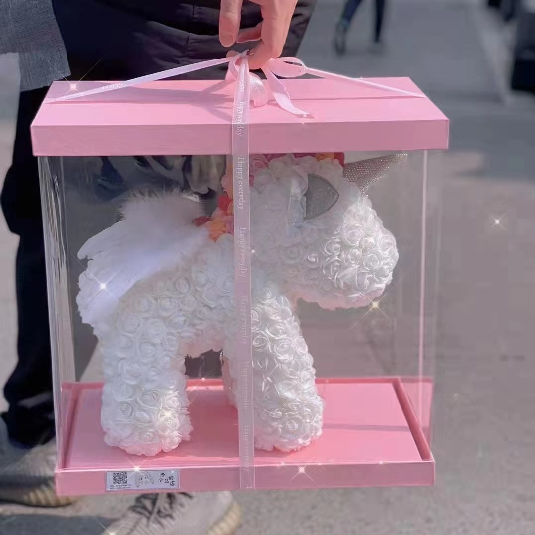 520情人节礼物送女友永生花独角兽小号婚纱翅膀pe玫瑰花独角兽
