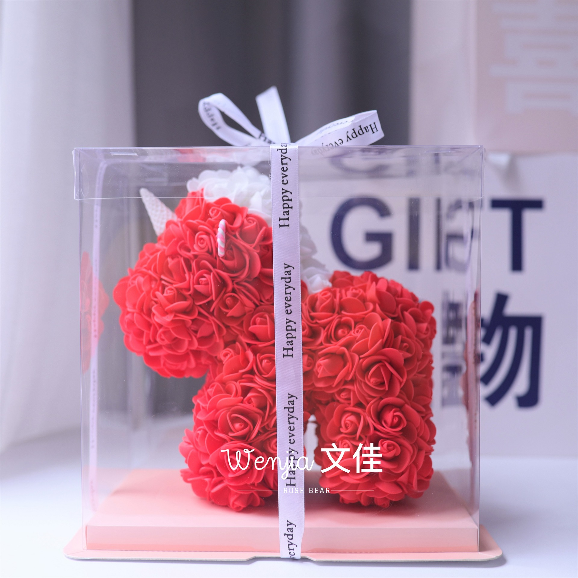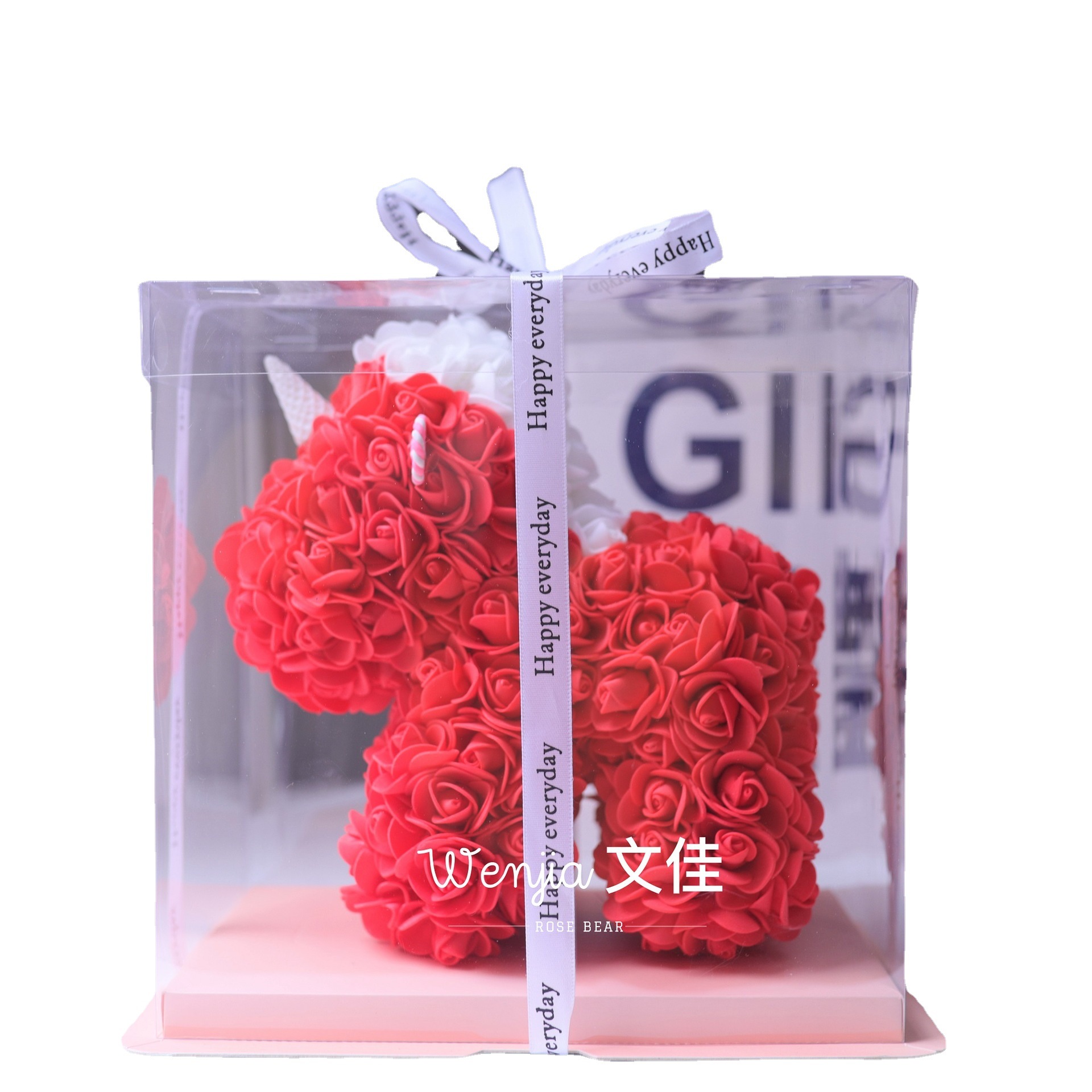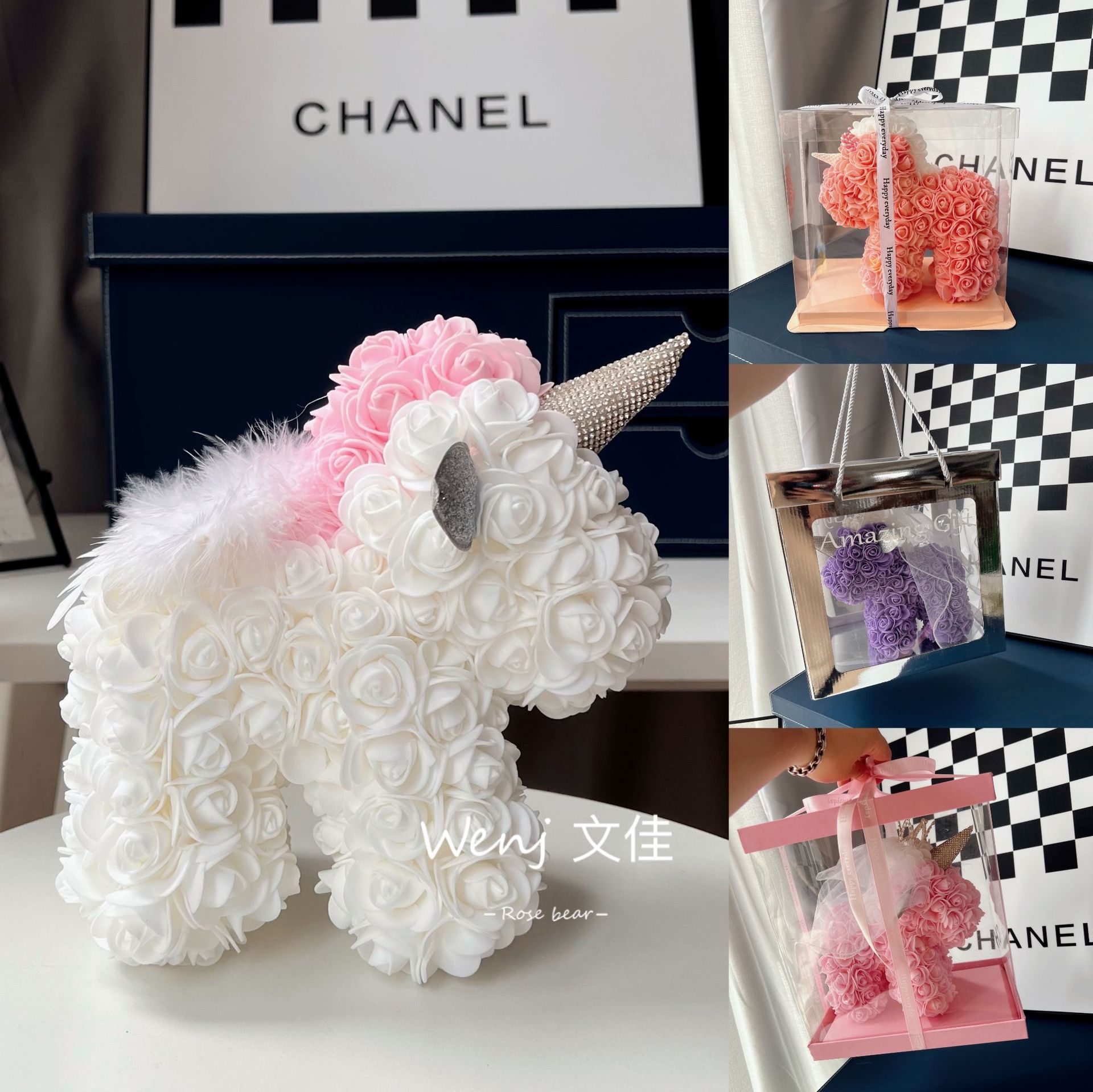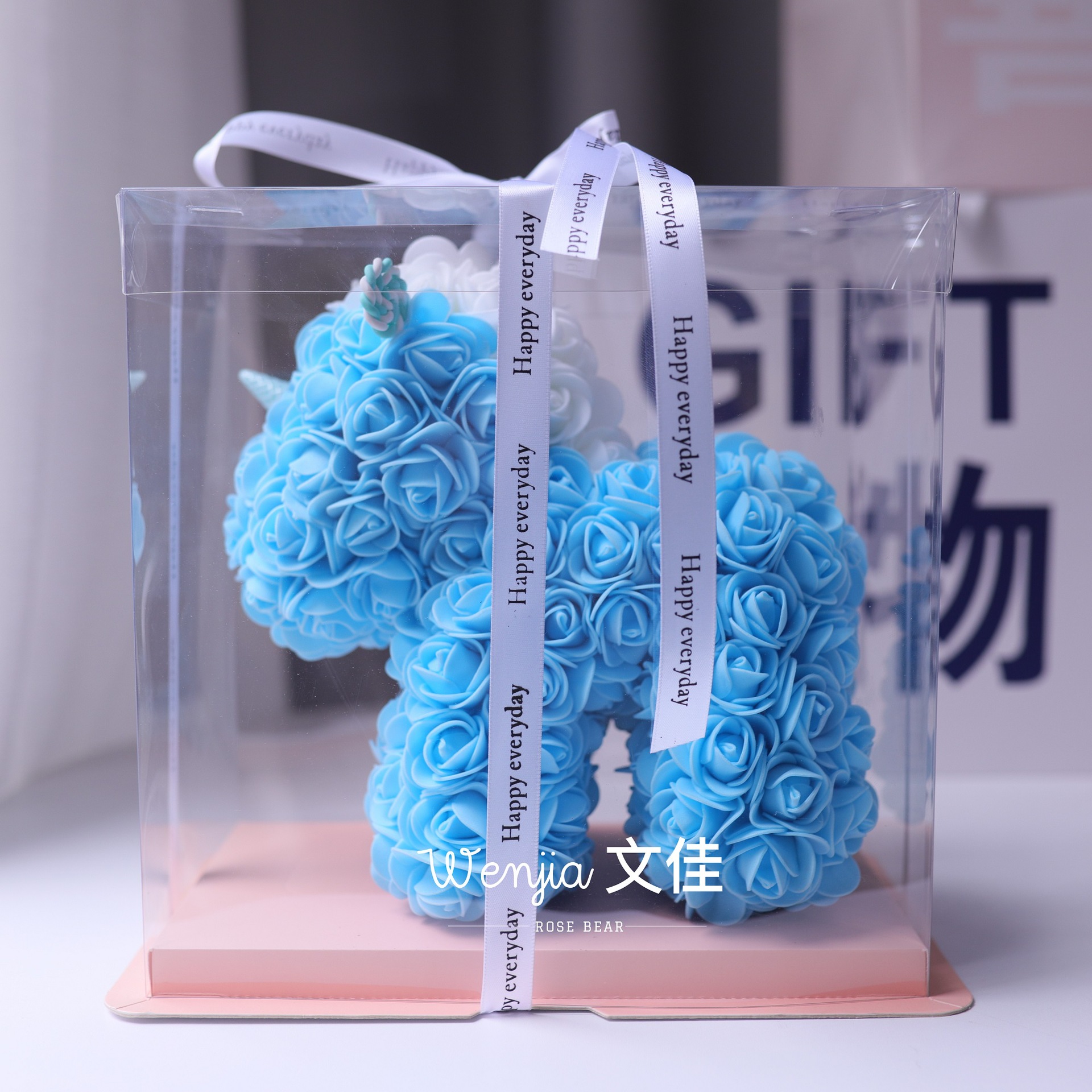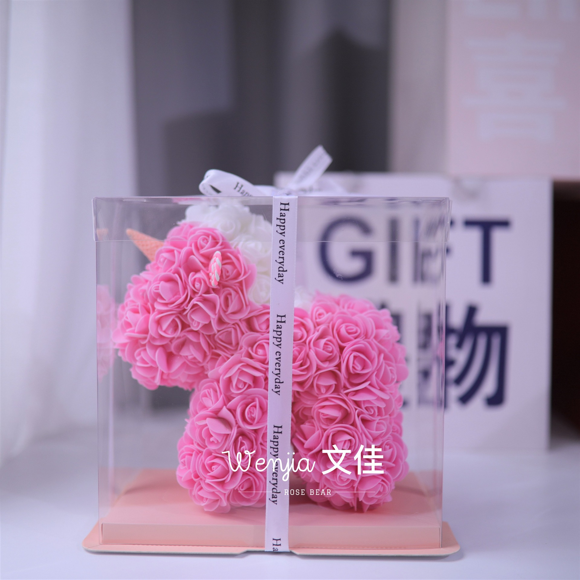 520情人节礼物送女友永生花独角兽小号婚纱翅膀pe玫瑰花独角兽