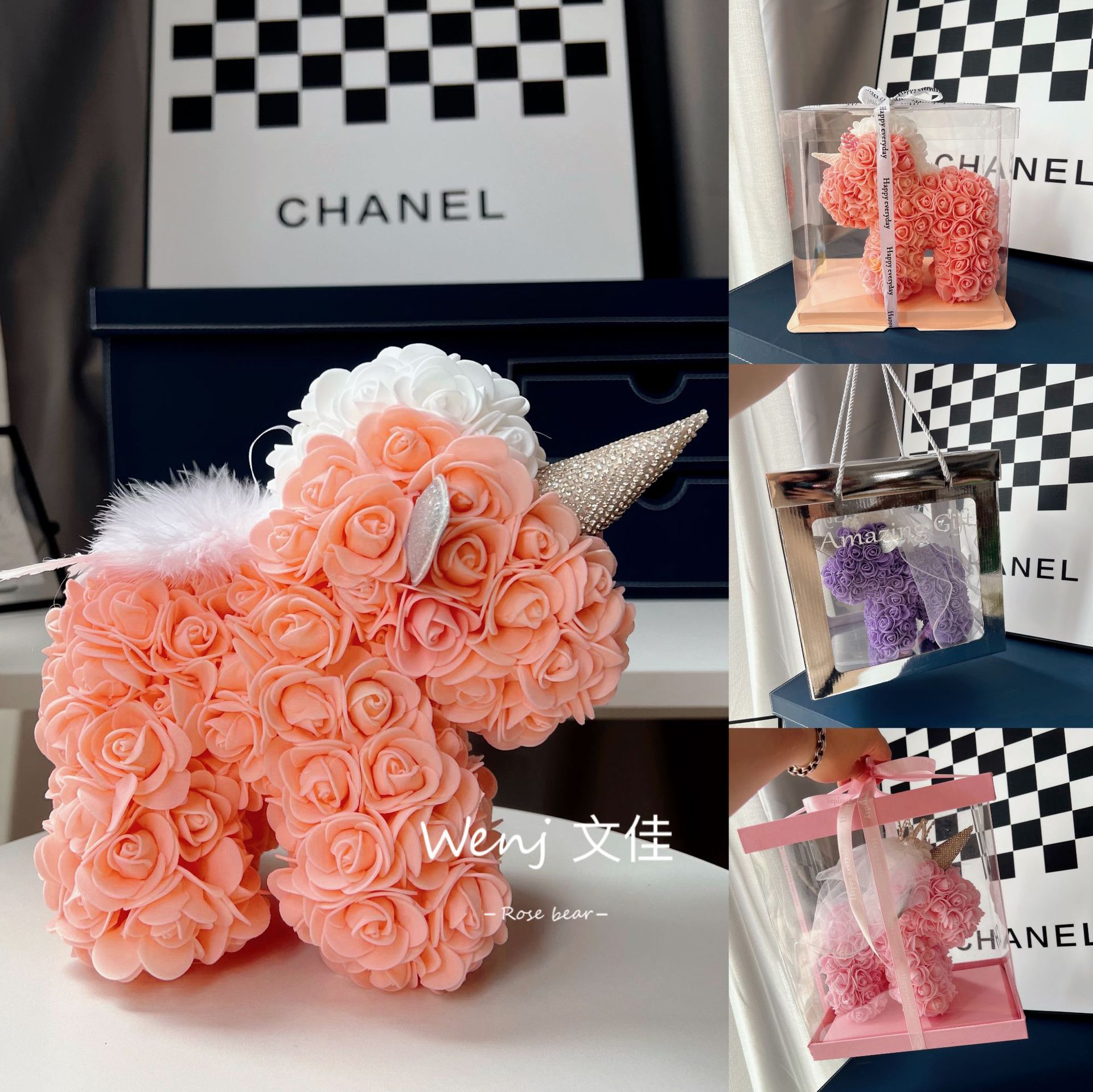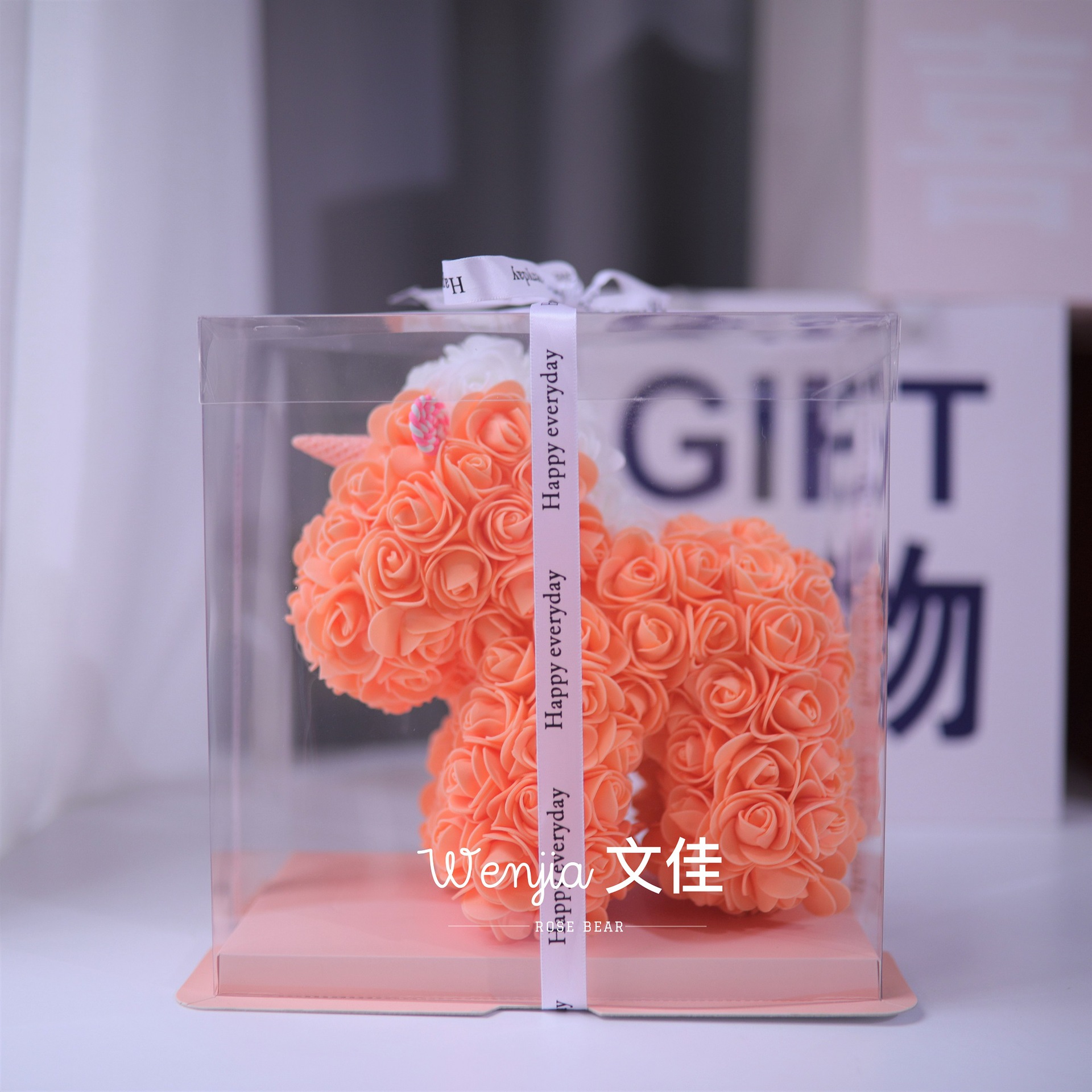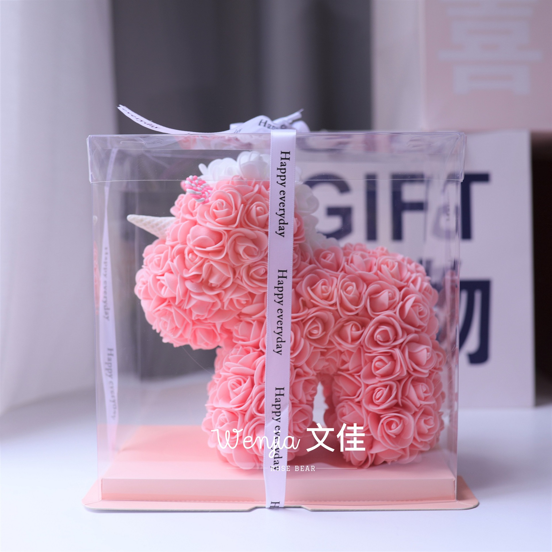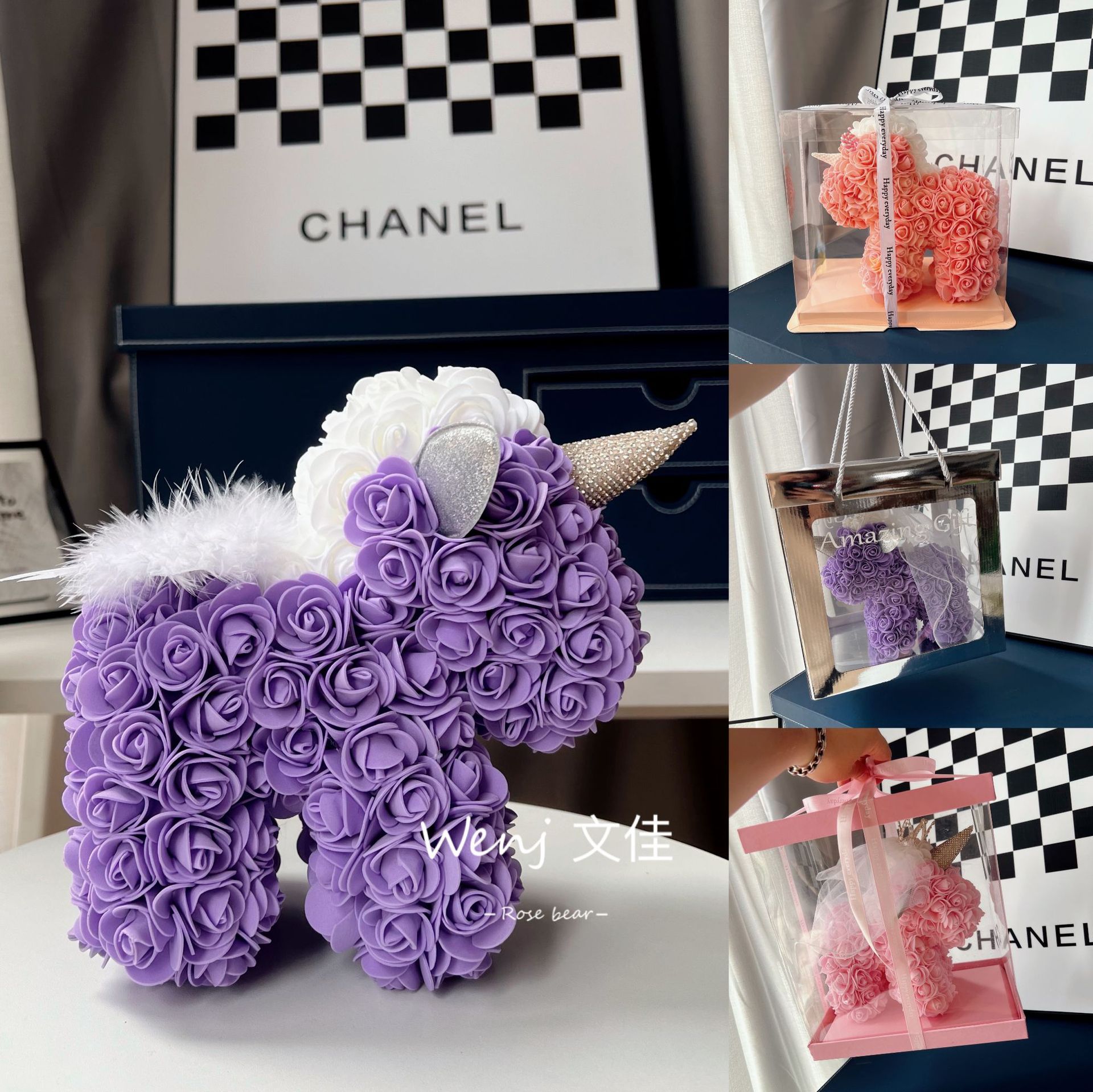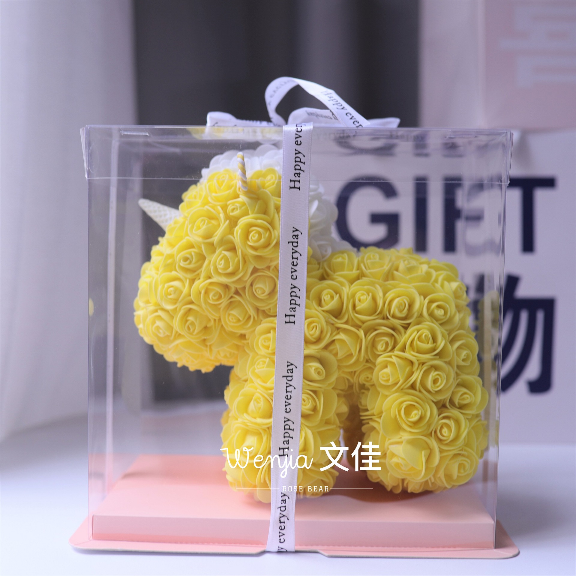 520情人节礼物送女友永生花独角兽小号婚纱翅膀pe玫瑰花独角兽