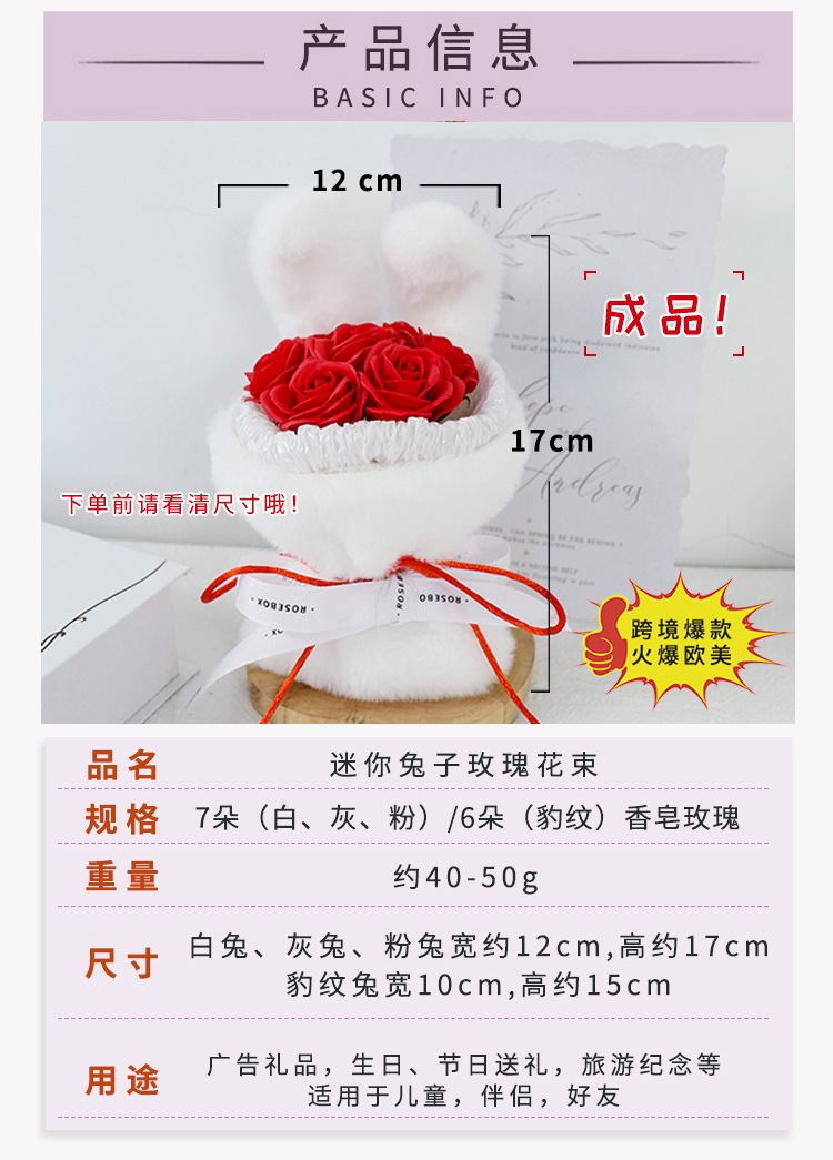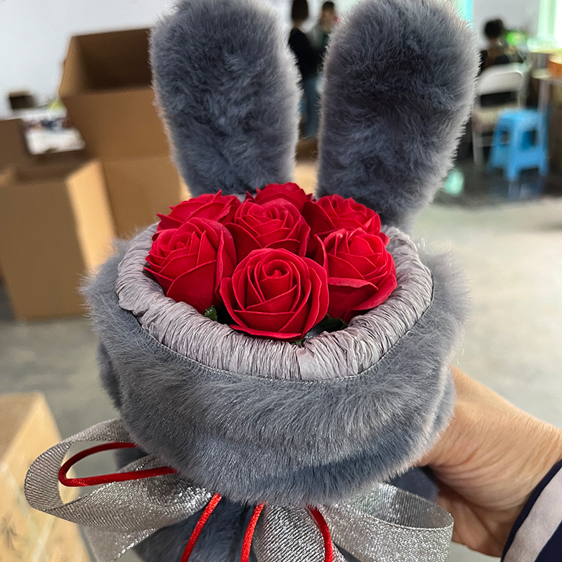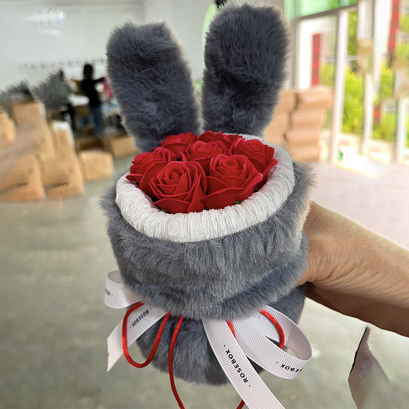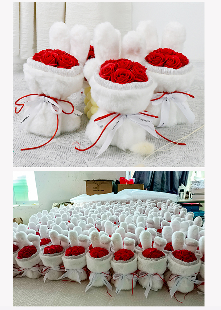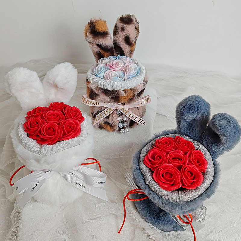 成品兔子耳朵玫瑰花花束七夕情人节礼物送闺蜜女友生日礼品伴手礼