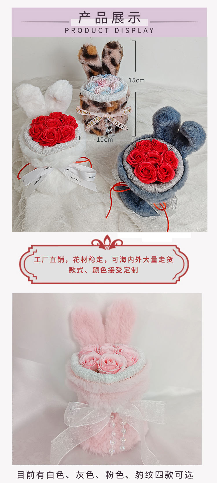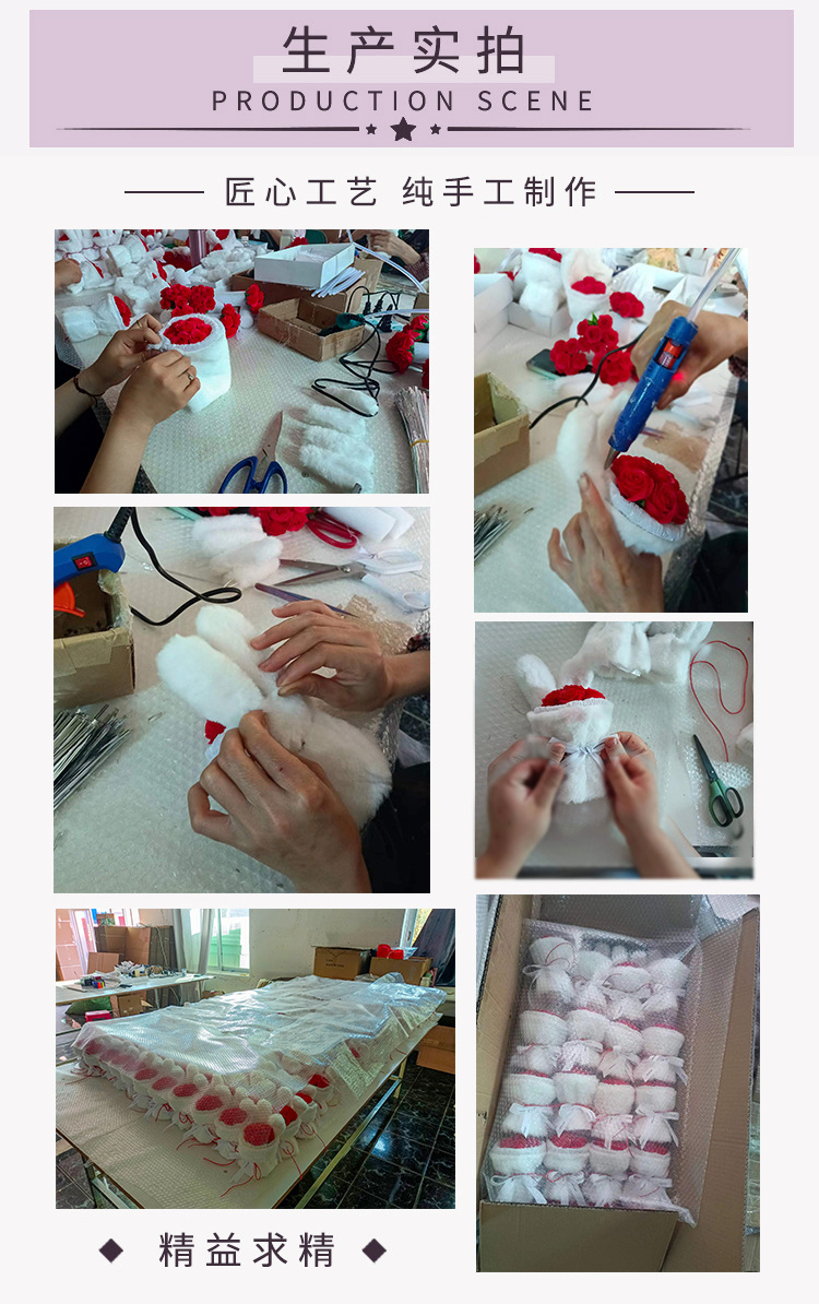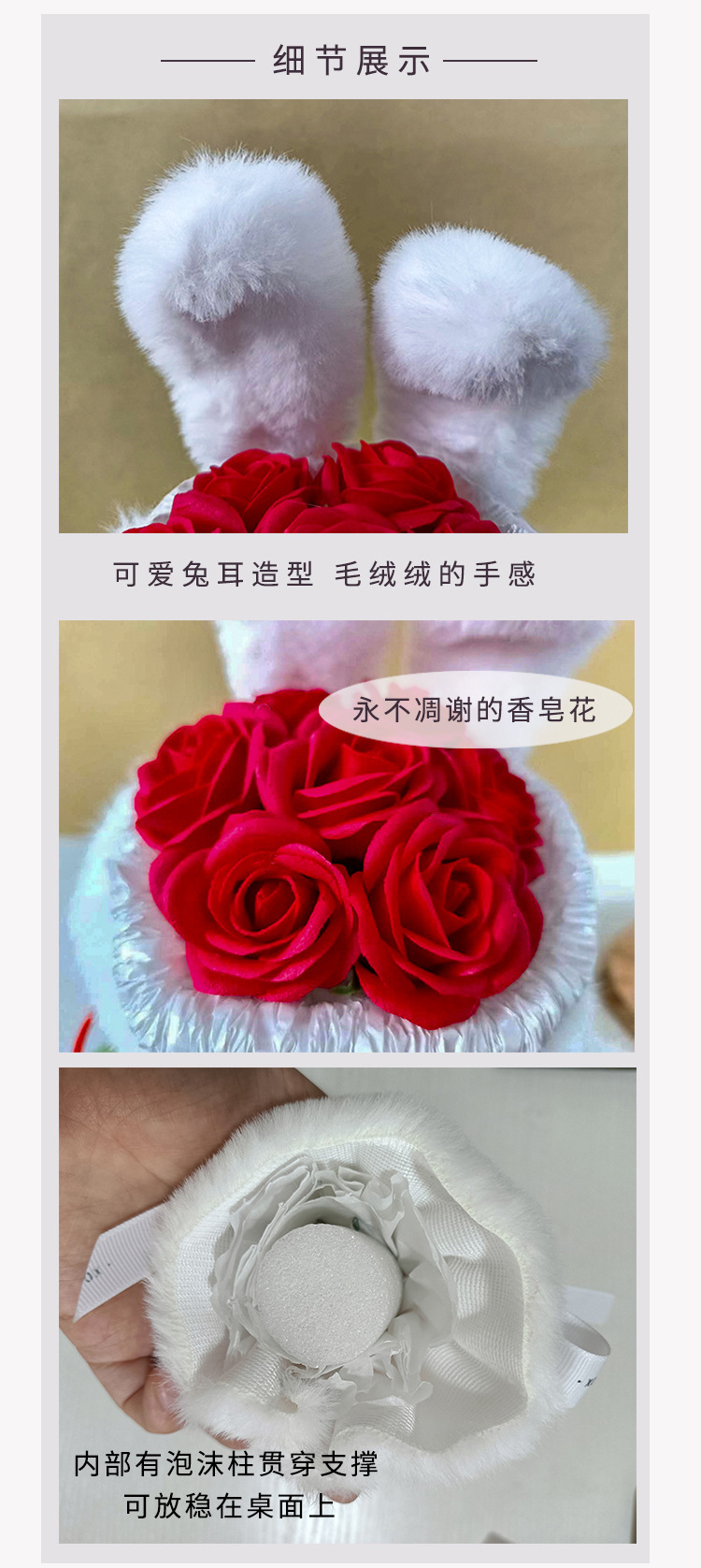 成品兔子耳朵玫瑰花花束七夕情人节礼物送闺蜜女友生日礼品伴手礼