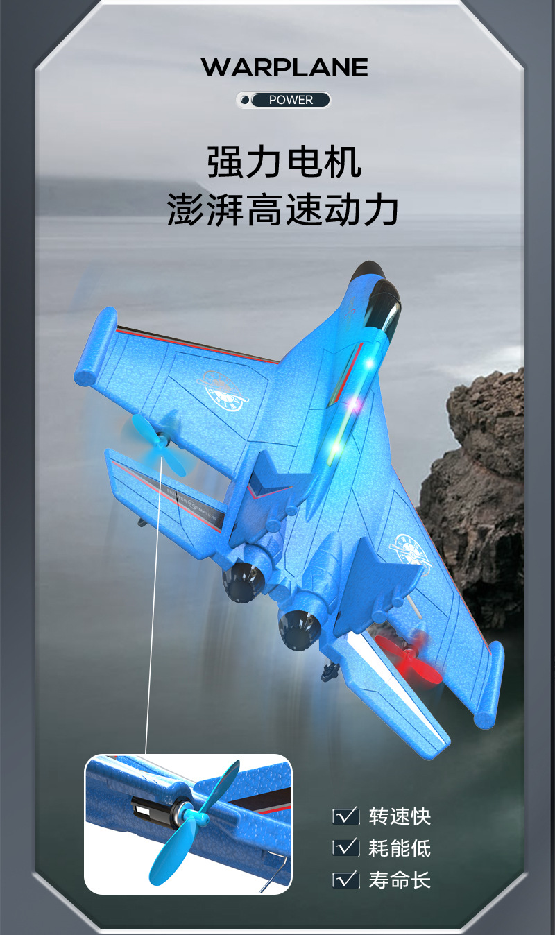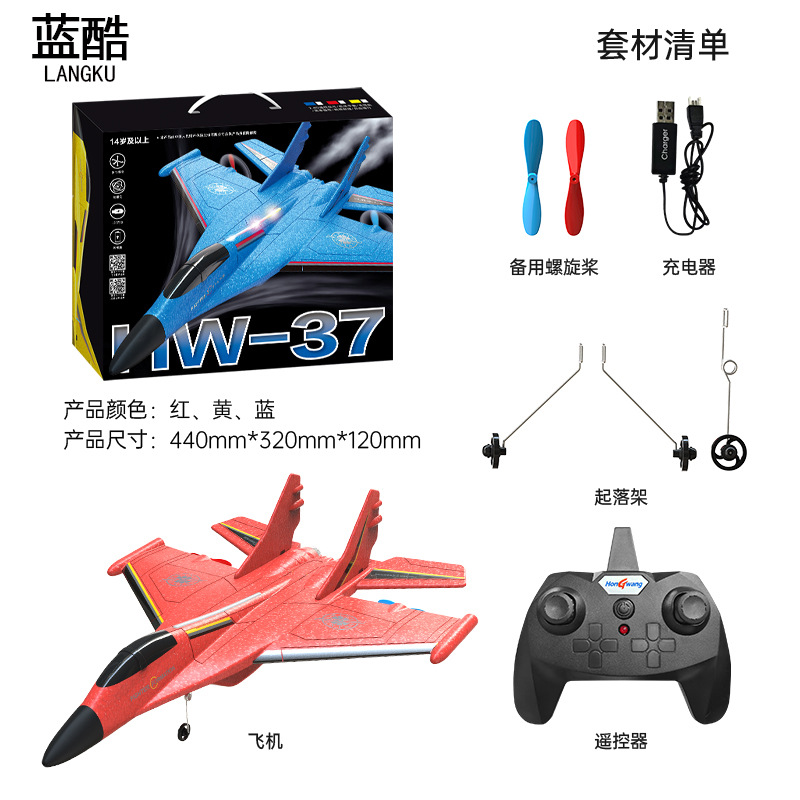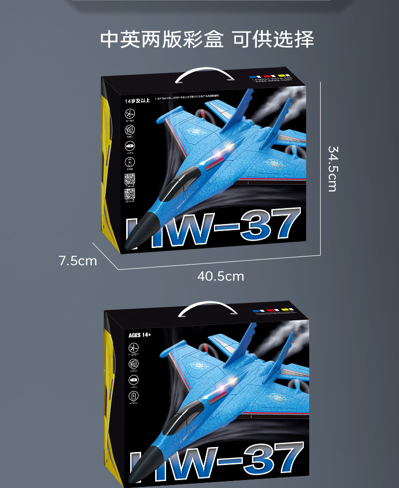 遥控飞机 男生发光玩具 仿真EPP泡沫战斗机HW-37 滑翔飞机生日礼