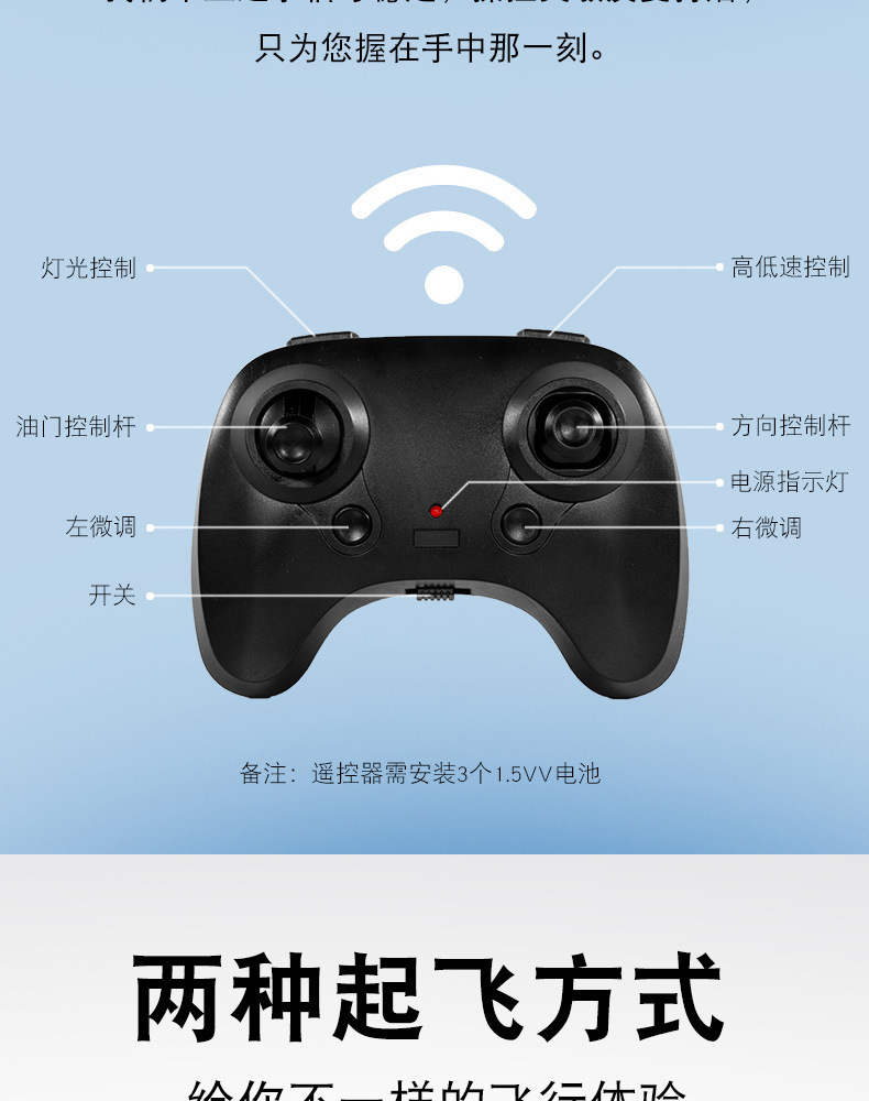 【遥控器电池】:3节7号干电池(需自备)