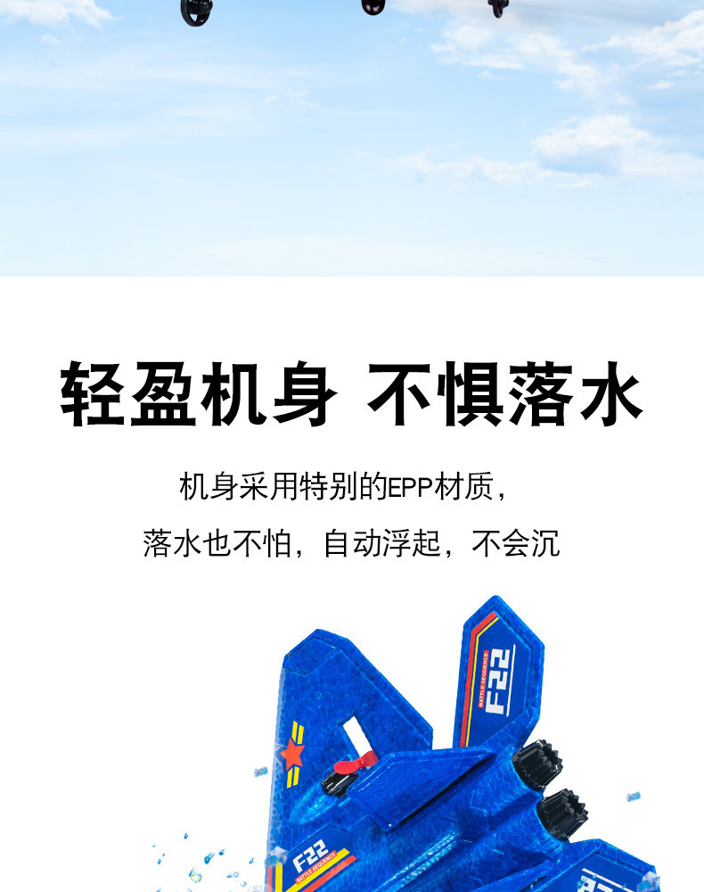 HW32遥控飞机男生 发光玩具 EPP泡沫海陆空3栖战斗机 F22滑翔飞机