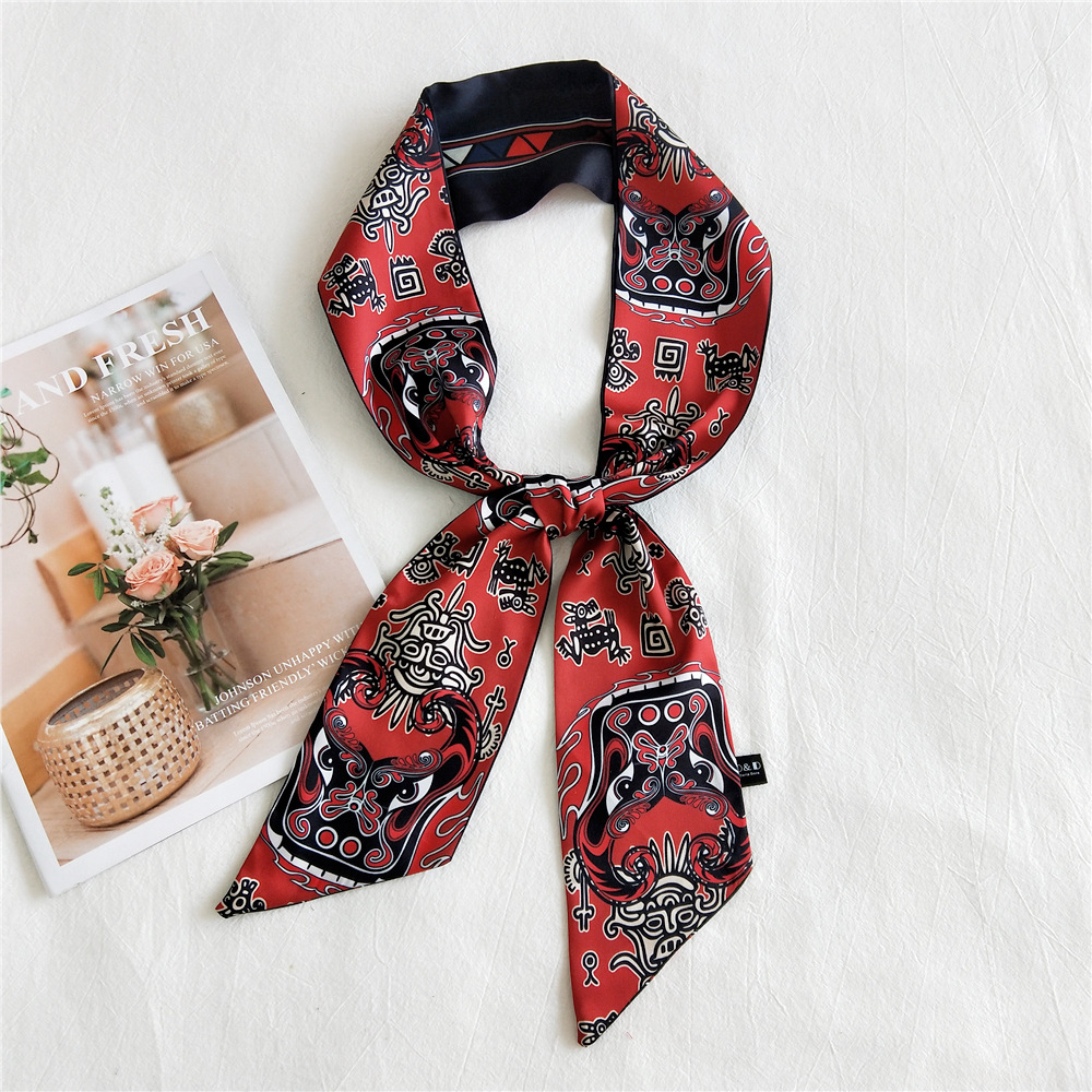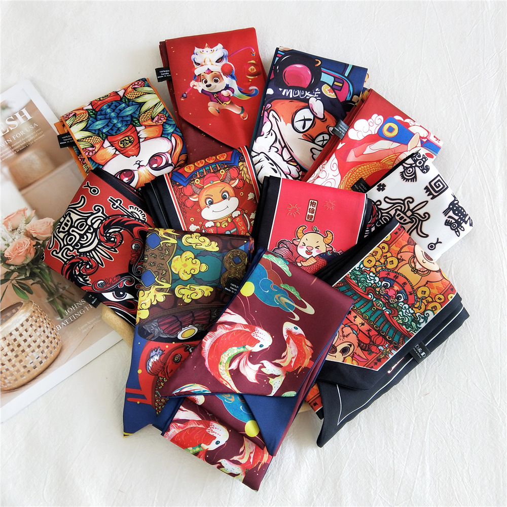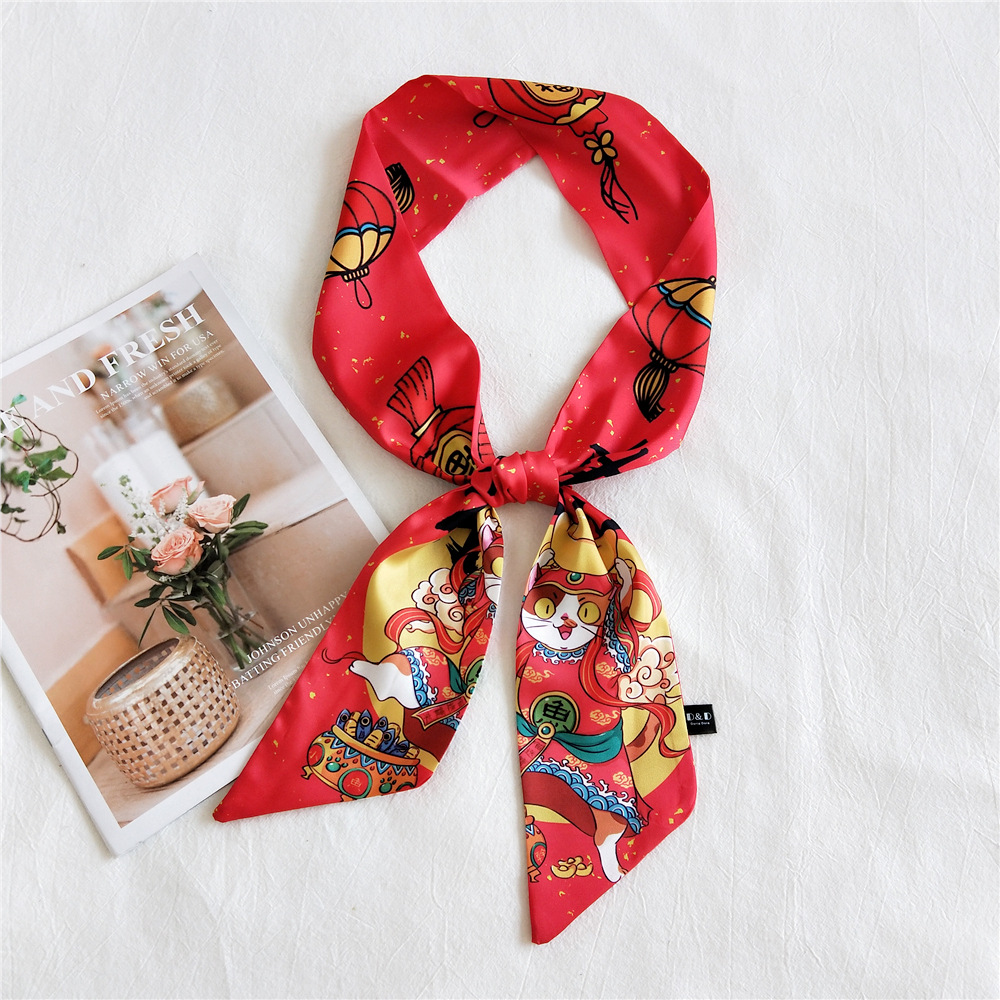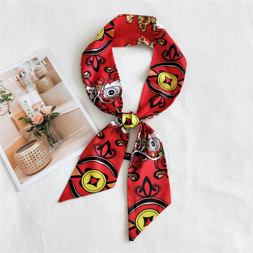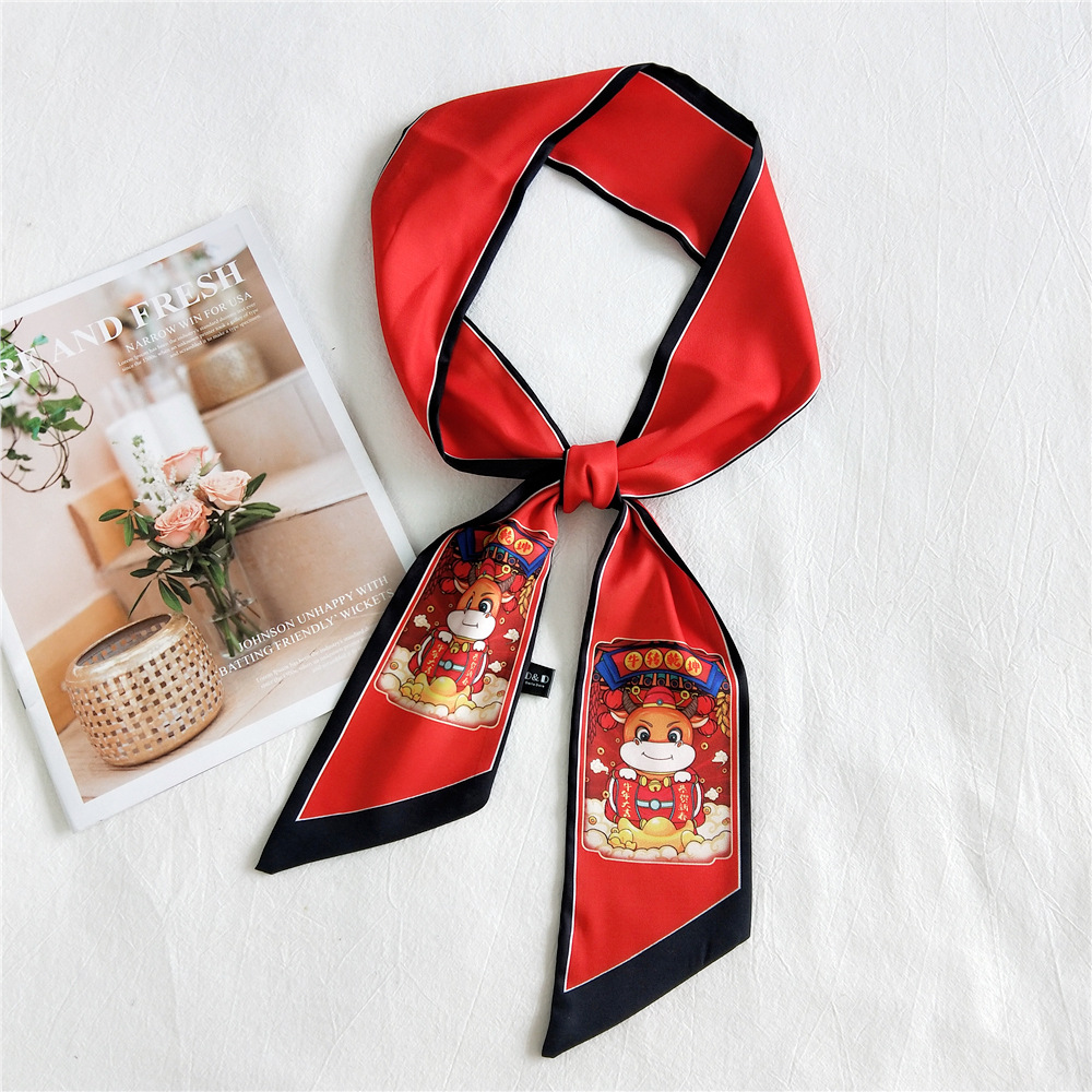 中国红喜庆双面斜角巾领巾丝巾女春秋手腕飘带包包腰带圣诞节日