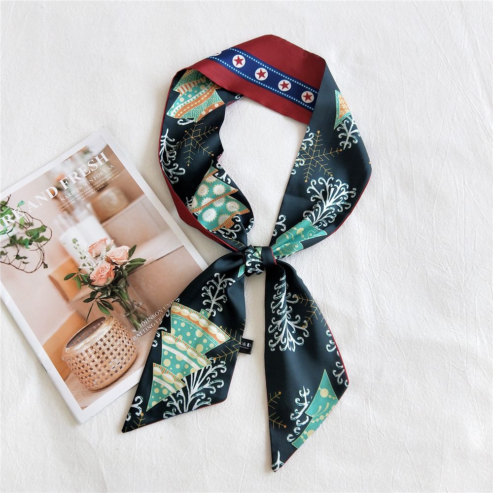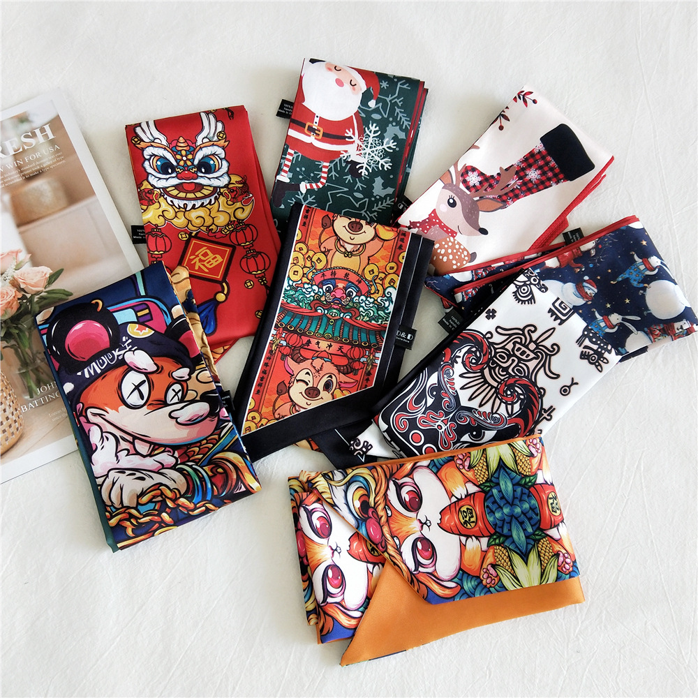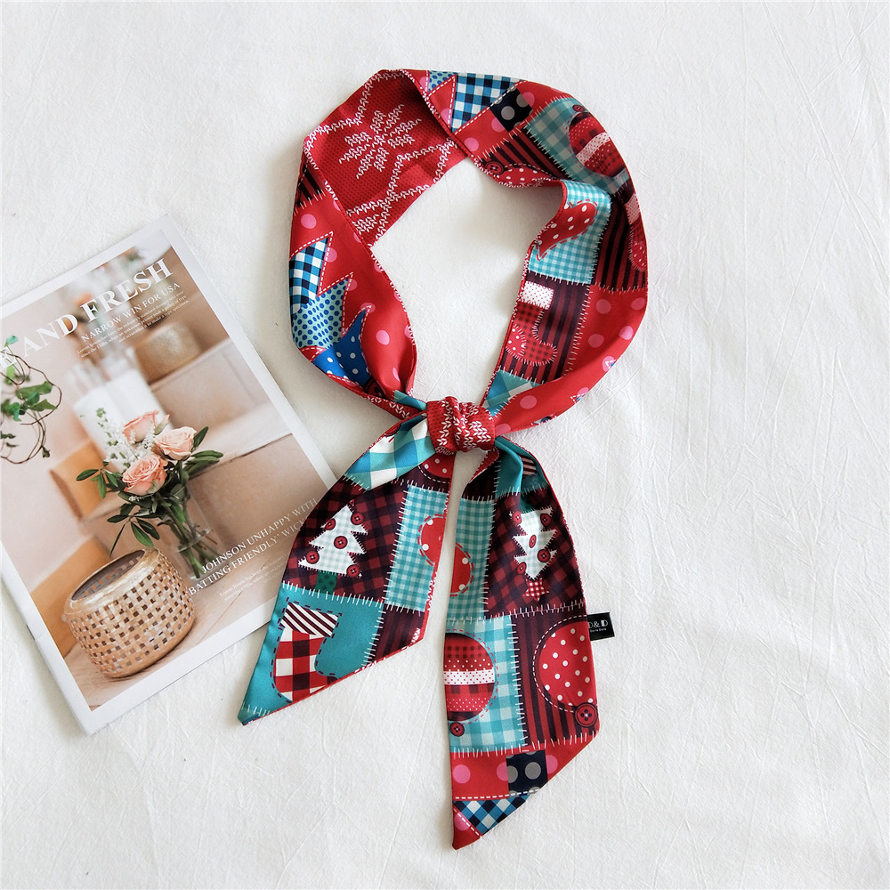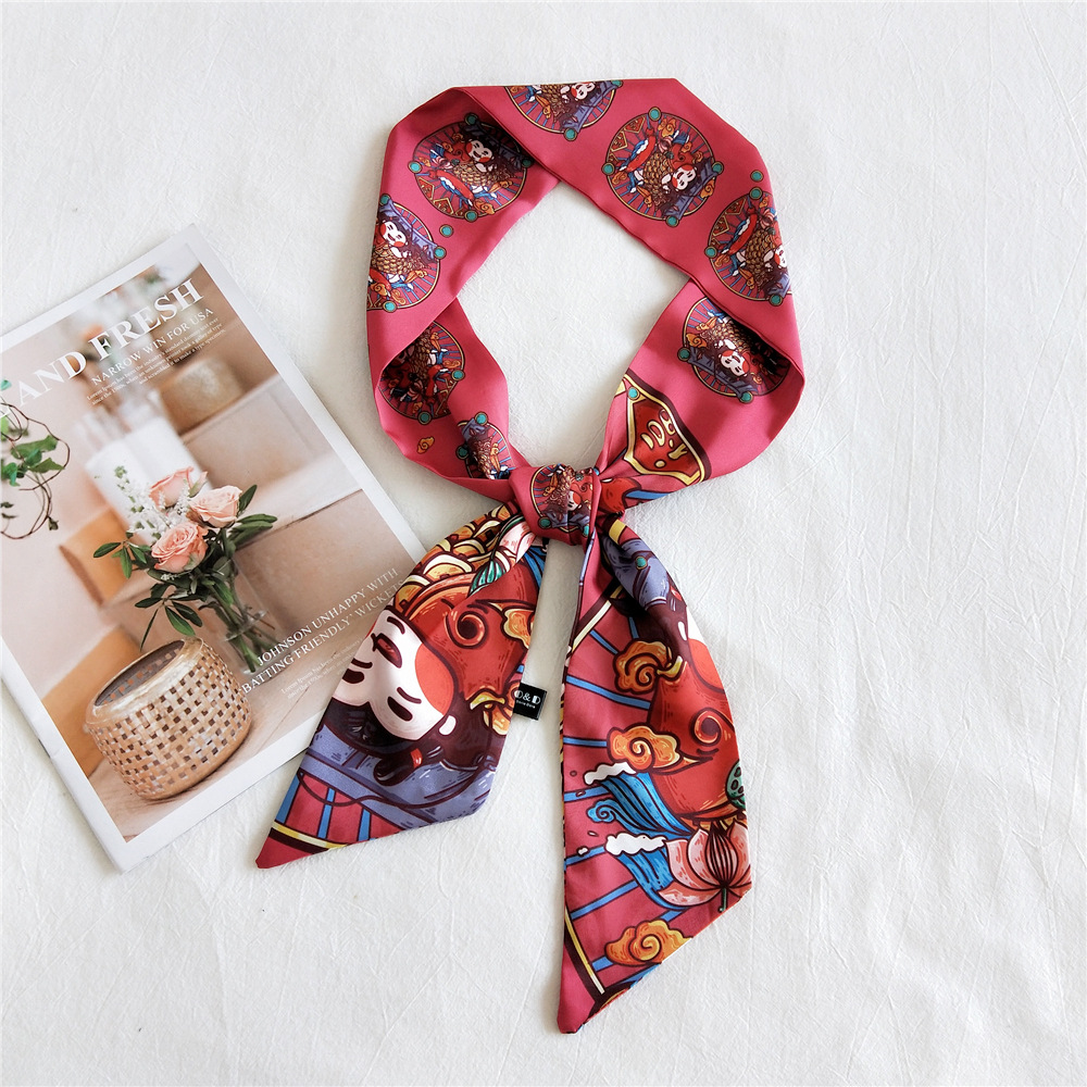 中国红喜庆双面斜角巾领巾丝巾女春秋手腕飘带包包腰带圣诞节日