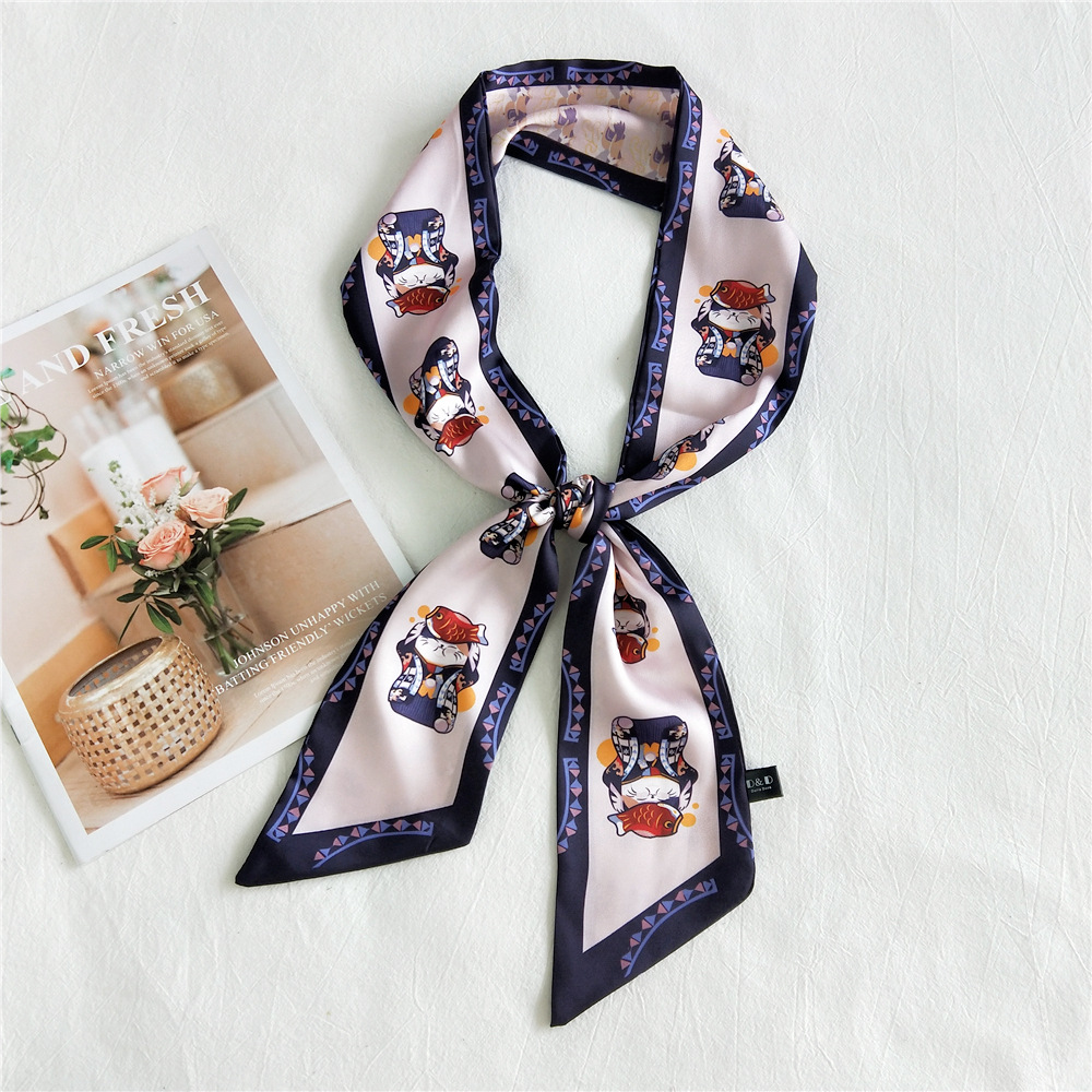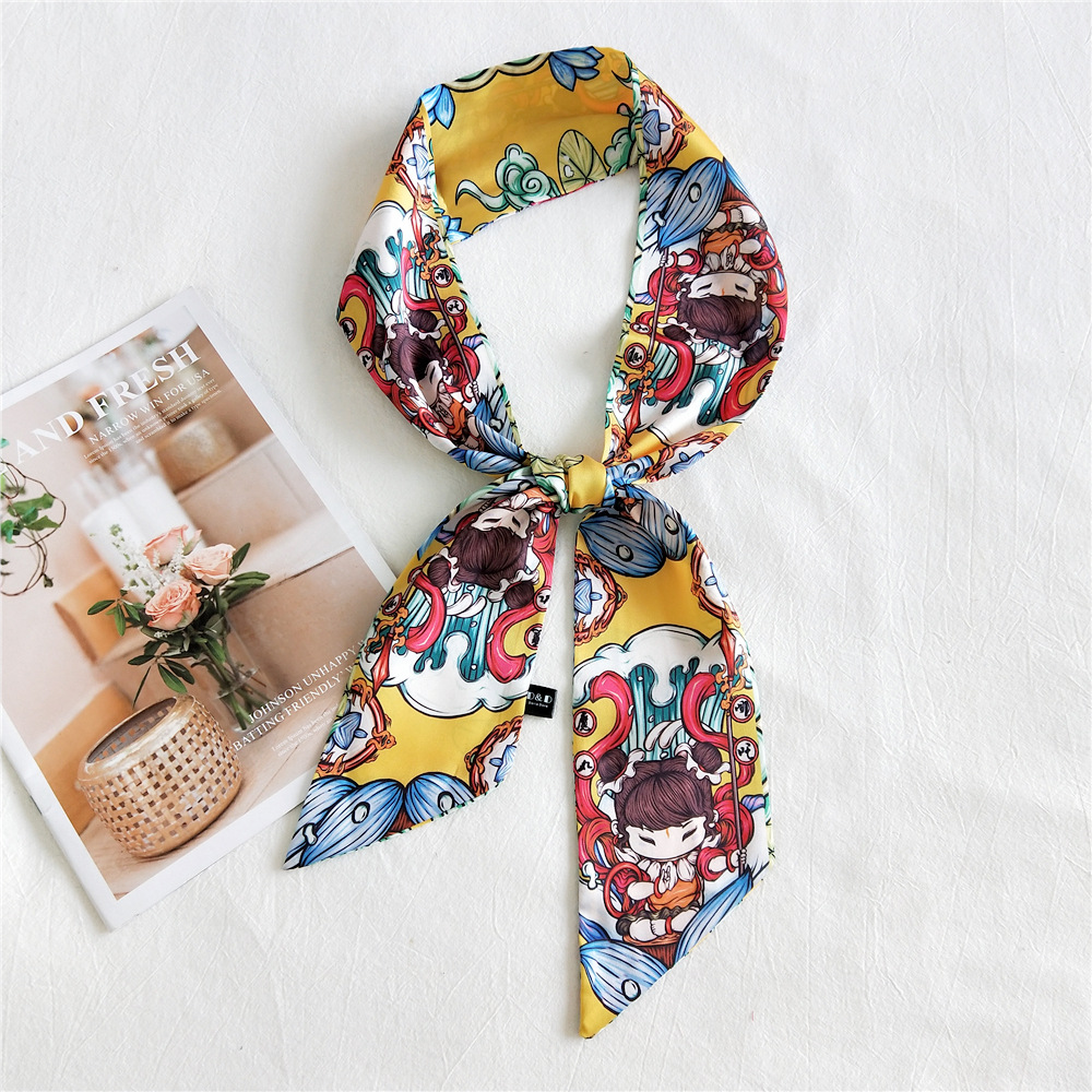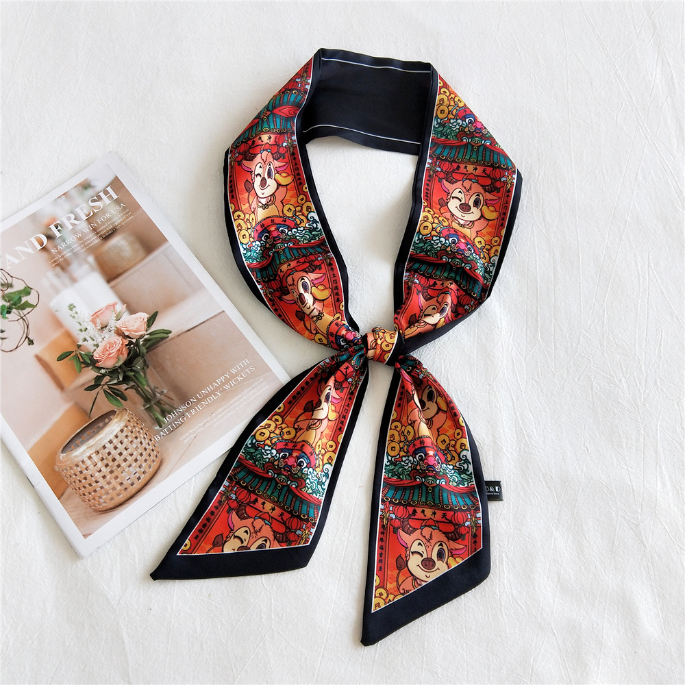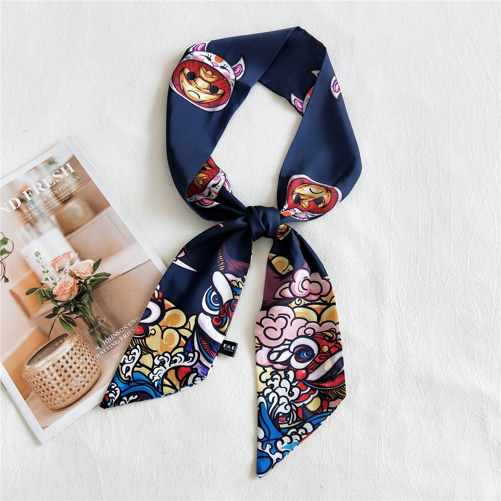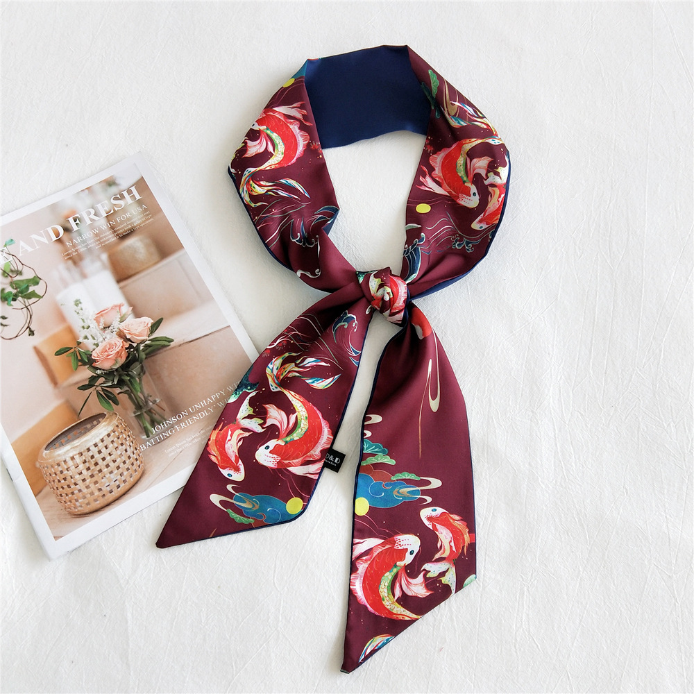 中国红喜庆双面斜角巾领巾丝巾女春秋手腕飘带包包腰带圣诞节日