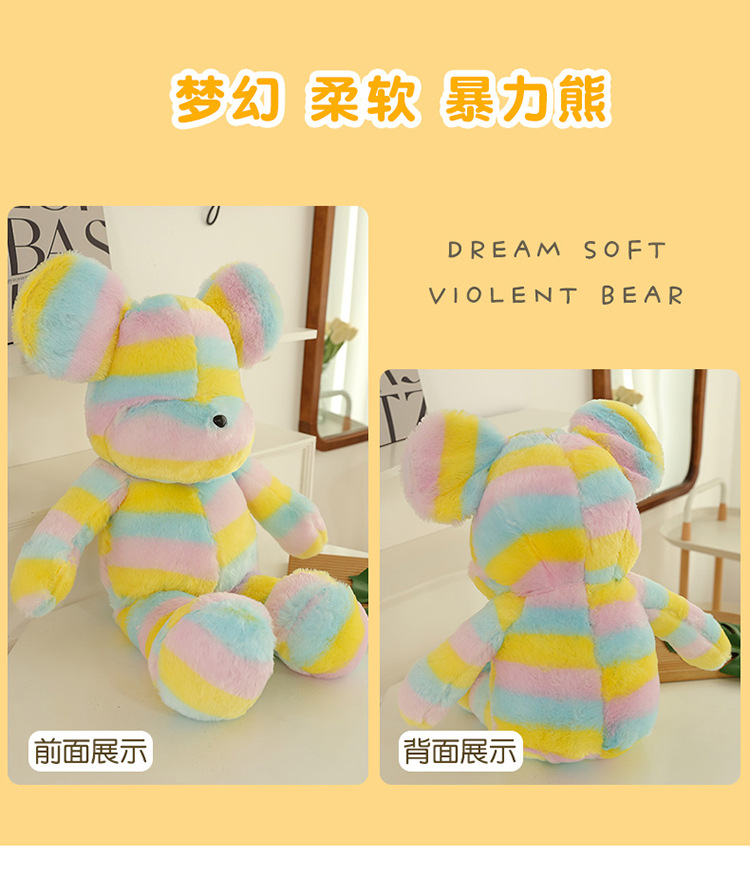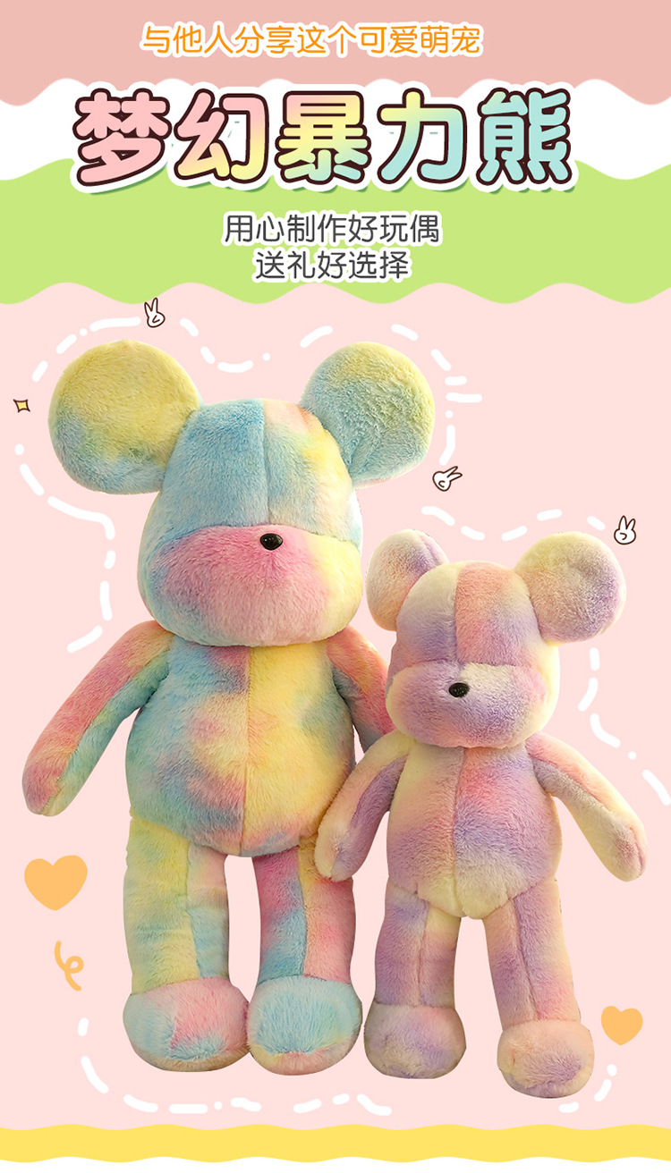 新款网红暴力炫彩熊毛绒玩具公仔软体大抱枕大号抱枕生日礼物批发