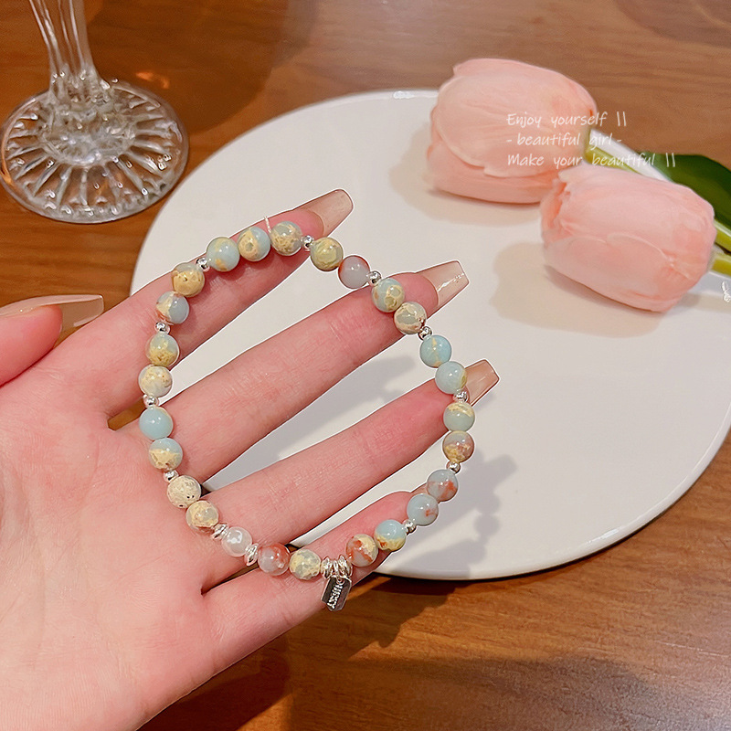 甜美可爱多巴胺气质水晶手饰品彩色串珠手串小众高级感珍珠手链女