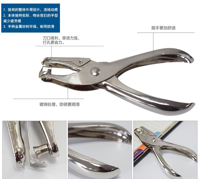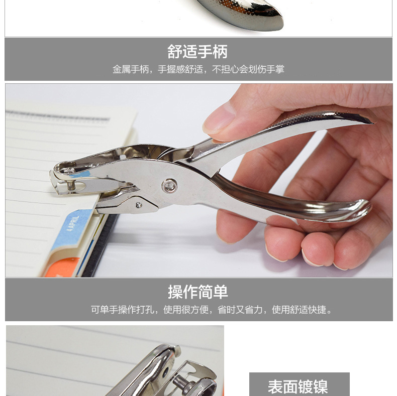批发手握式金属文具圆孔径6mm打孔钳 打洞器 纸张打孔机盒装 单孔