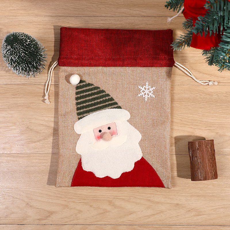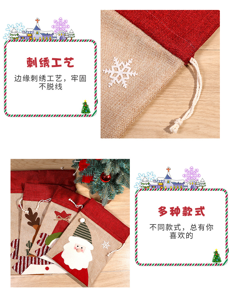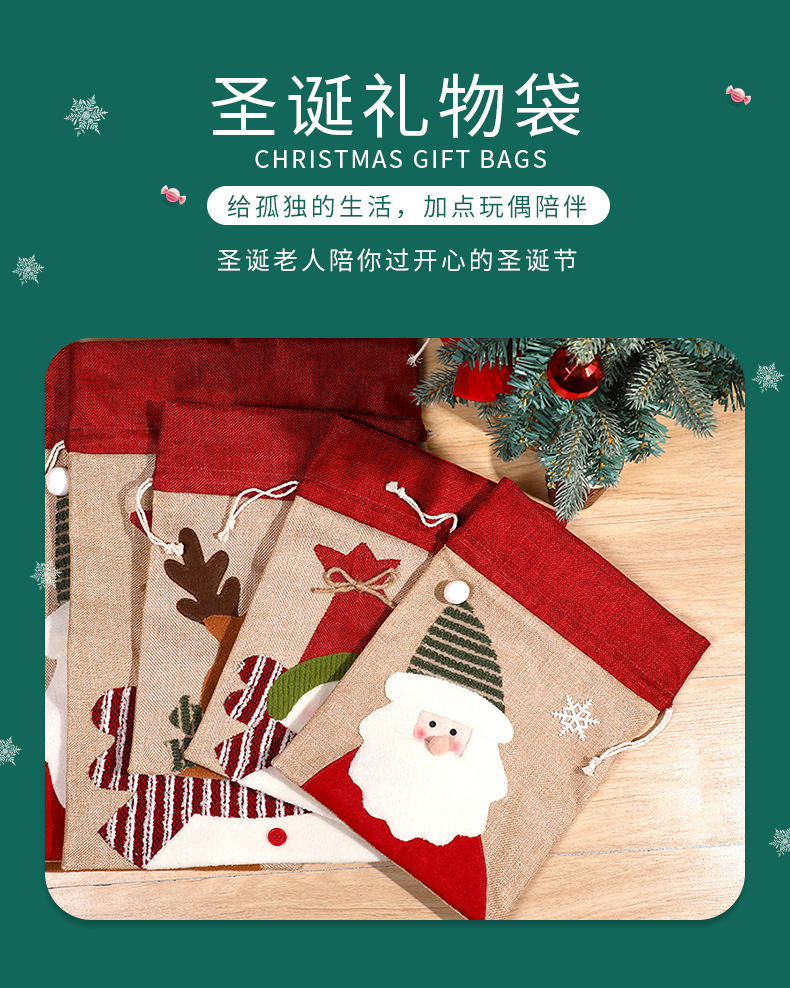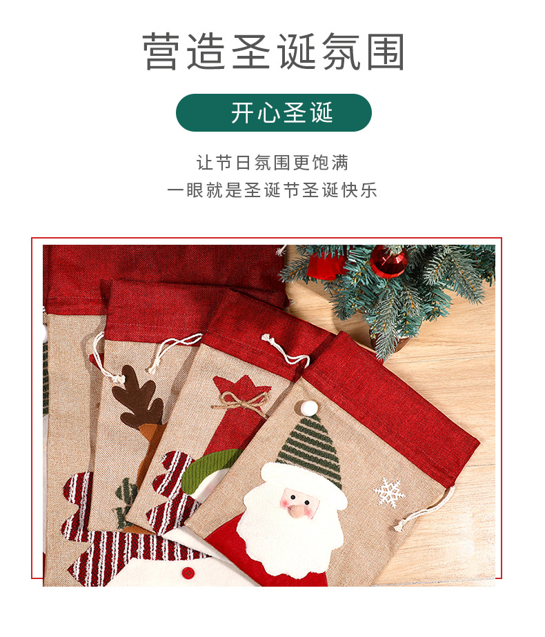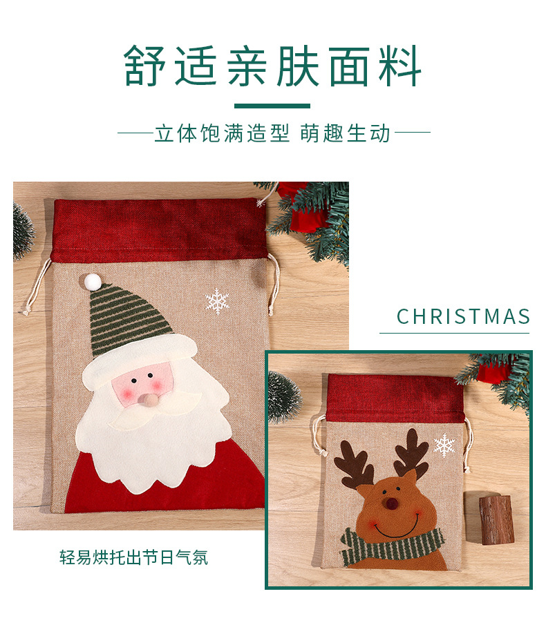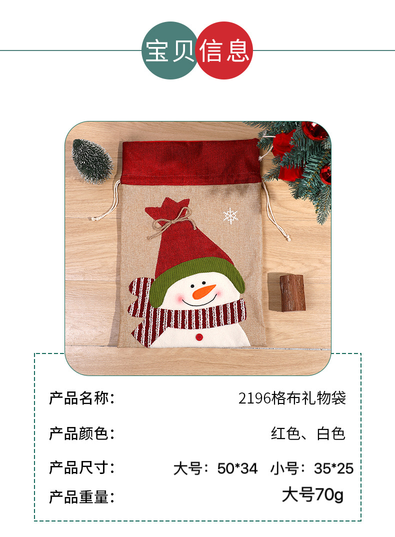 跨境圣诞雪人抽绳布袋子麋鹿糖果包装袋圣诞节挂件大小号礼品袋