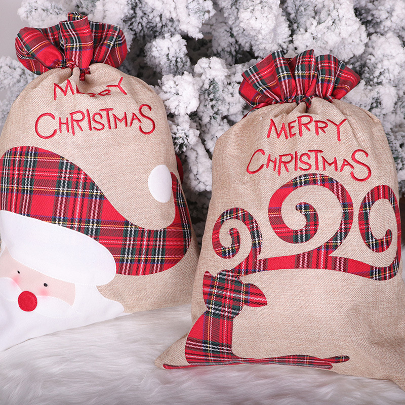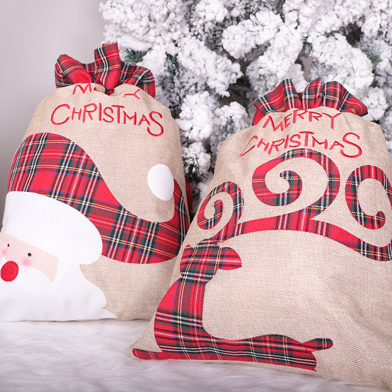 圣诞老人小鹿圣诞麻布礼物袋抽绳丝带束口糖果袋圣诞节装饰苹果袋