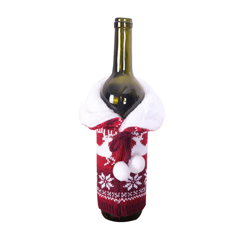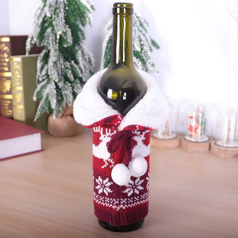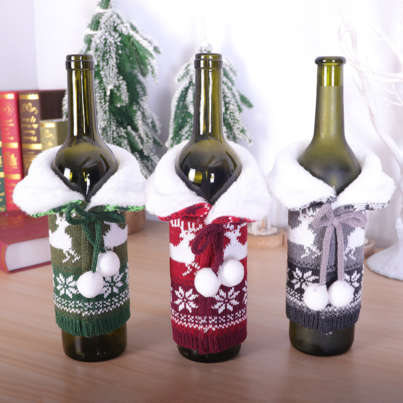 圣诞节装饰用品酒瓶套 多色可选香槟红酒套 麋鹿针织毛绒酒瓶套