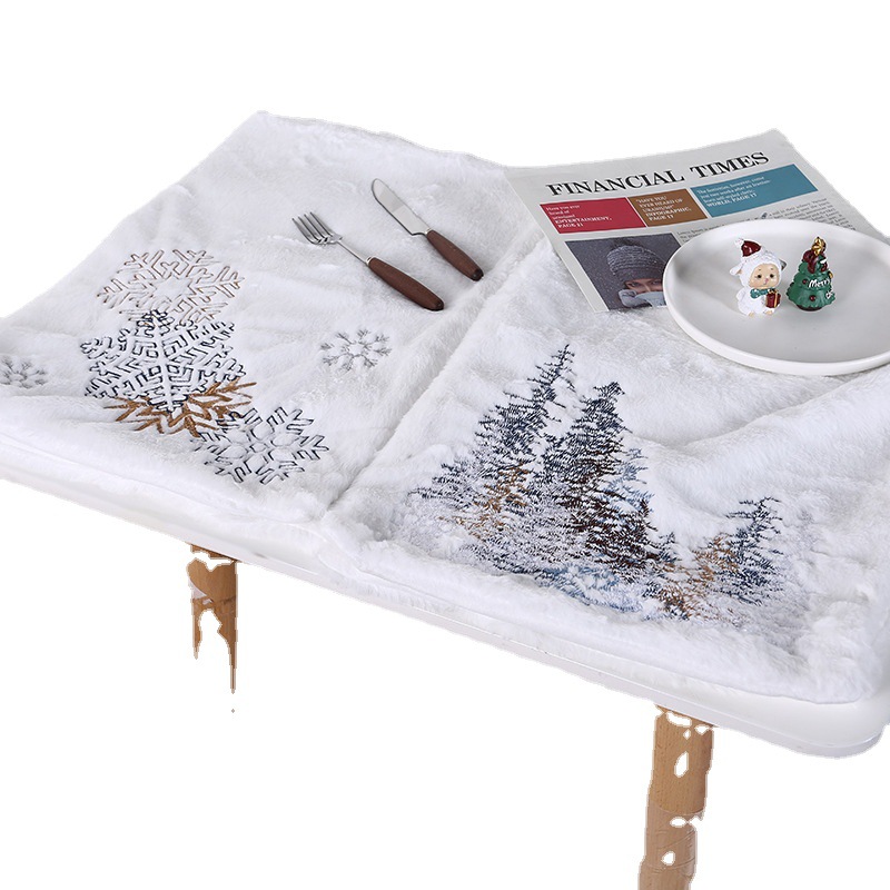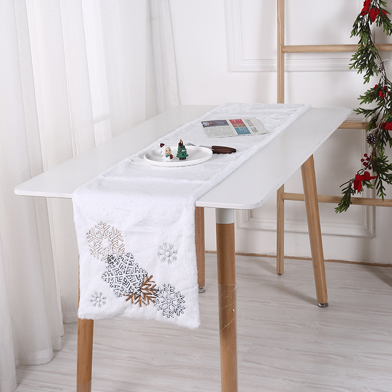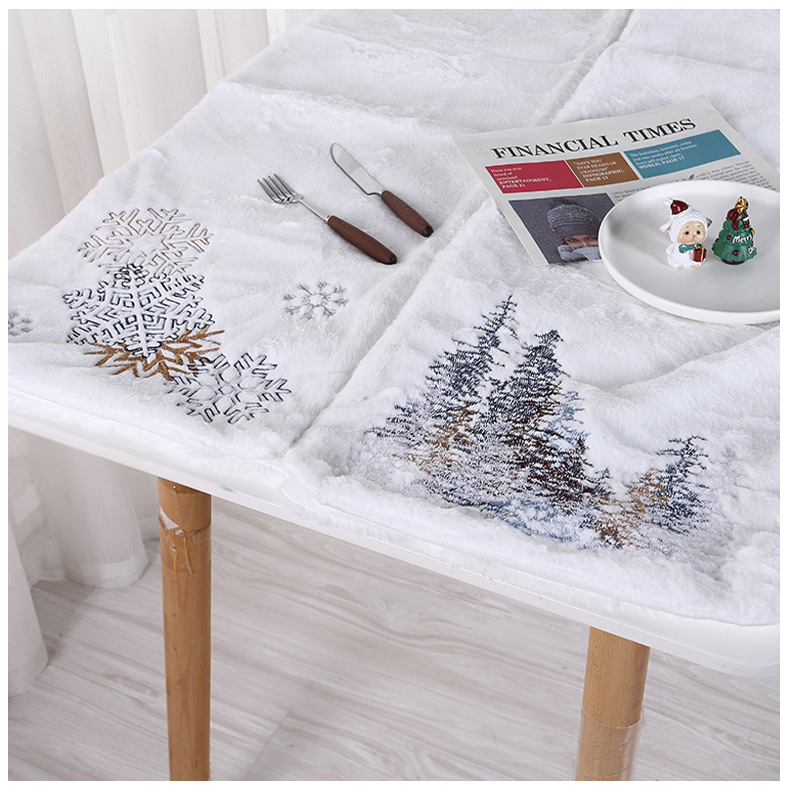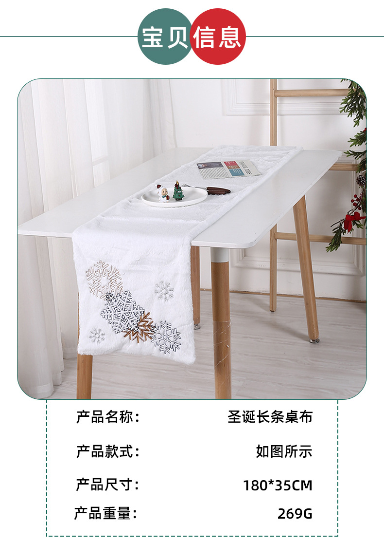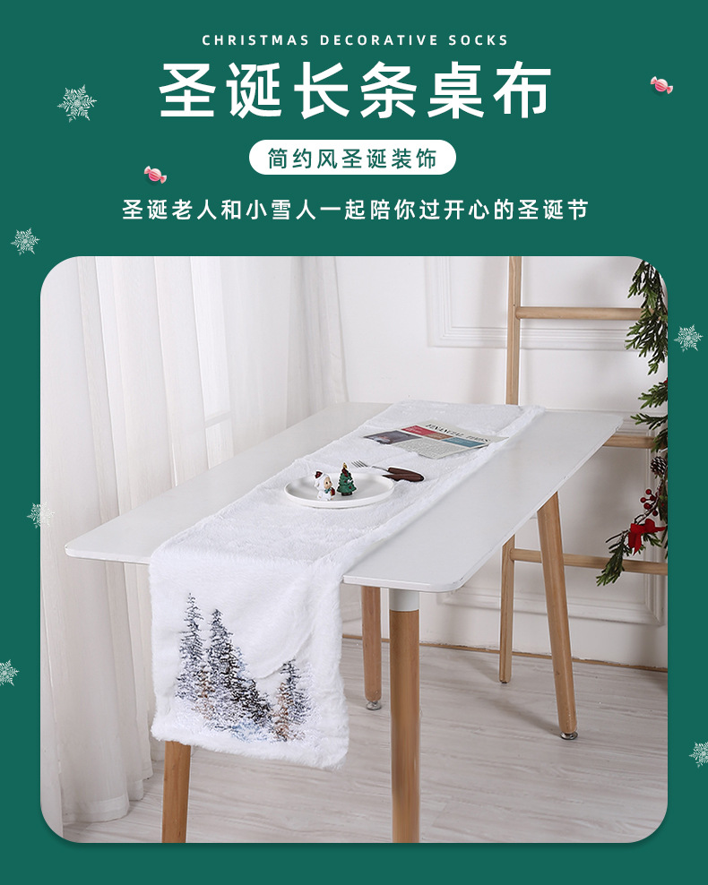 亚马逊新款圣诞节桌旗毛绒桌布餐厅聚餐派对节日装饰桌布