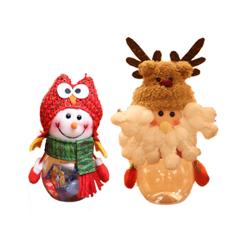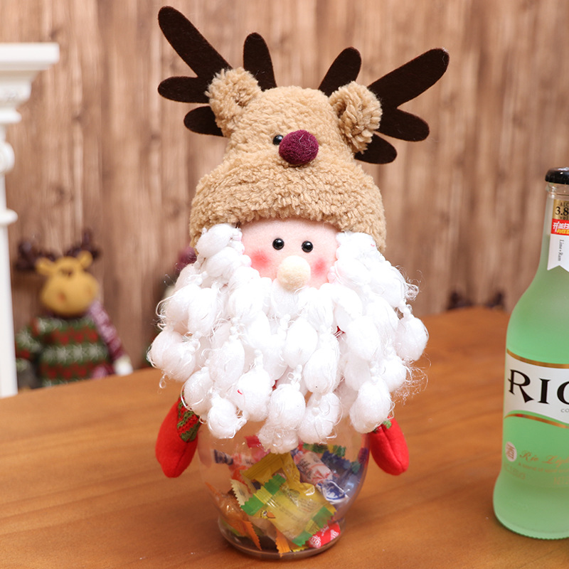 厂家直销圣诞节麋鹿毛绒帽塑料糖果礼盒橱窗摆件创意礼物糖果罐