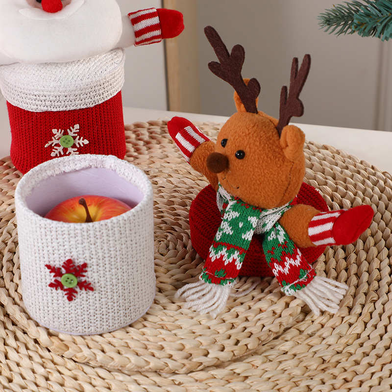 创意圣诞节氛围感针织毛绒苹果礼盒 麋鹿圣诞老人公仔平安果盒