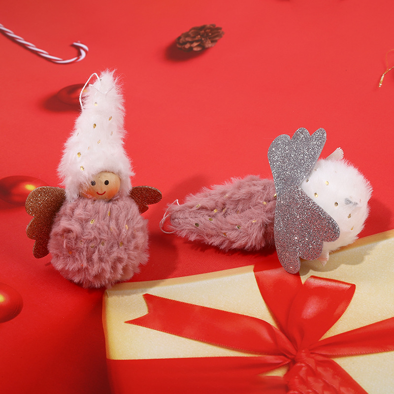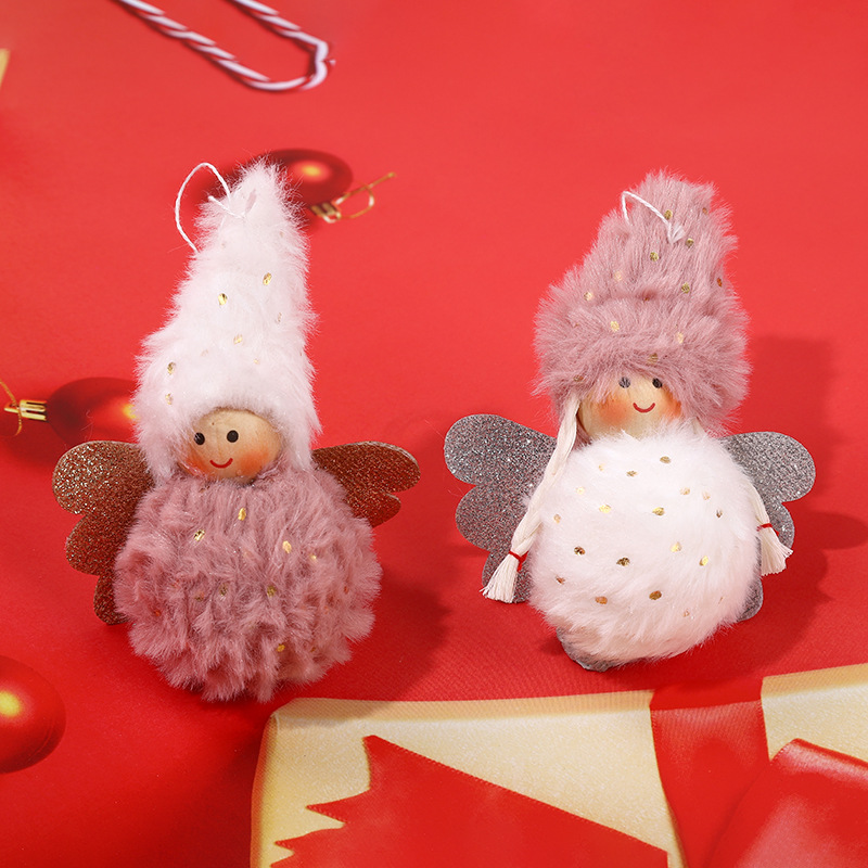 新款毛绒天使圣诞节装饰品 圣诞树氛围感挂件 圣诞节场景布置道具