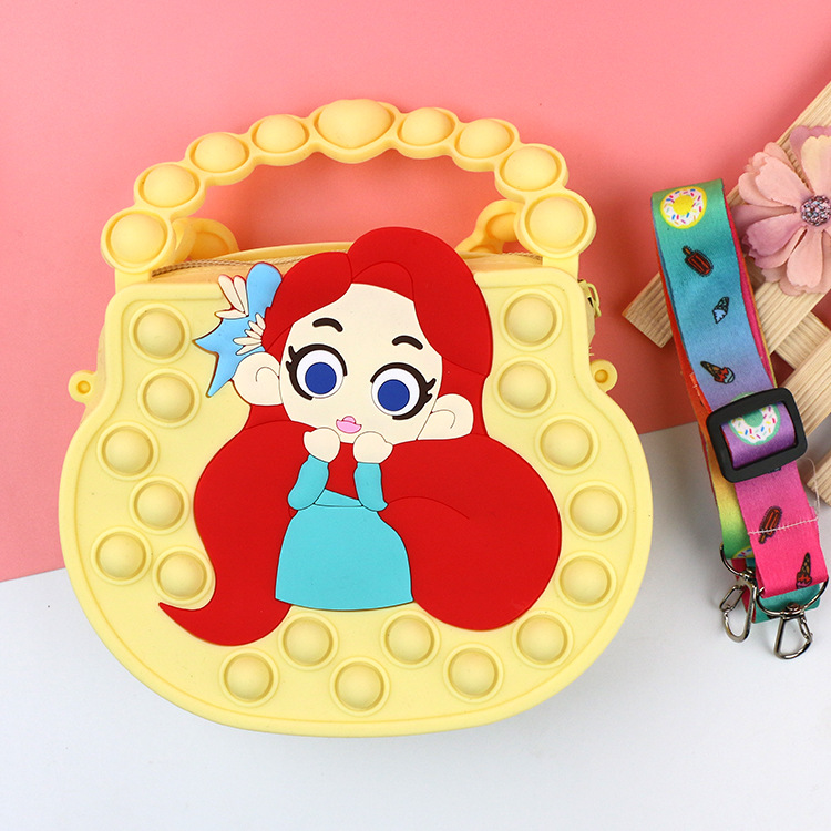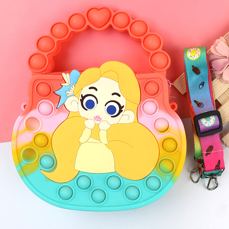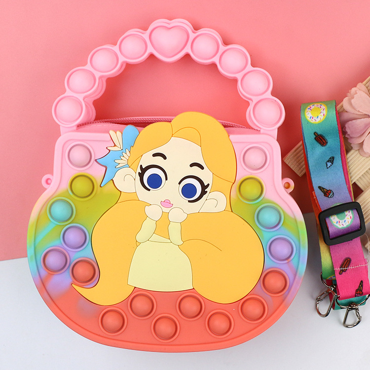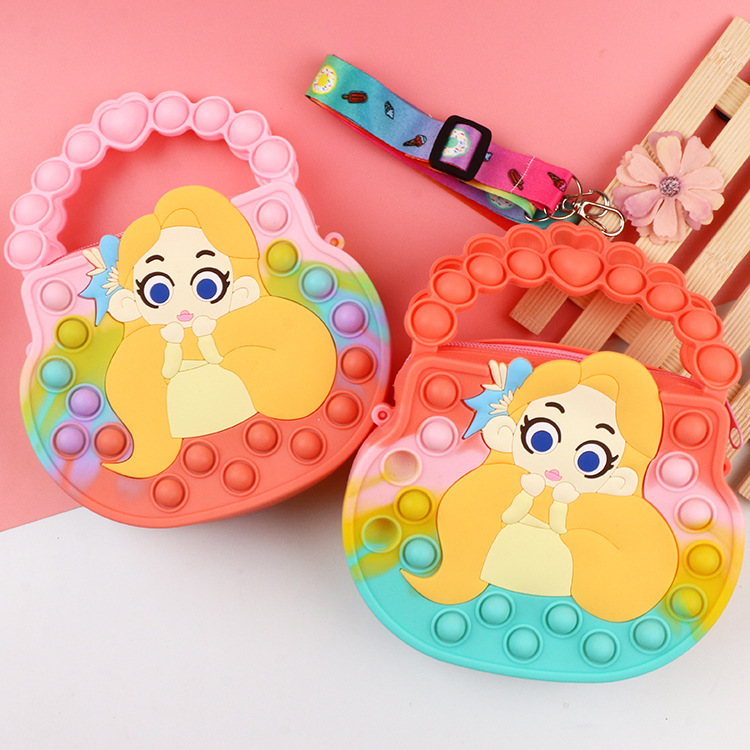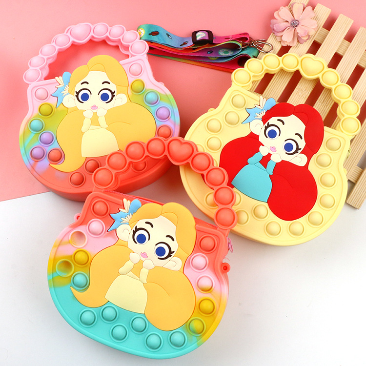 新款硅胶包包卡通公主零钱包硅胶斜挎儿童解压泡泡乐硅胶包包