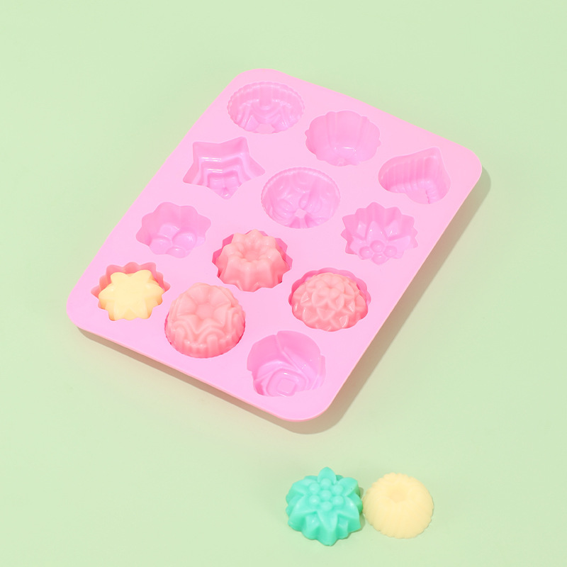 12孔硅胶蛋糕模花草布丁果冻模DIY手工肥皂模冰模