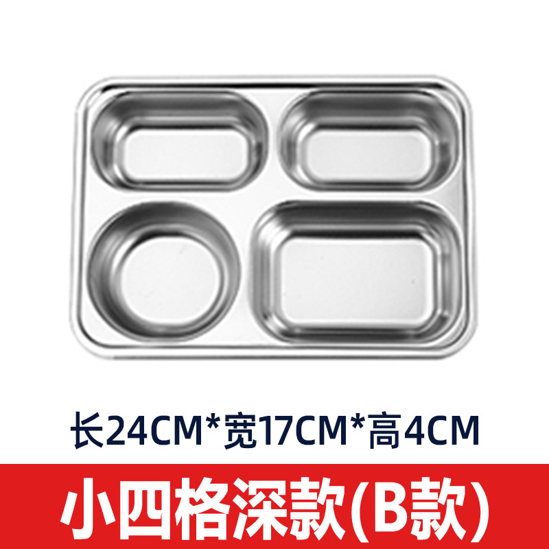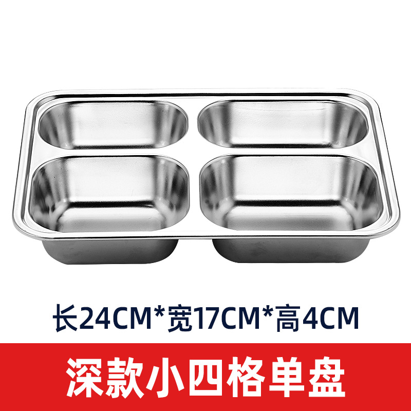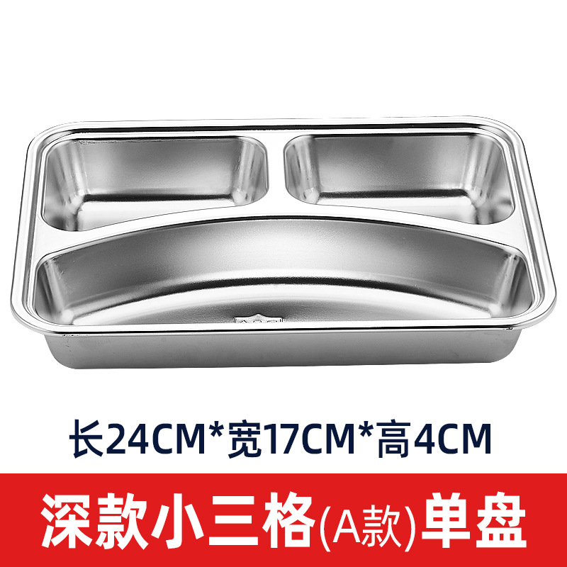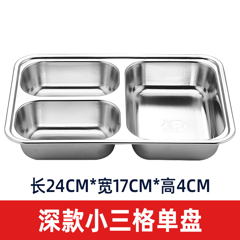 304不锈钢餐盘 成人儿童食堂方形分格餐盒加深加厚带盖饭盘快餐盘