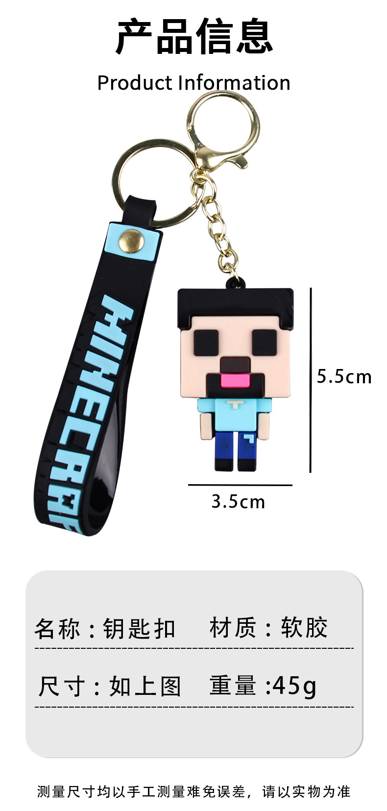 我的世界软胶钥匙扣挂件钥匙链汽车挂饰卡通玩偶pvc公仔Minecraft