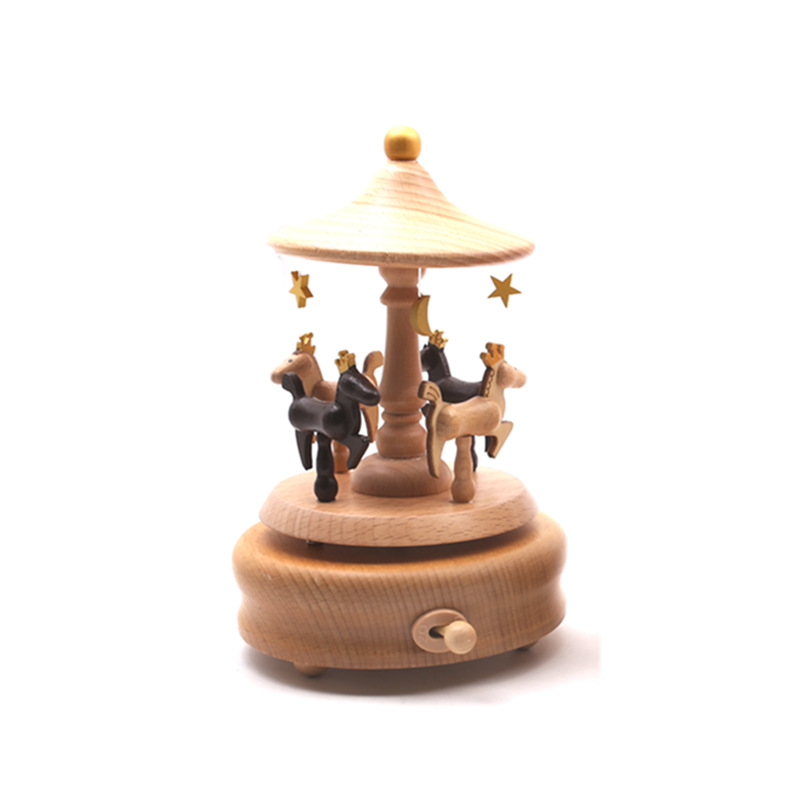 旋转木马八音盒木质音乐盒摆件小女孩生日创意礼品手工木制八音盒