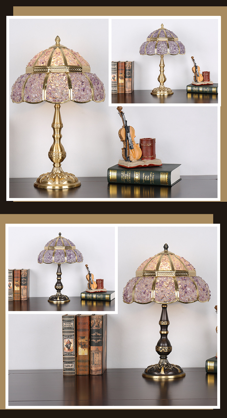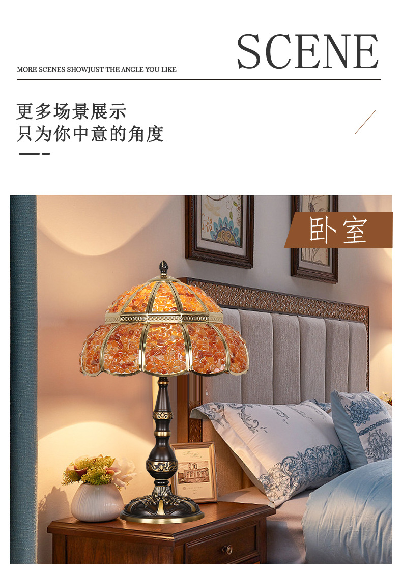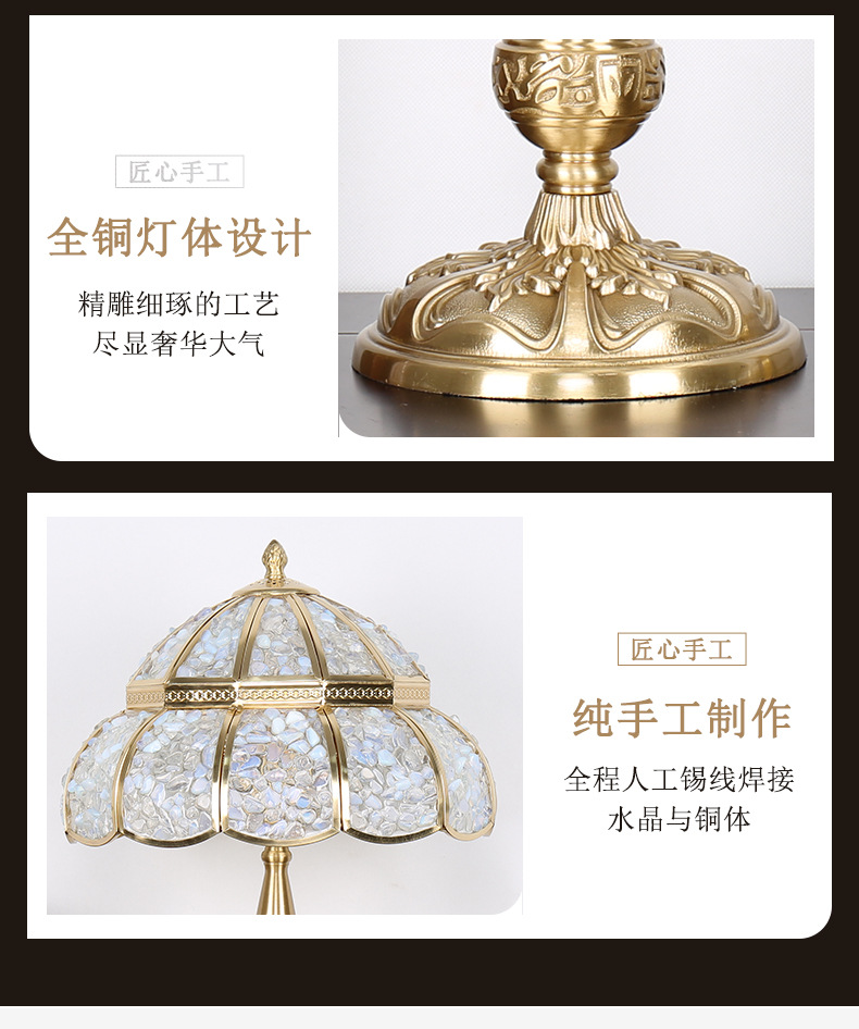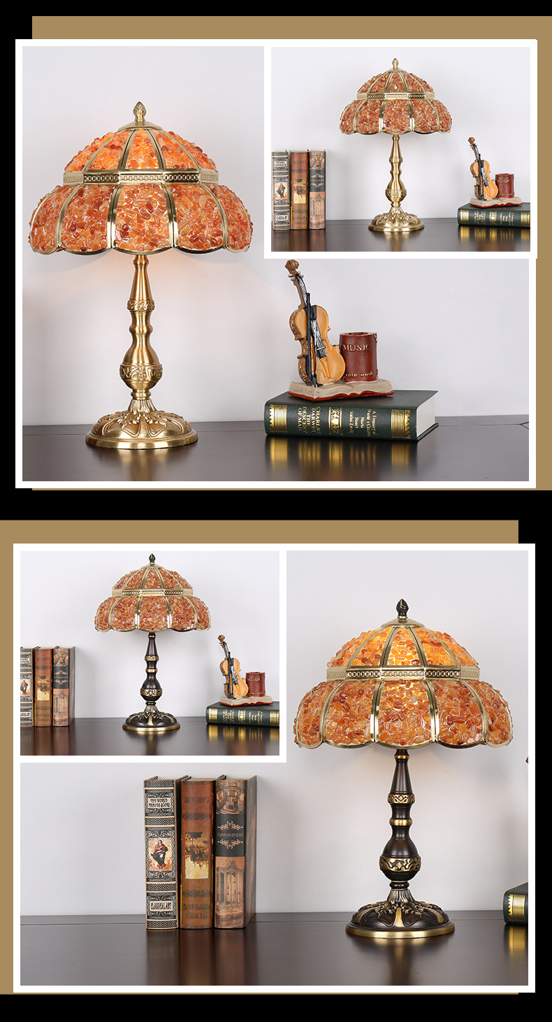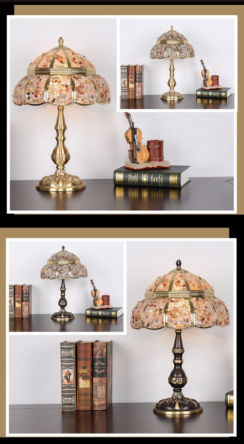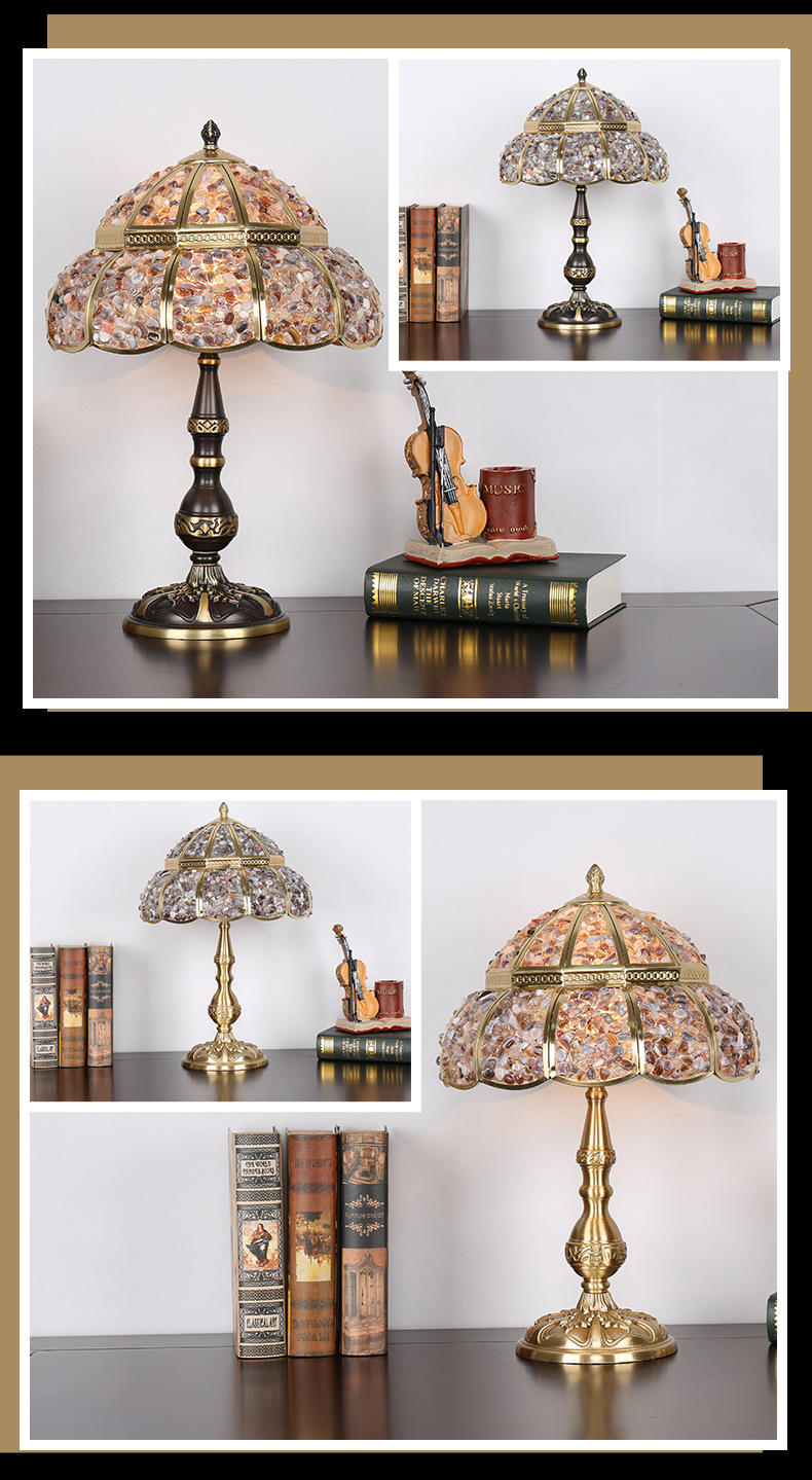 外贸专供轻奢台灯天然玛瑙纯铜台灯新婚床头灯书房咖啡厅双层台灯