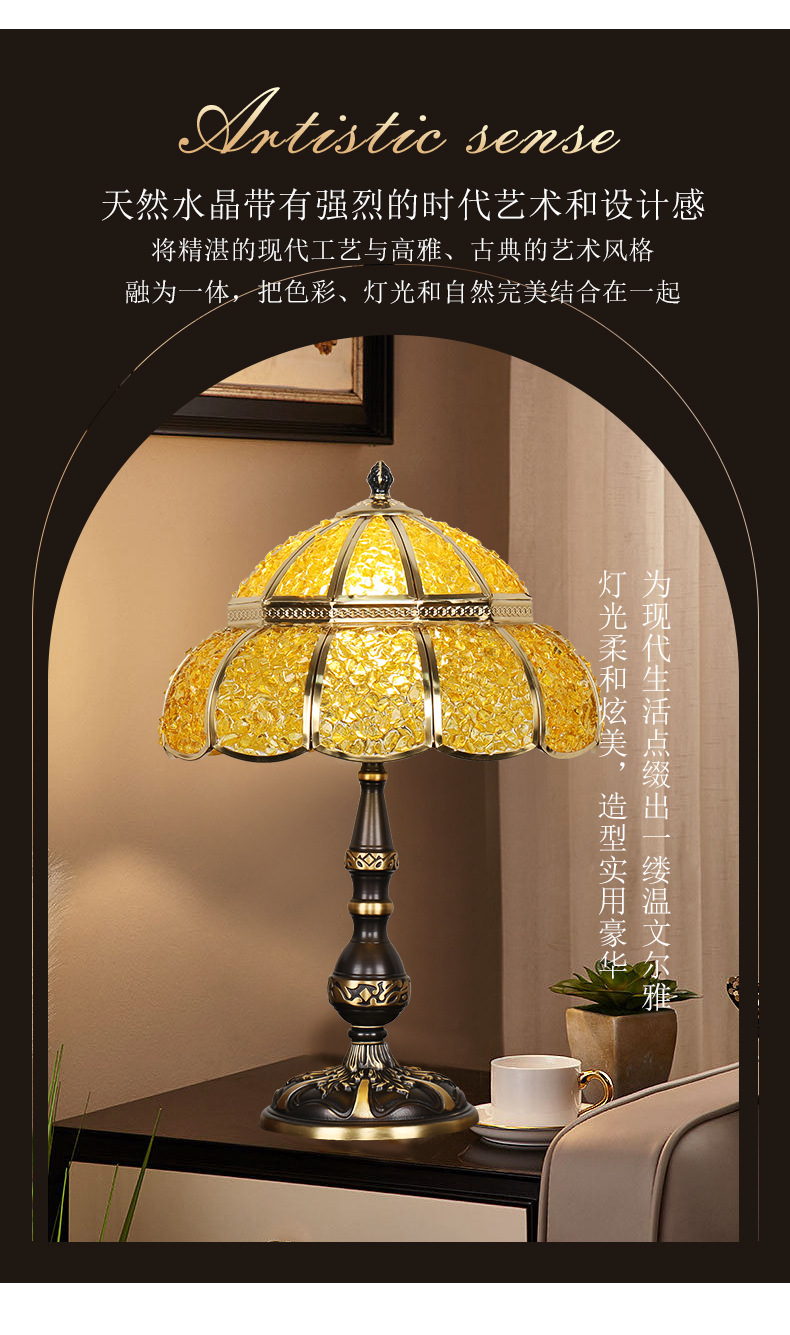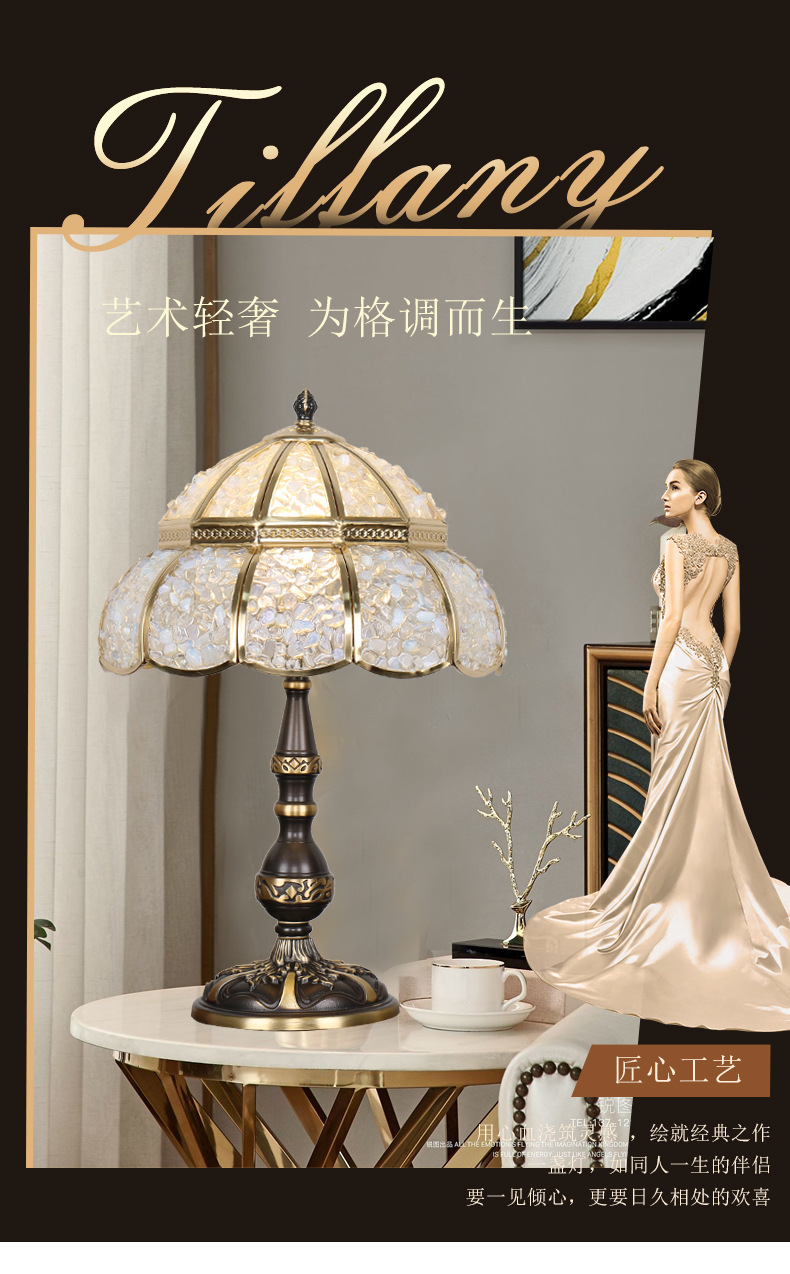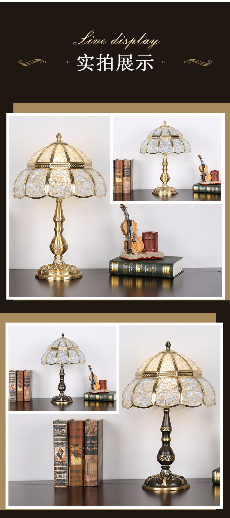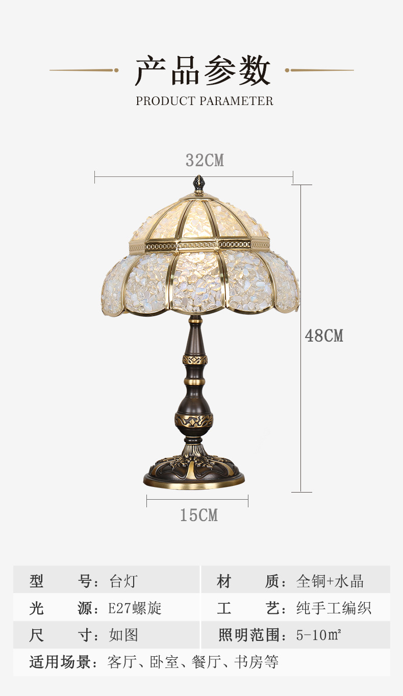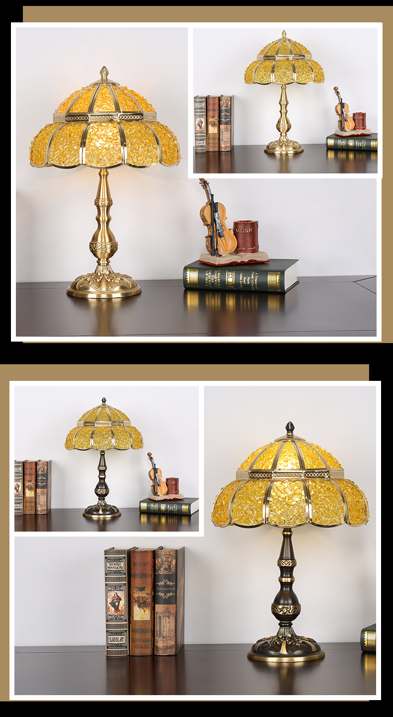 外贸专供轻奢台灯天然玛瑙纯铜台灯新婚床头灯书房咖啡厅双层台灯