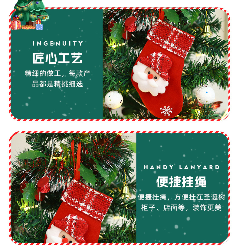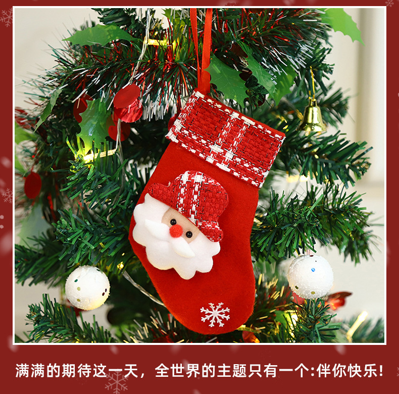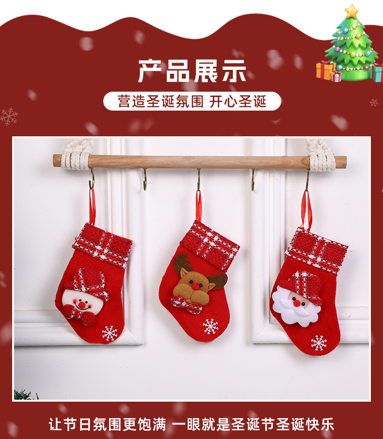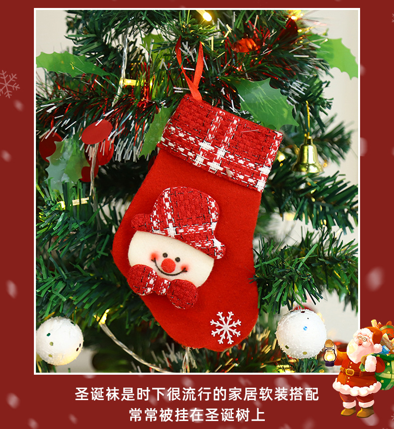 圣诞节装饰小袜子 卡通麋鹿雪人袜子礼品袋 圣诞树装饰糖果袋现货