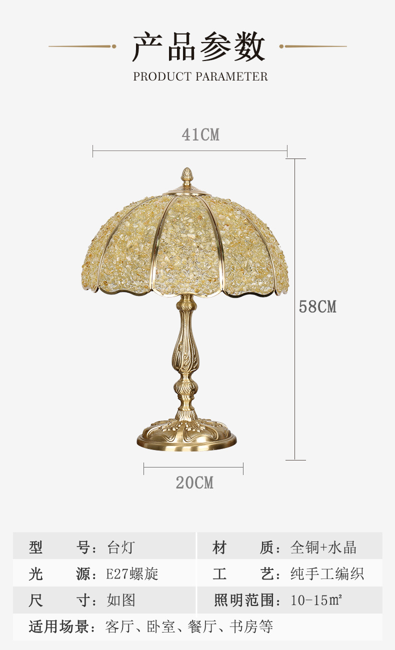 外贸专供轻奢台灯床头灯客厅书房咖啡厅灯纯铜创意新婚奢华台灯