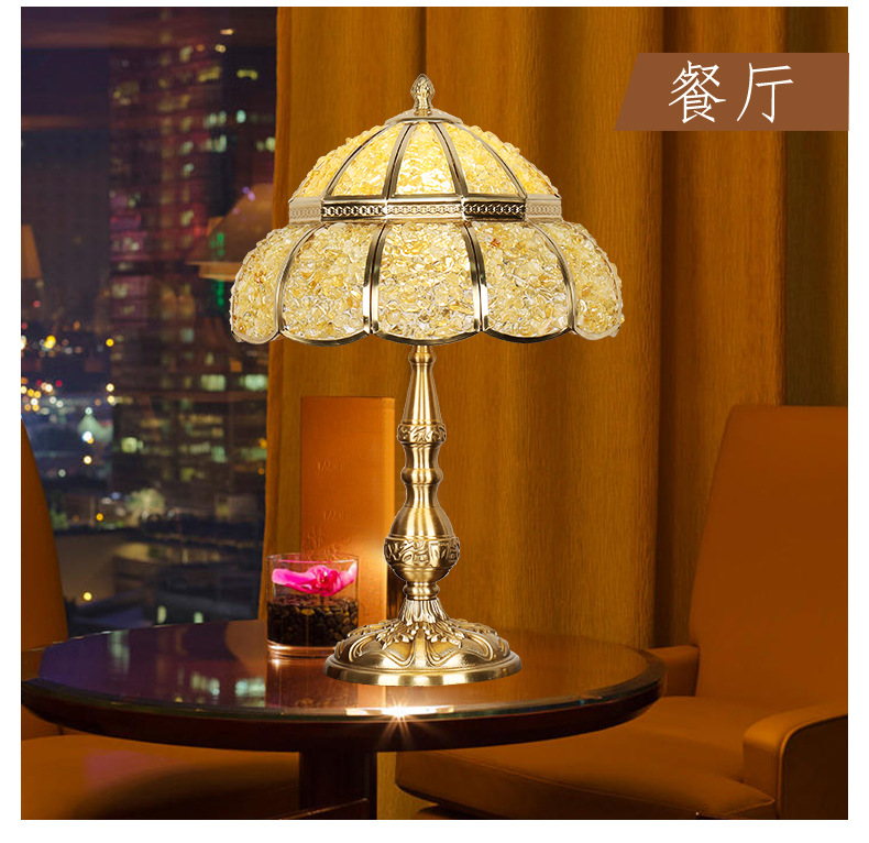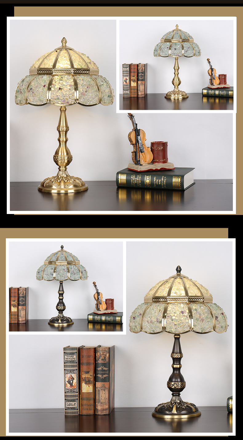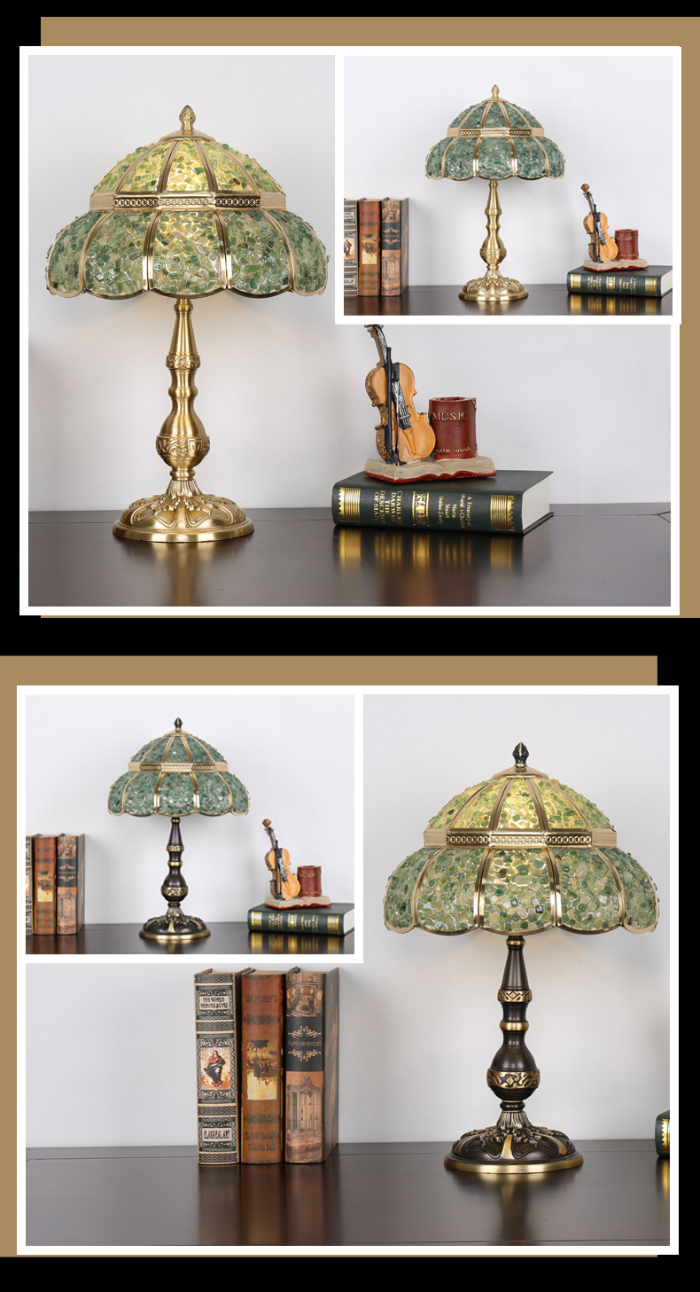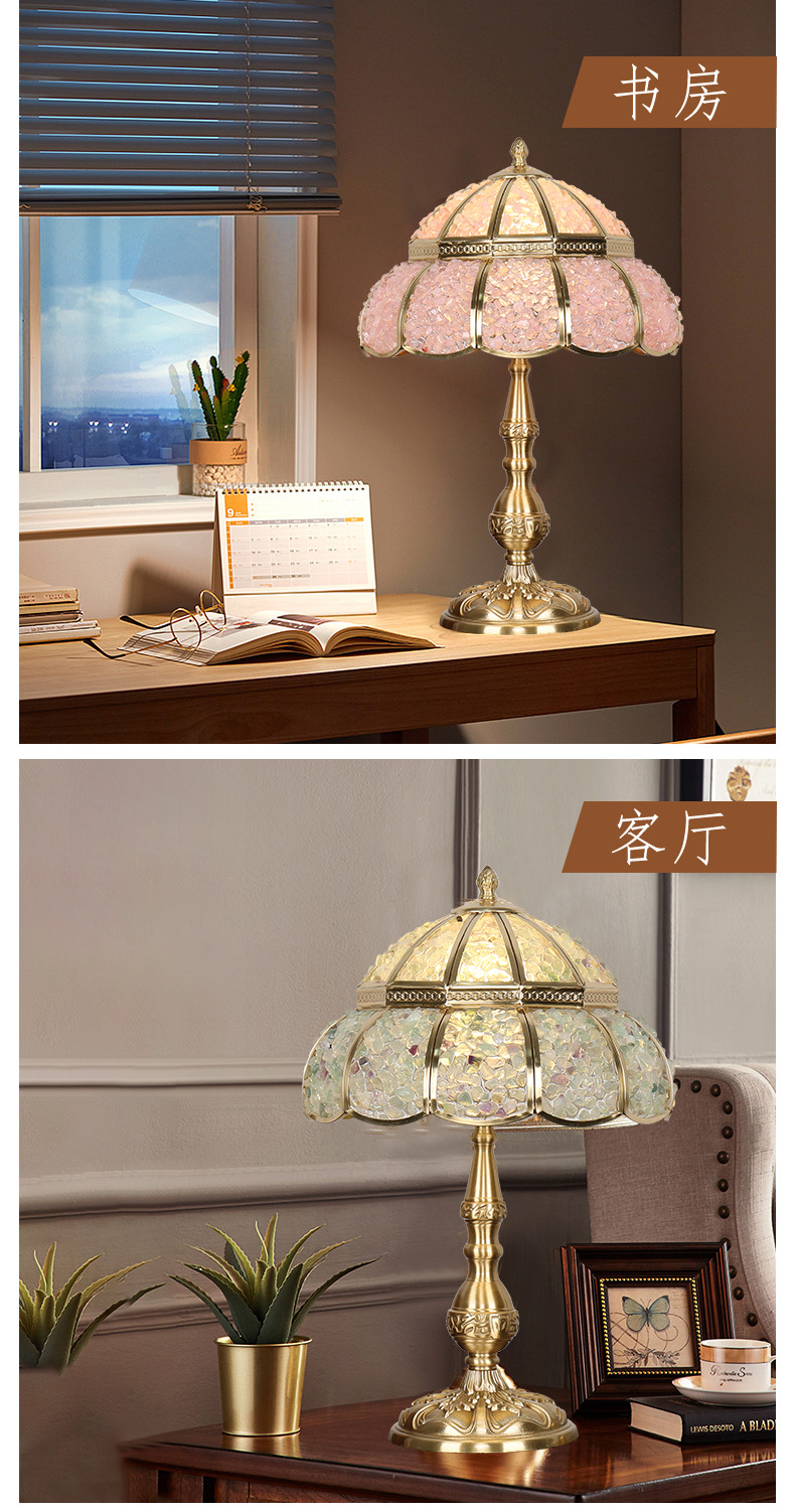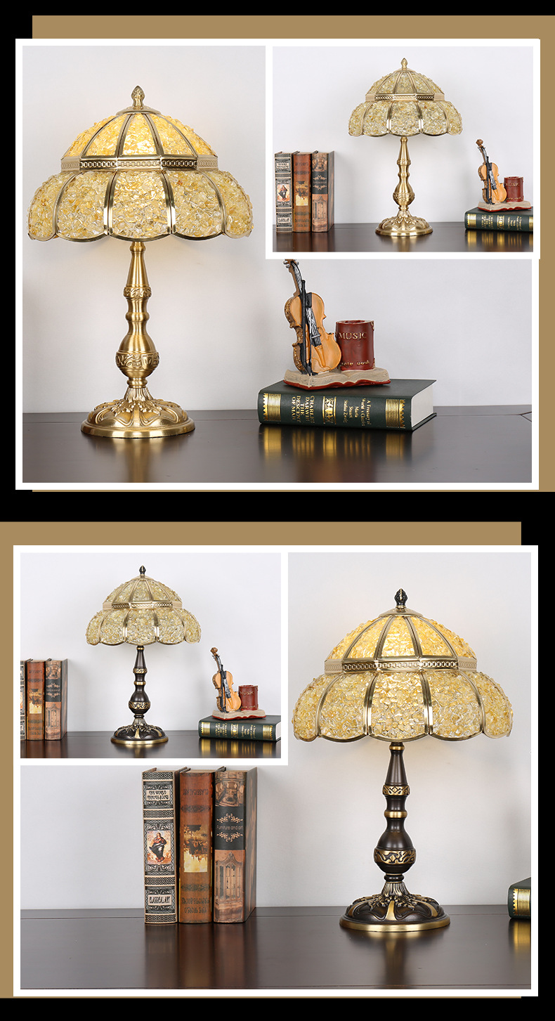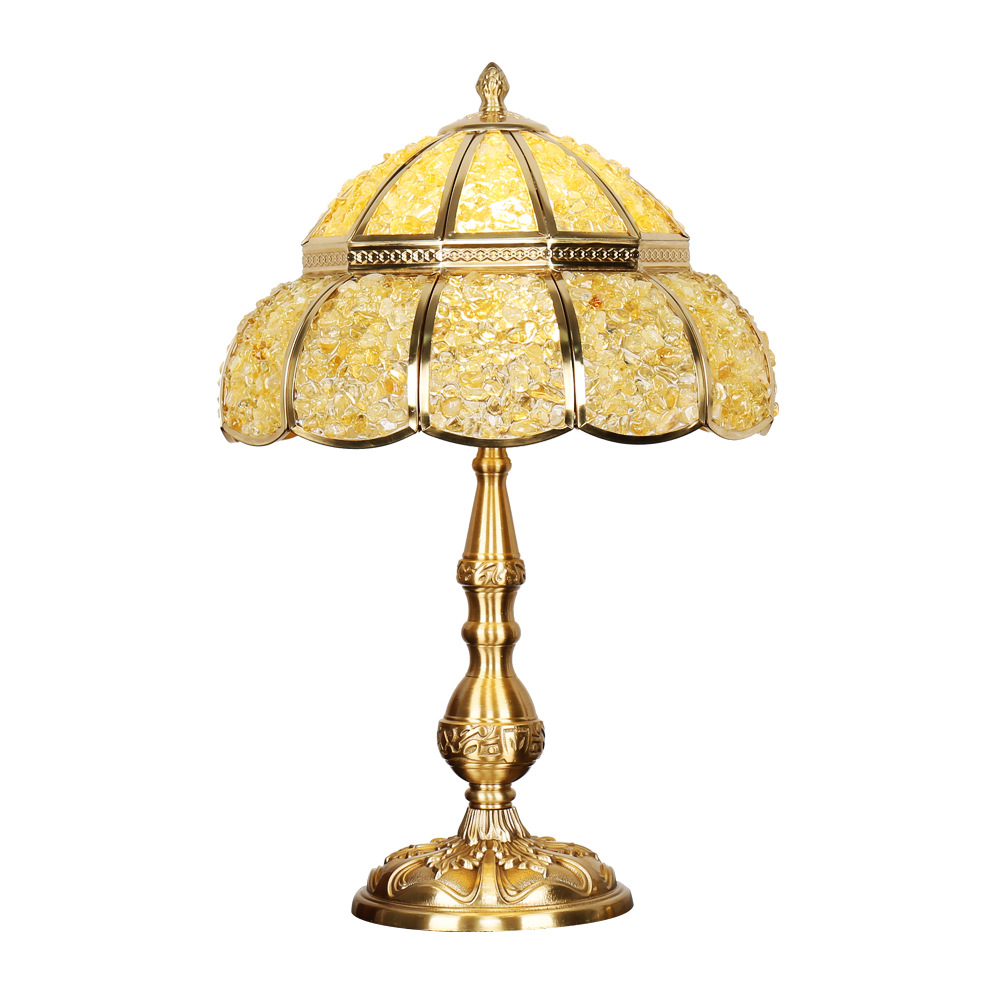外贸专供简约台灯天然玛瑙纯铜台灯新婚床头灯书房厅双层台灯