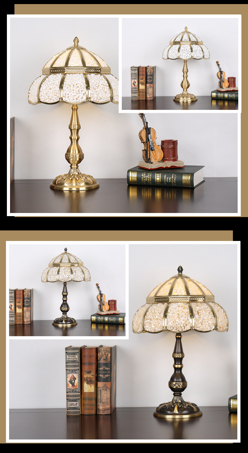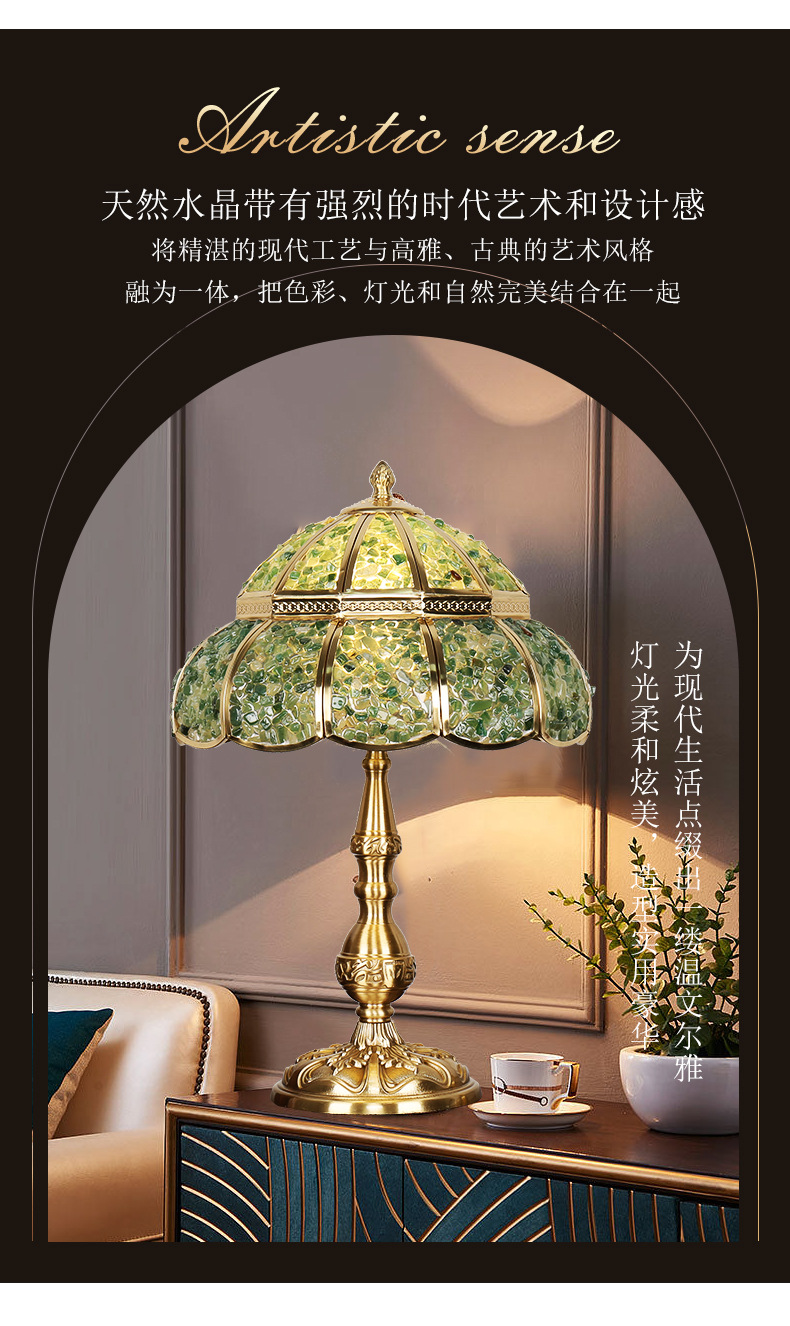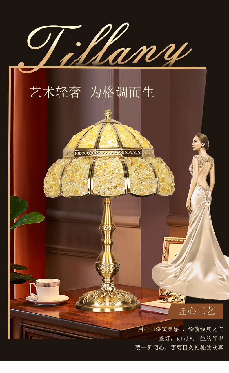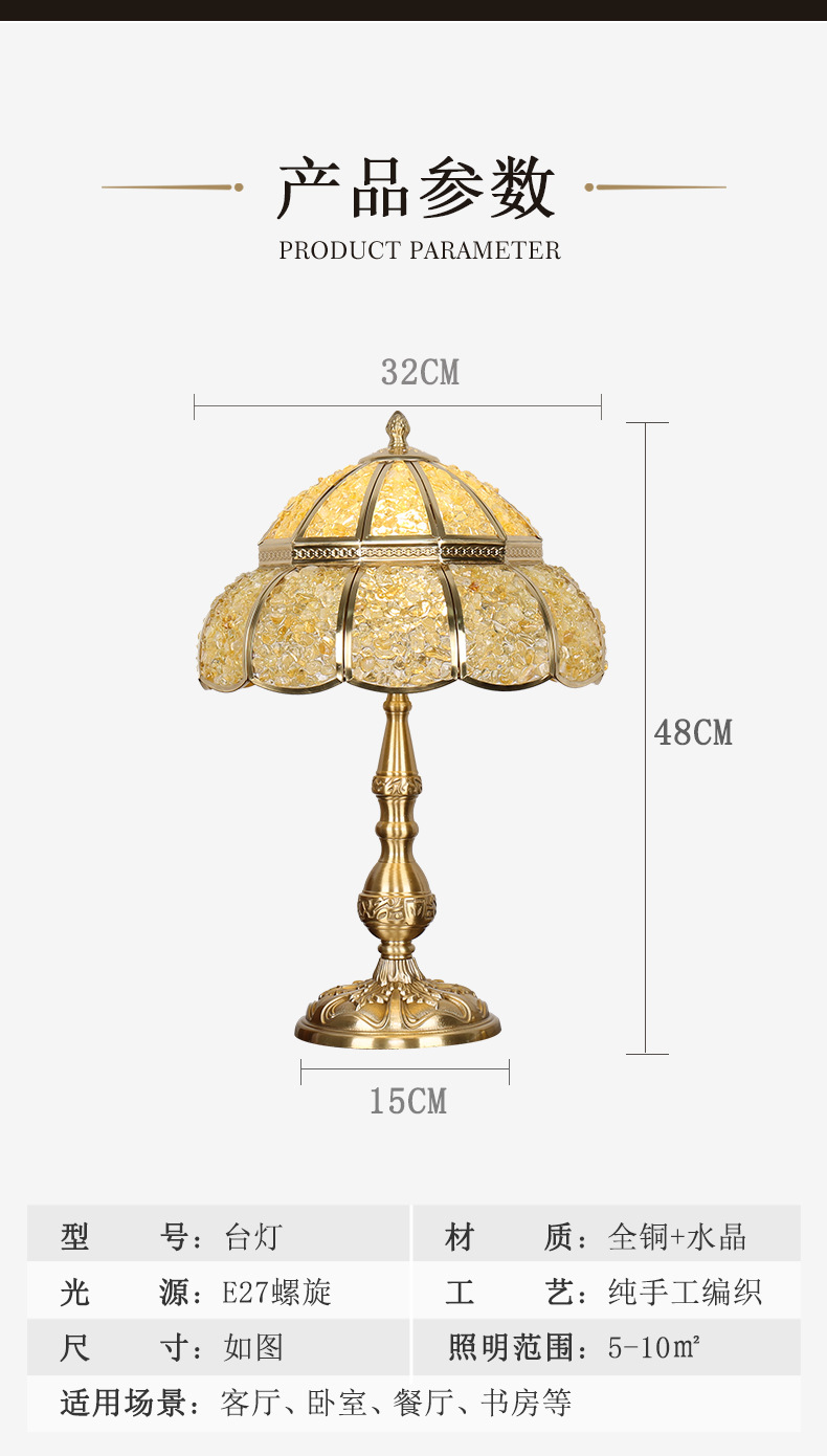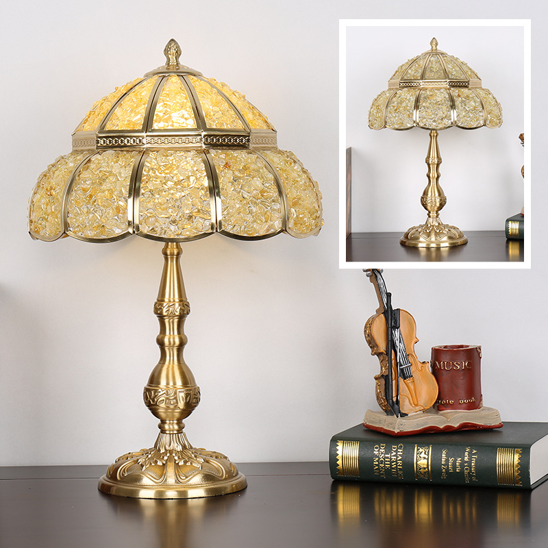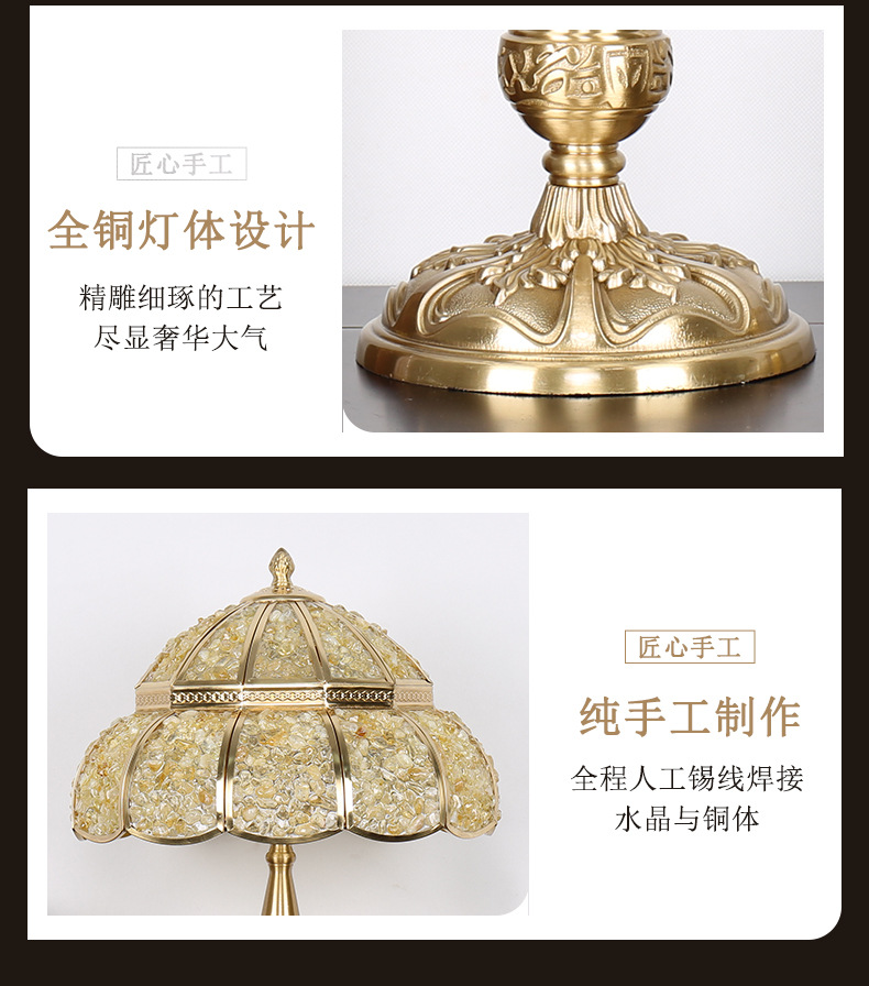 外贸专供简约台灯天然玛瑙纯铜台灯新婚床头灯书房厅双层台灯