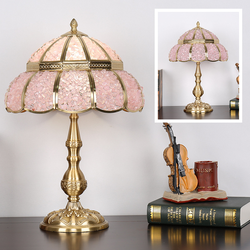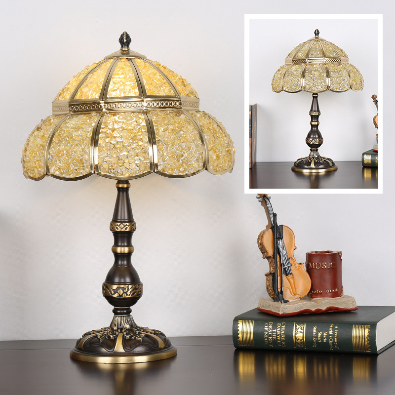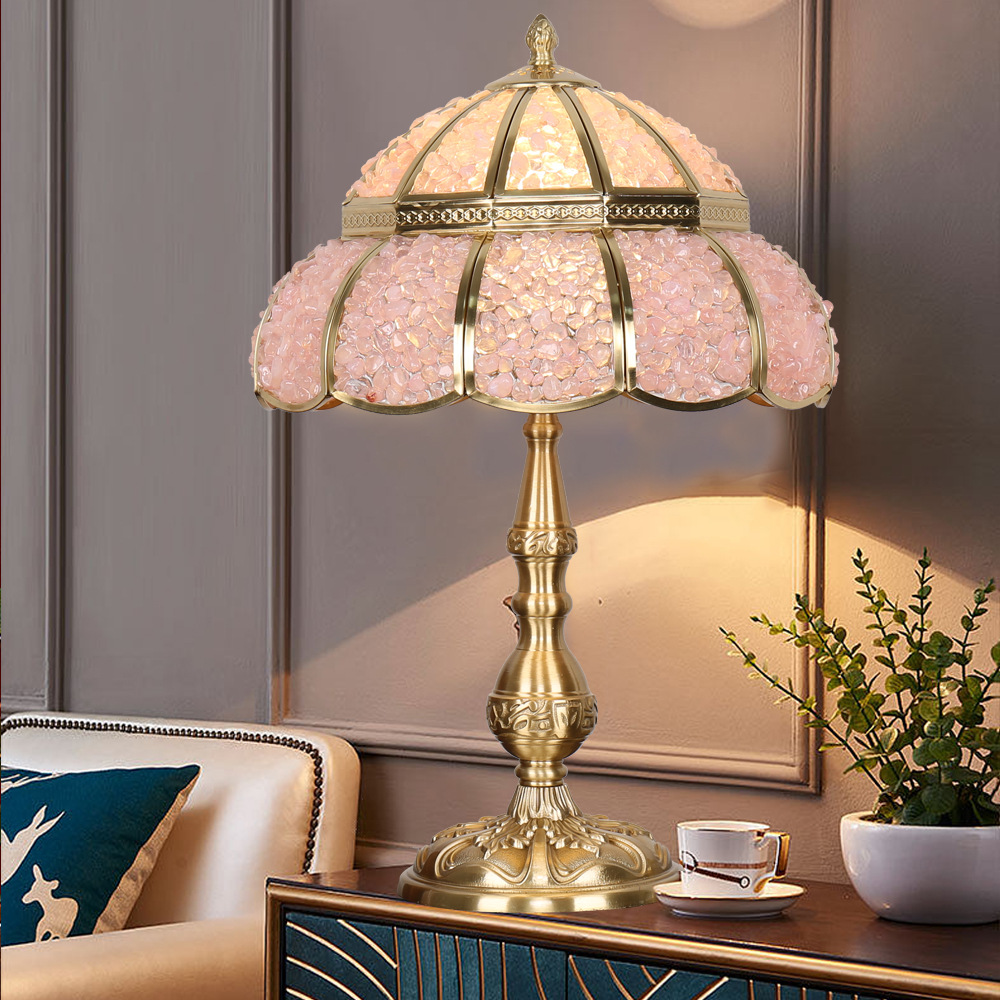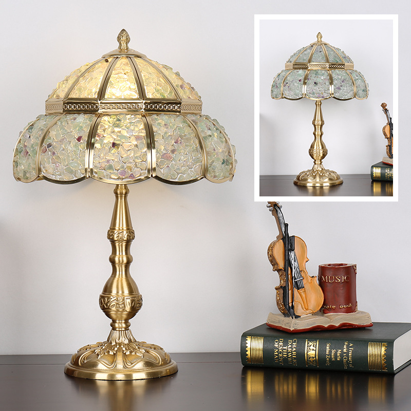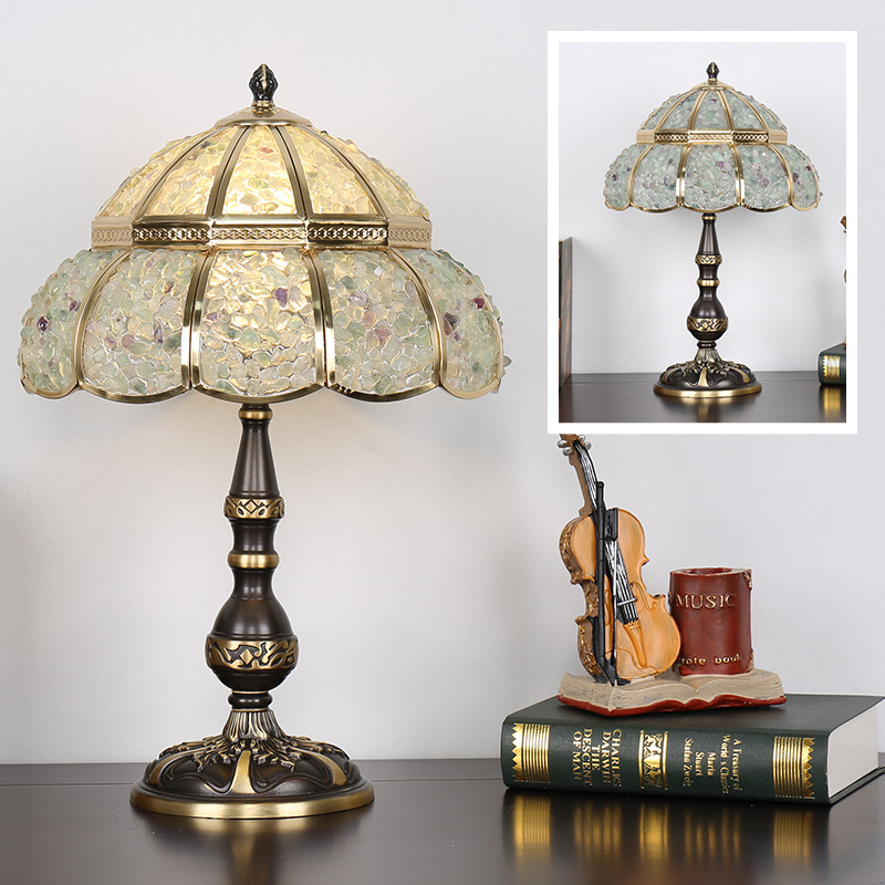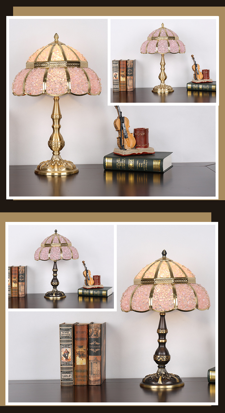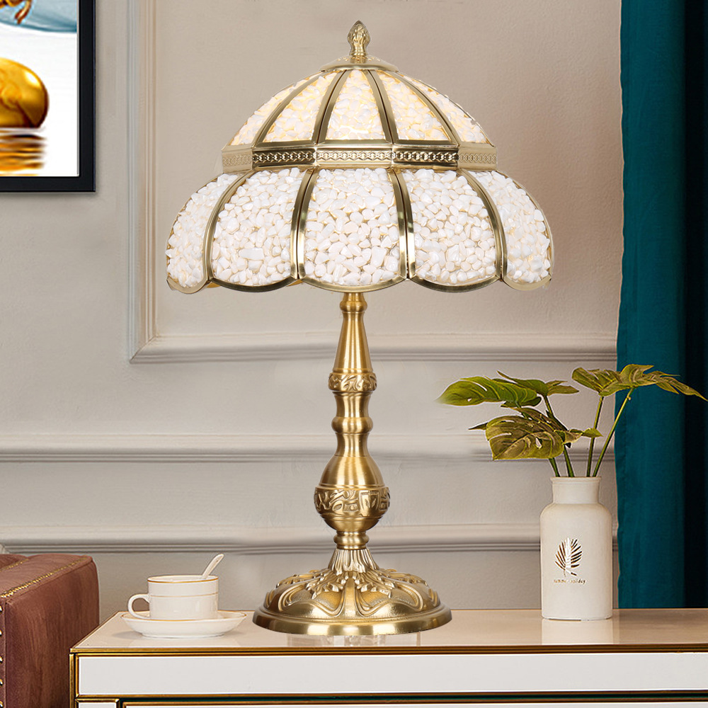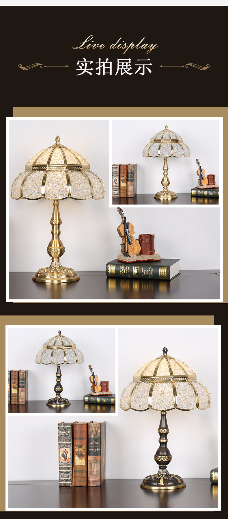 外贸专供简约台灯天然玛瑙纯铜台灯新婚床头灯书房厅双层台灯