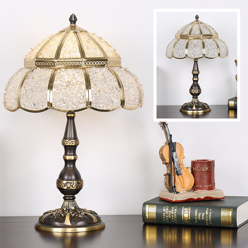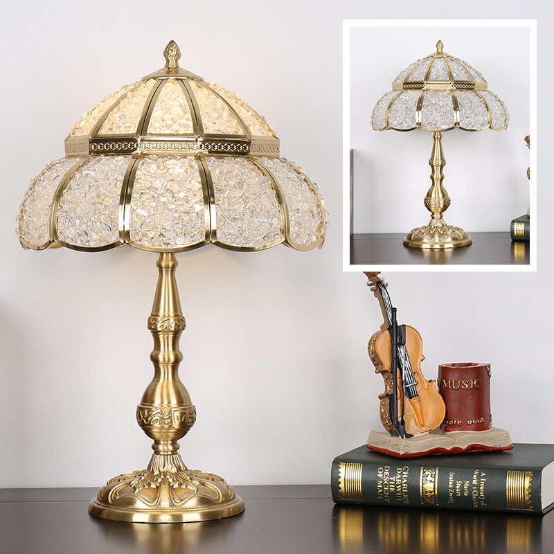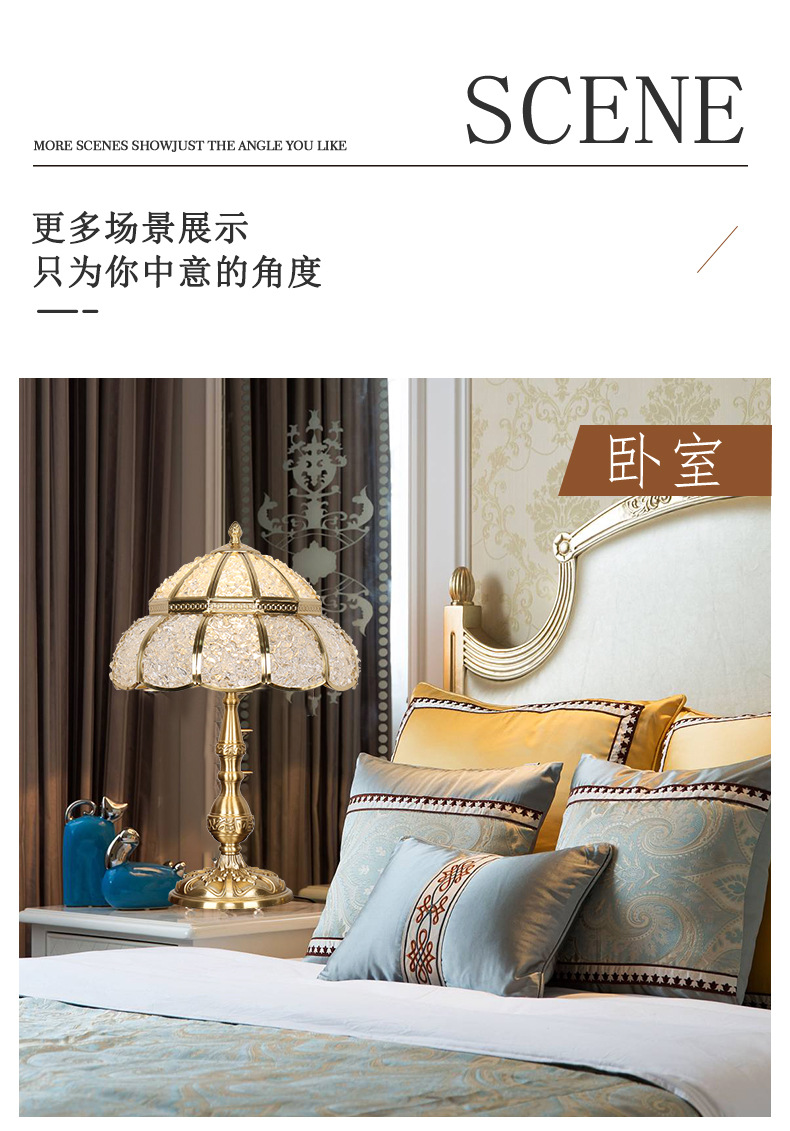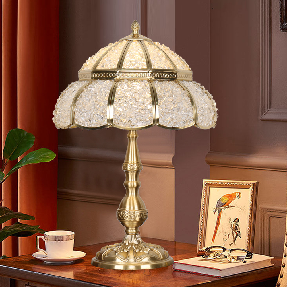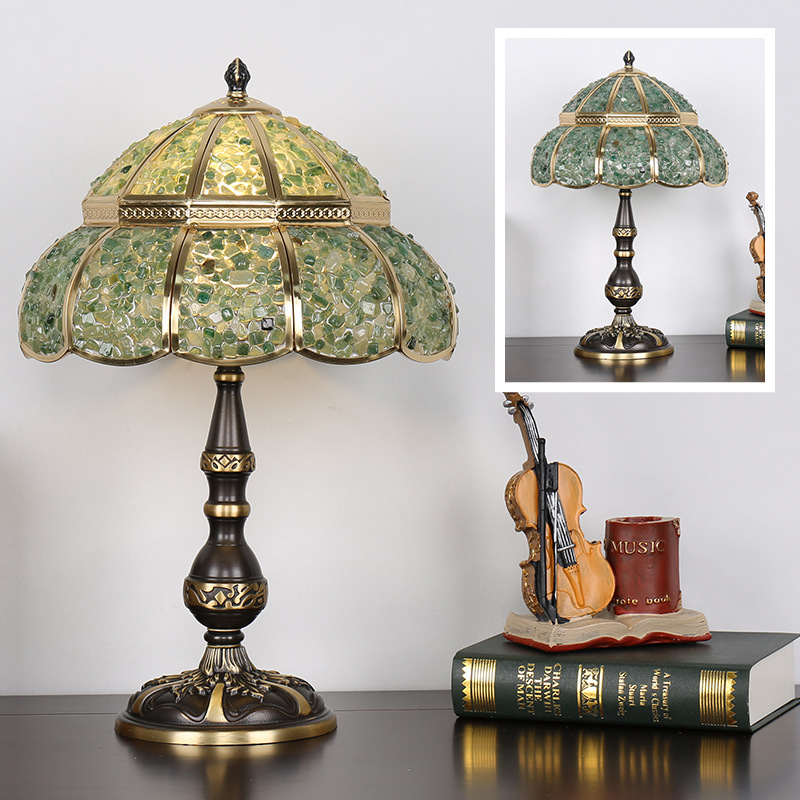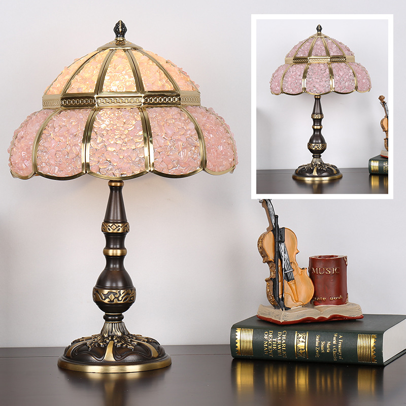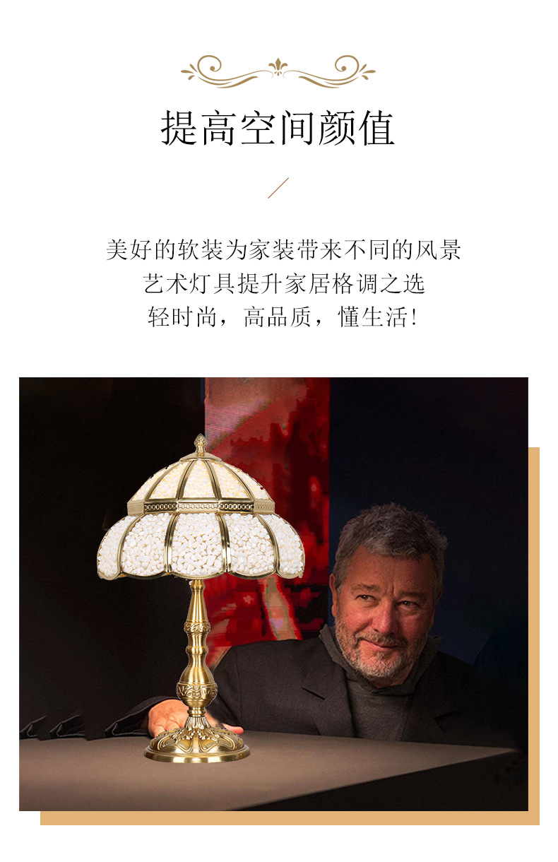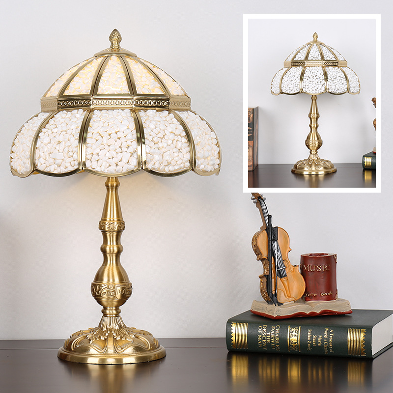 外贸专供简约台灯天然玛瑙纯铜台灯新婚床头灯书房厅双层台灯